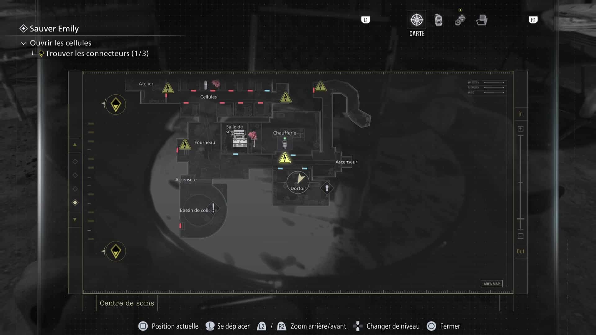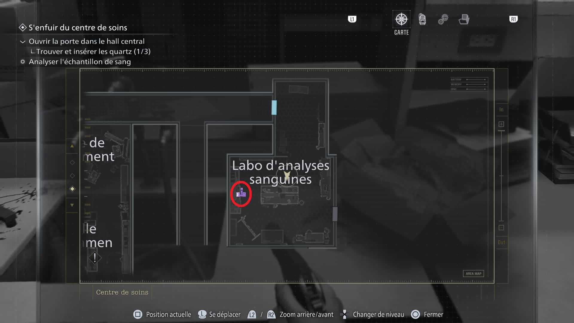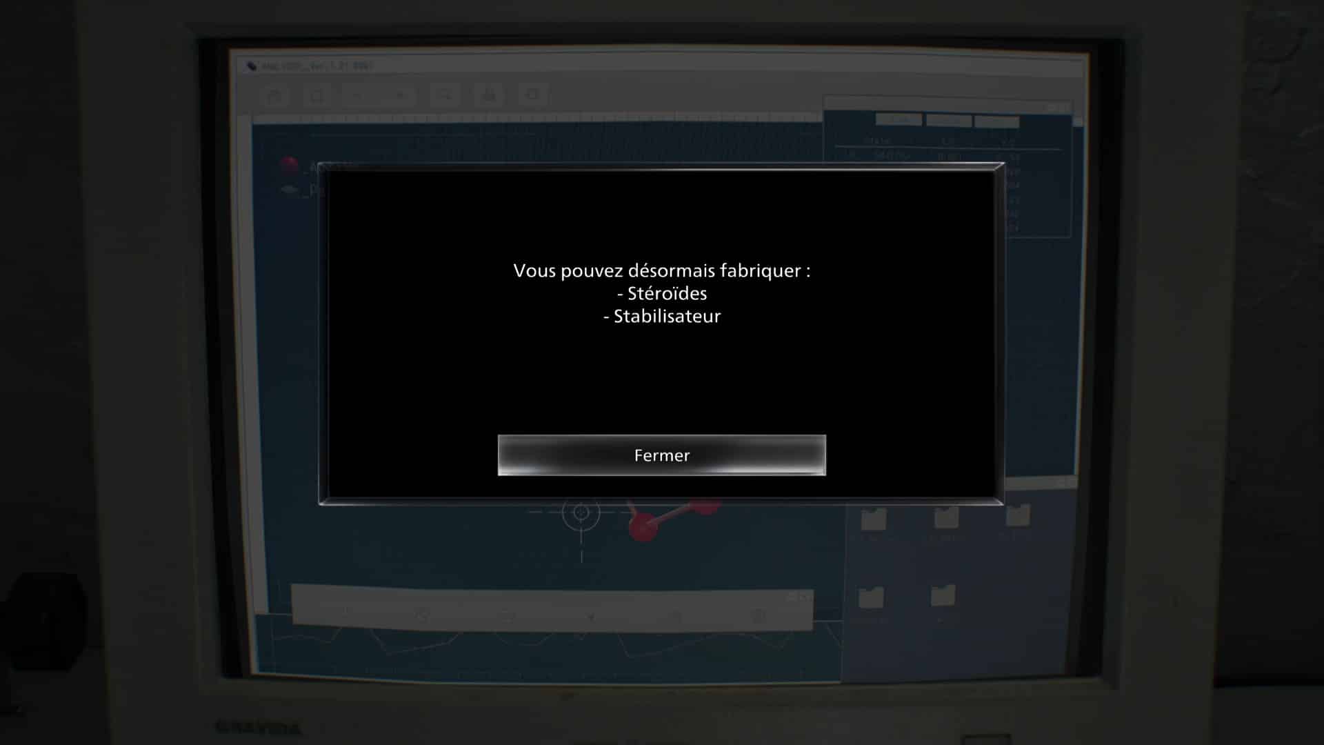 Avec tout le sang d’infecté, pouvoir développer un maximum d’objets est donc d’autant plus intéressant, surtout que certains sont particulièrement importants, comme les stabilisateurs ou les stéroïdes. D’ailleurs, pour eux, vous aurez besoin d’un injecteur vide. Il y en a trois à récupérer, donc trois possibilités de faire un stabilisateur, des stéroïdes ou un peu des deux. En bref, on vous indique donc ci-dessous l’emplacement des échantillons, des formules et des injecteurs vides, dans l’ordre théorique d’obtention. Notez enfin que chacun des éléments ci-dessous sont à ramasser avec Grace uniquement.