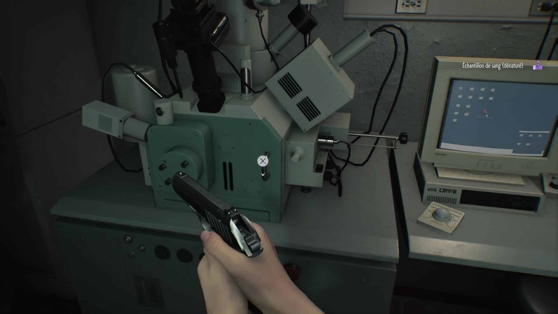 Le crafting a donc une place privilégiée dans Resident Evil Requiem avec la possibilité de se faire des munitions, des fioles qui tuent en un coup la plupart des ennemis, ou encore des remèdes pour se soigner. Des possibilités enrichies par la récupération d’échantillons de sang, présents à divers endroits du centre de soins de Rhodes Hill. Une fois un échantillon en sa possession, il faut ensuite l’analyser à un microscope laser, via un mini-jeu, pour débloquer définitivement de nouvelles formules de craft.