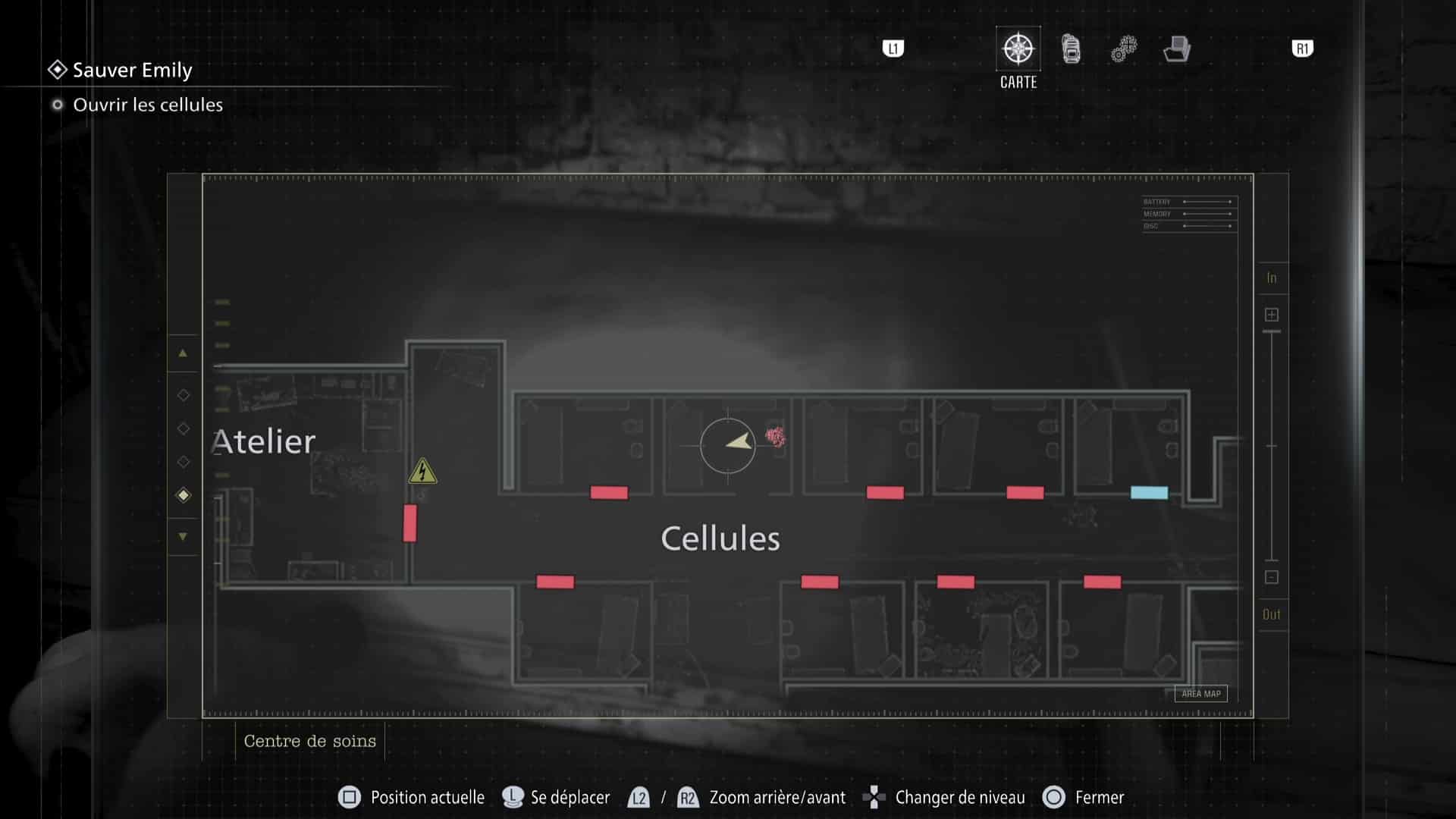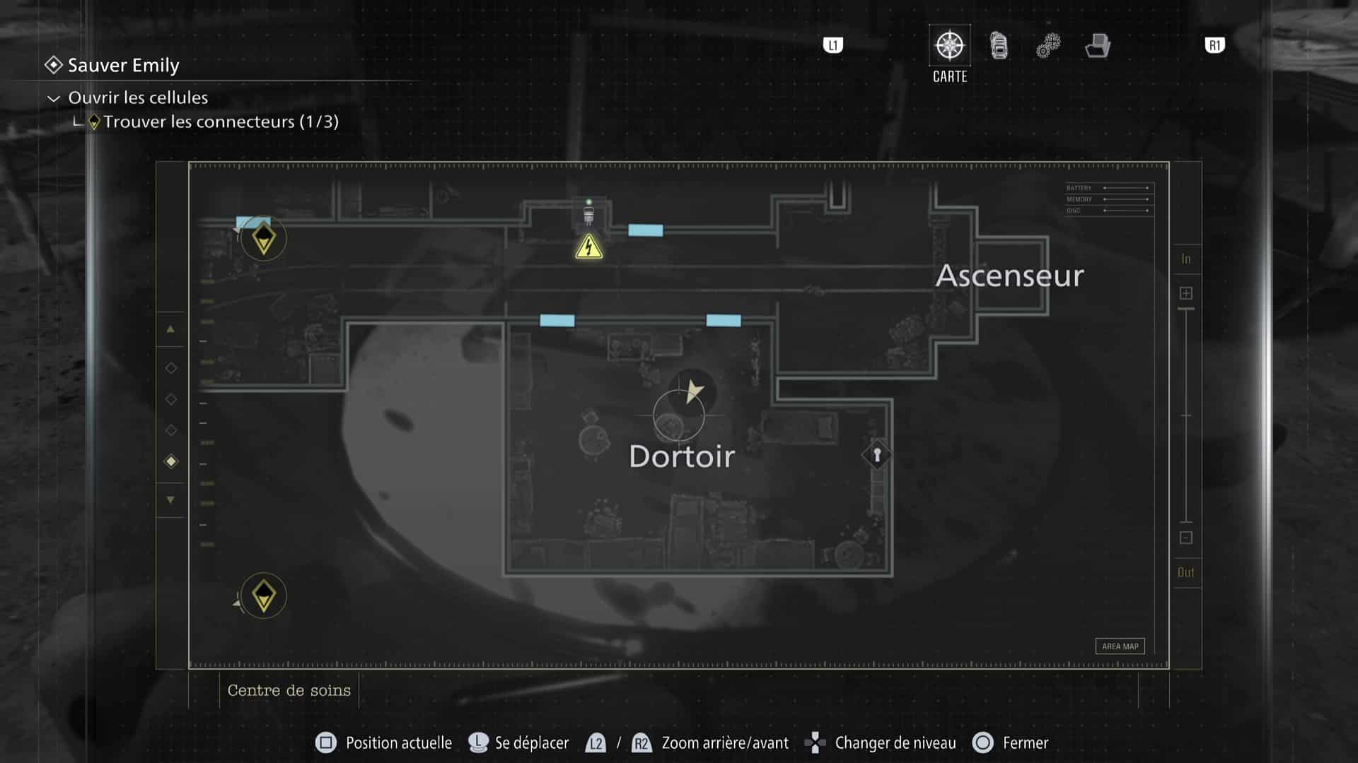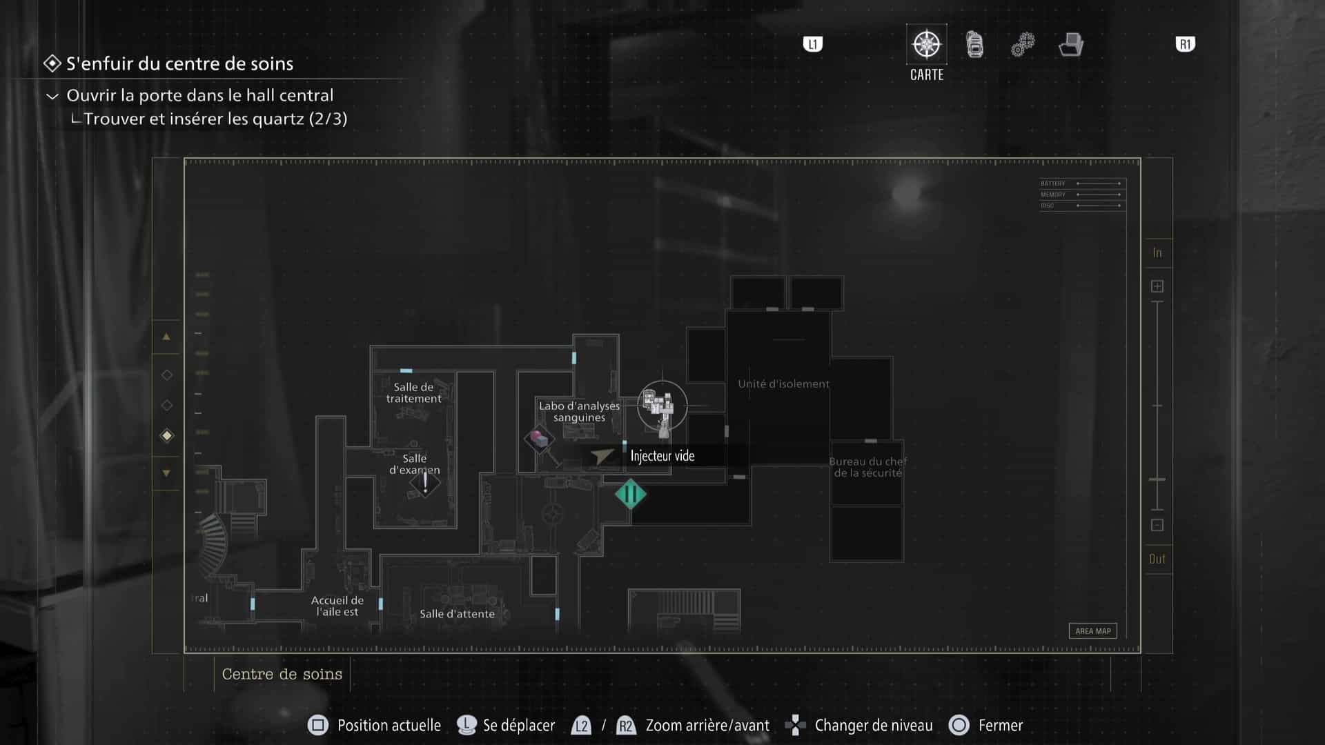 - Emplacement : Au sous-sol, après avoir récupéré les trois connecteurs, retournez au niveau des Cellules. Un zombie va faire tomber sa porte de cellule. Tuez-le puis entrez dedans. Un injecteur vide est sur le lit.