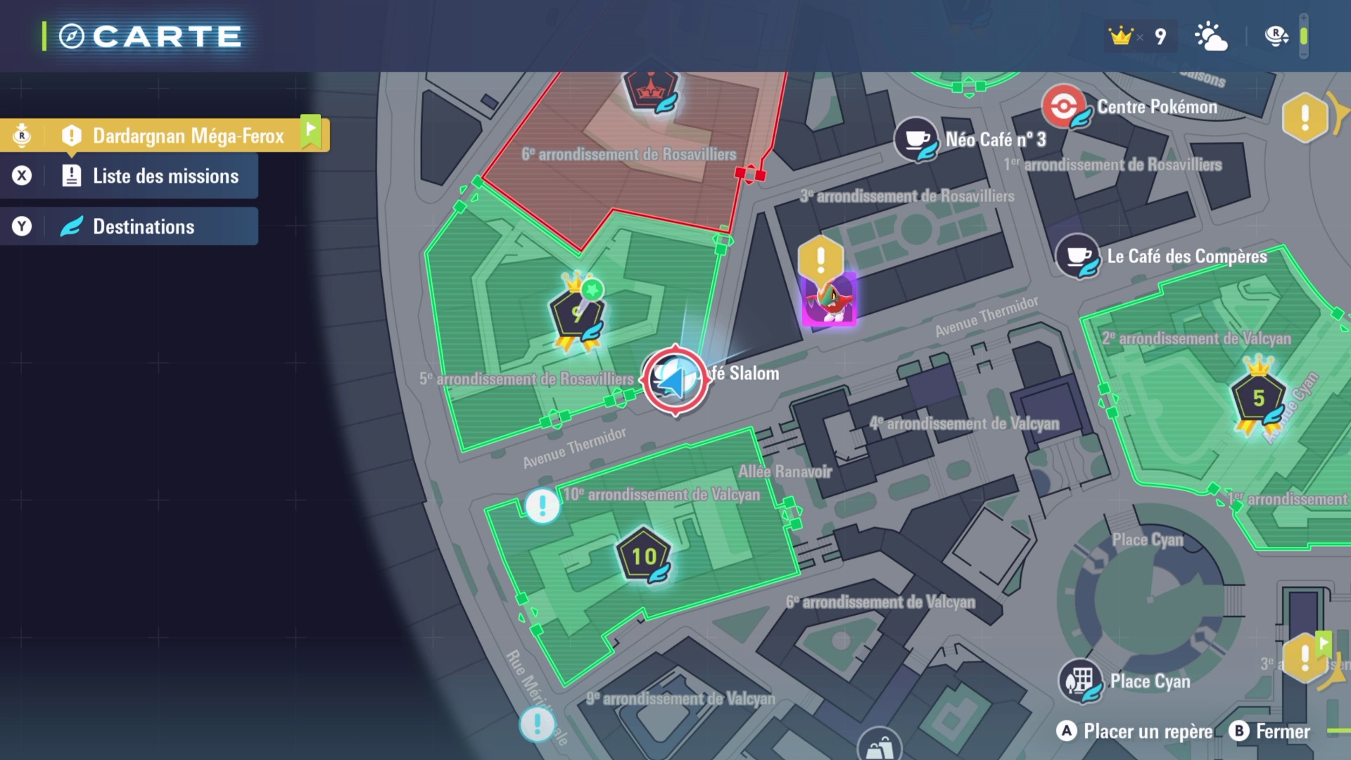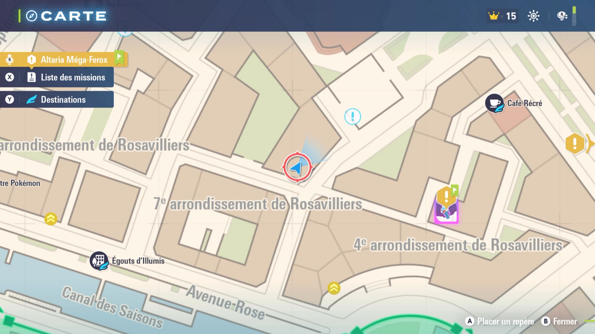 La localisation d’Évoli varie selon votre progression dans le jeu. Au début de l’aventure, vous pouvez en croiser sur les toits d’Illumis, perchés à différents endroits des arrondissements centraux (on vous donne un exemple en images ci-dessous). Ces Évoli apparaissent uniquement de jour et sont très méfiants. De plus, ils ont tendance à s’enfuir rapidement si vous les approchez de trop près. Leur taux de capture est faible, même après un combat, ce qui rend ces premières rencontres particulièrement exigeantes.
