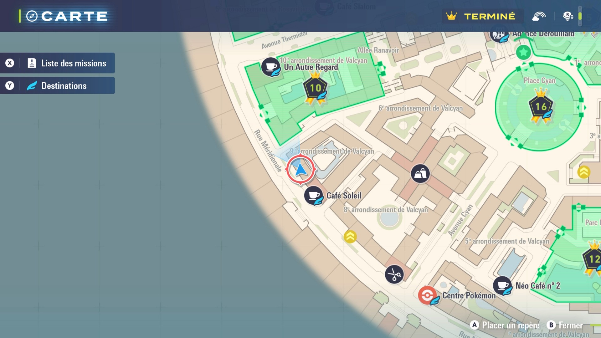 - Sur le toit du café Soleil situé au sud-ouest d’Illumis. Grimpez à l’aide du portail jaune situé plus à l’est ou bien prenez les échafaudages situés derrière le 9eme arrondissement de Valcyan.
