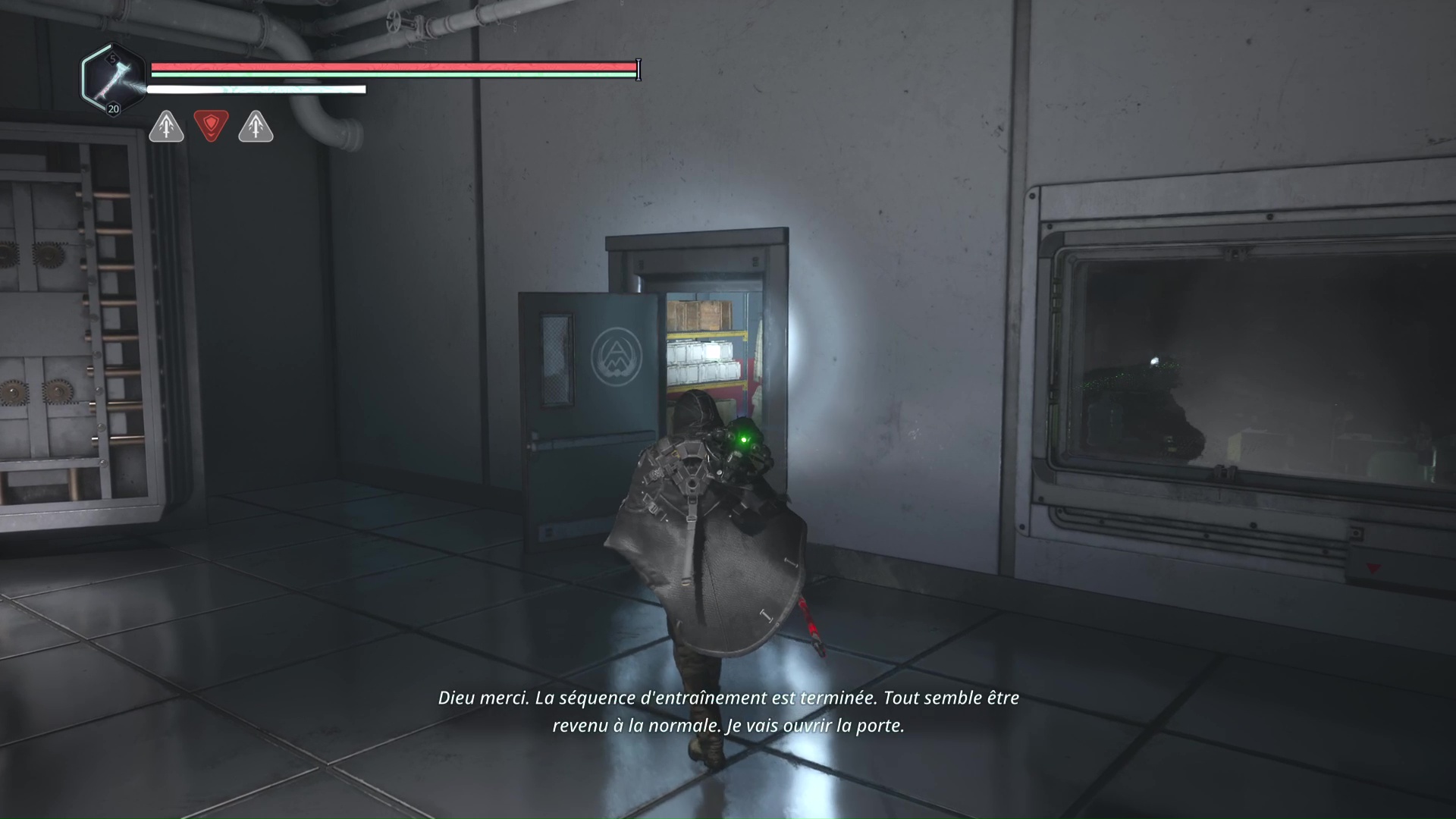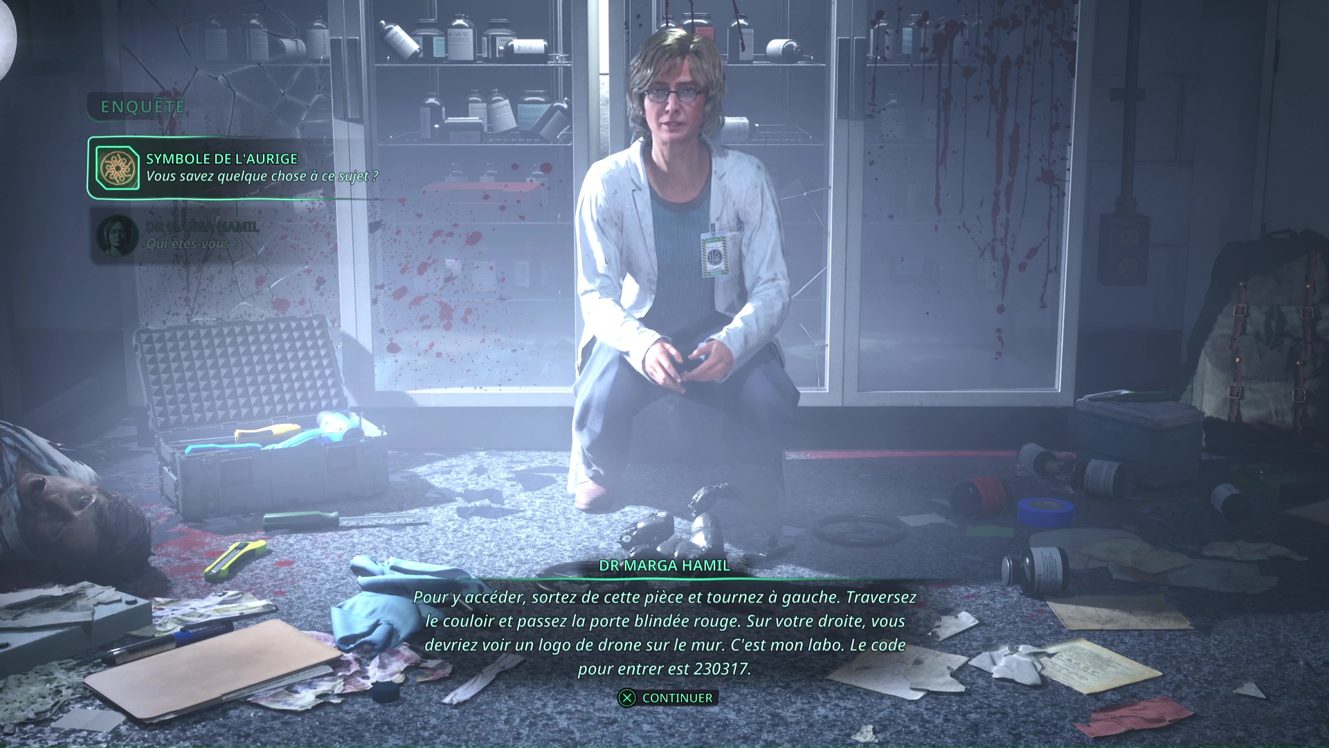 À l’étage B3 du Musée Auriga, et après avoir déverrouillé les portes de couleur bleue, vous pourrez parler avec le Dr Marga Hamil. Elle vous enverra récupérer un processeur de drone dans son labo communiquant avec la salle d’entraînement. Entrez dans la salle et éliminez les Hollow Walkers.