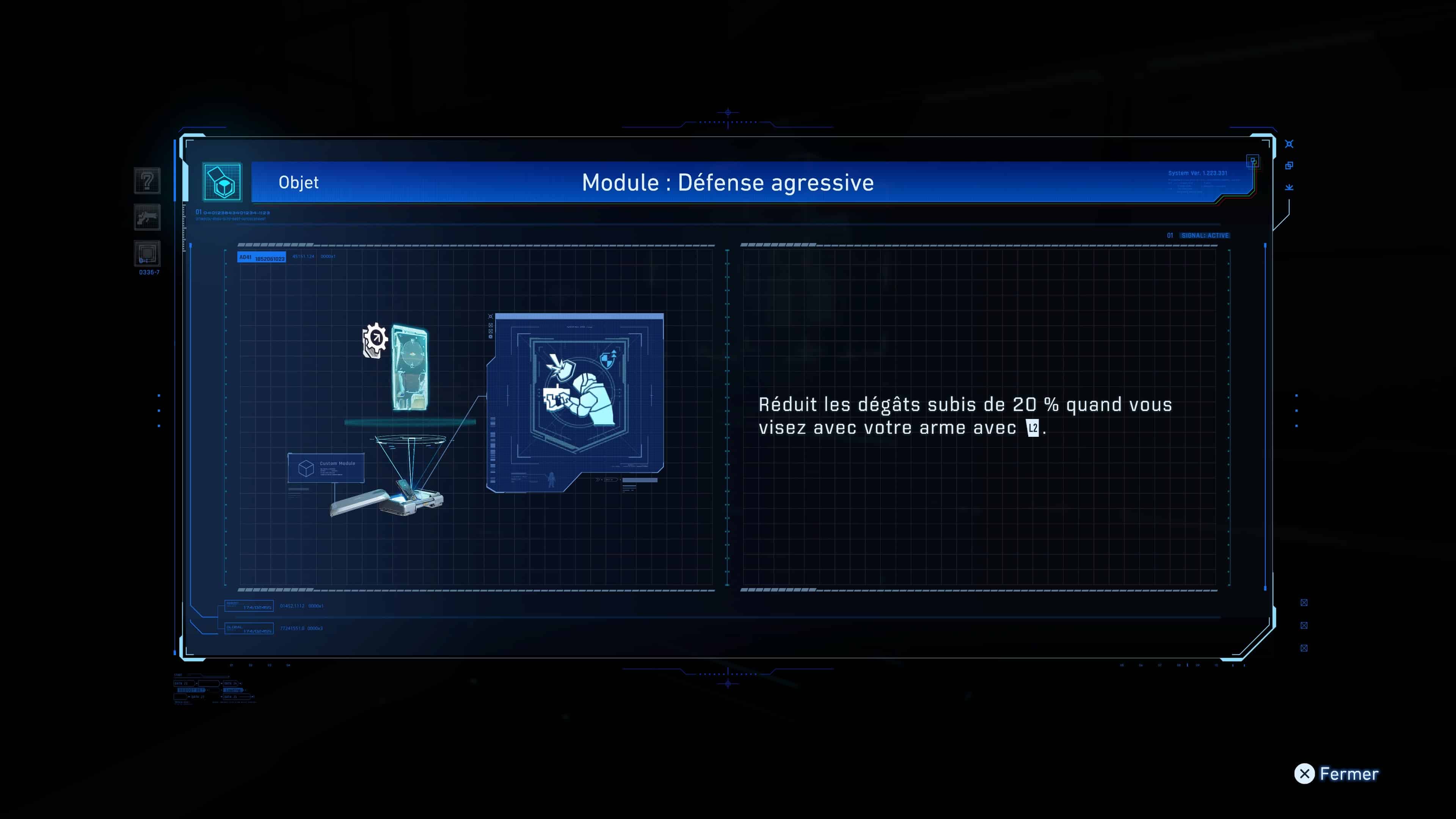Ce programme est très simple à localiser puisqu’il vous suffit de suivre la campagne principale pour cela, jusqu’à atteindre le lieu où vous pouvez déverrouiller la Trappe de secours/l’Arrêt « Labo de simulation météo » (Bloc n°2 « Centre environnemental »). Non loin, un coffre vous attend avec le Module « Défense agressive » à l’intérieur. Si vous choisissez de l’équiper, il réduira les dégâts que vous subirez de 20%, chaque fois qu’un ennemi vous touchera pendant que vous viserez avec une de vos armes.