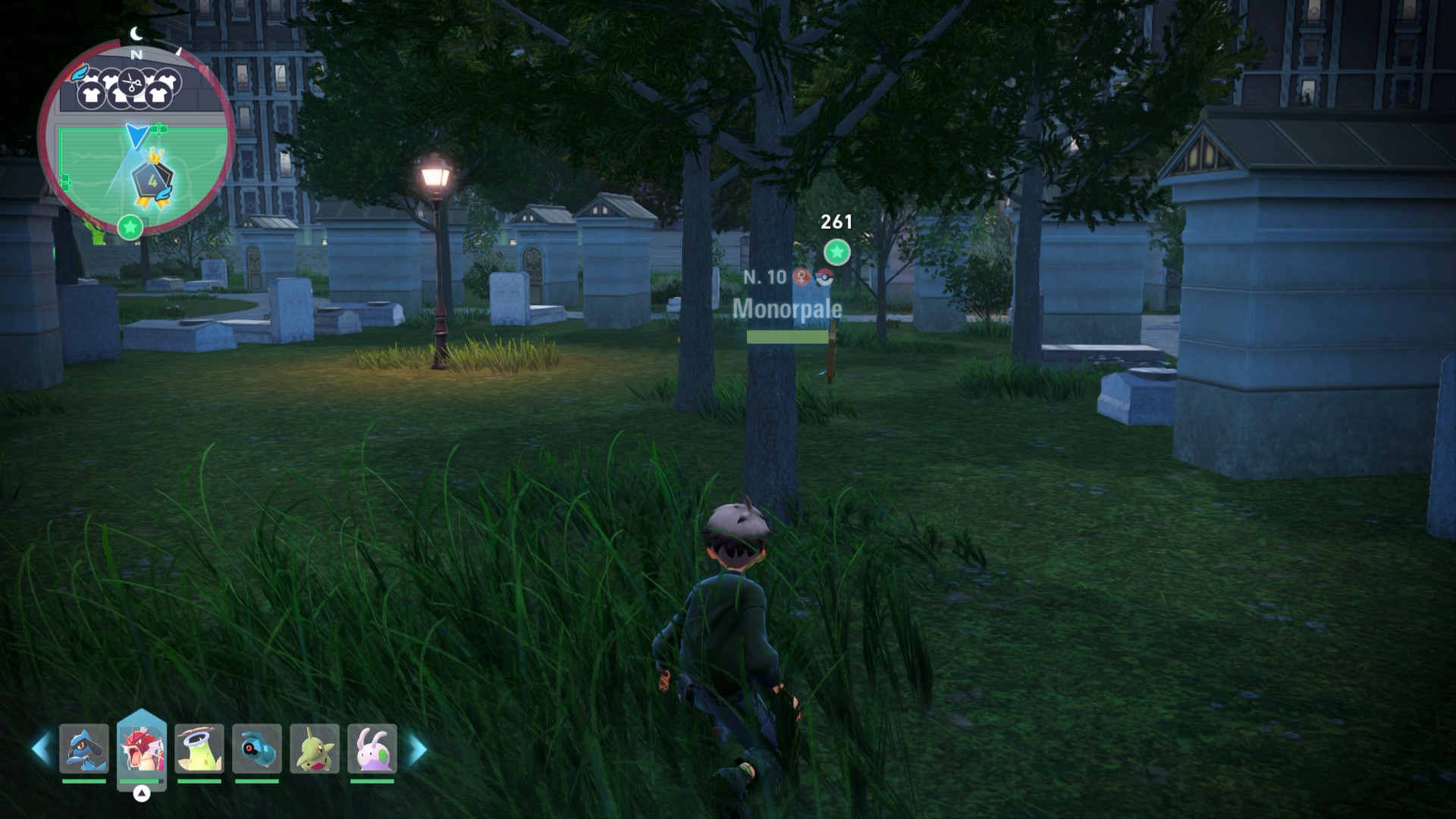 Le cimetière de la Zone Sauvage 4 est une zone plutôt calme la nuit, ce qui permet de repérer Monorpale sans être dérangé. Le Pokémon ne montre pas d’agressivité particulière, mais il disparaît rapidement si vous vous approchez trop brusquement. Le plus simple reste donc de s’approcher en mode furtif, puis de lancer une Super Ball dès qu’il se tourne dans une autre direction.