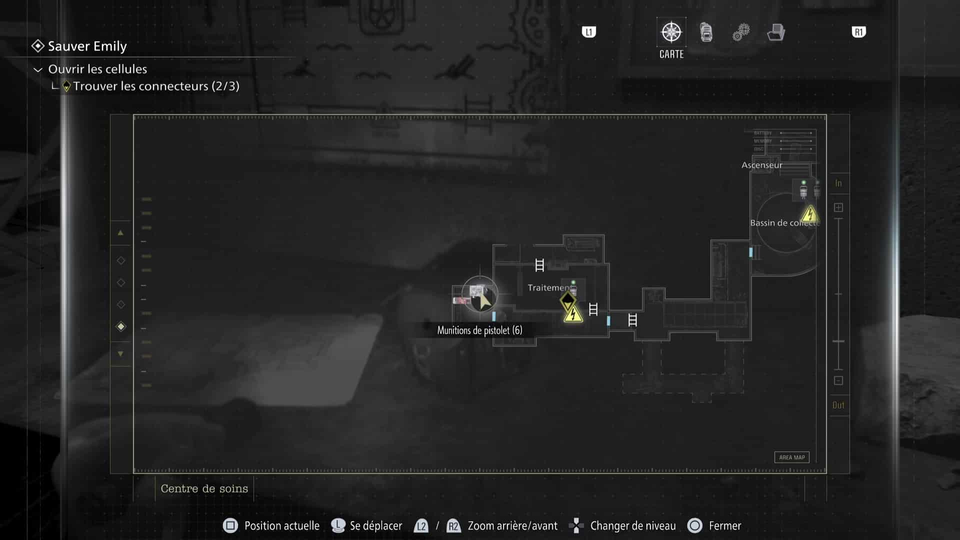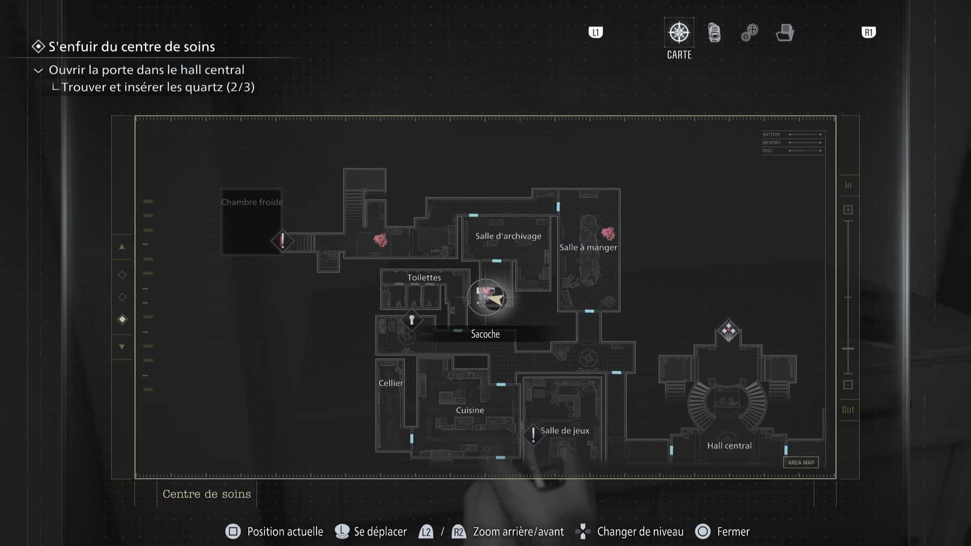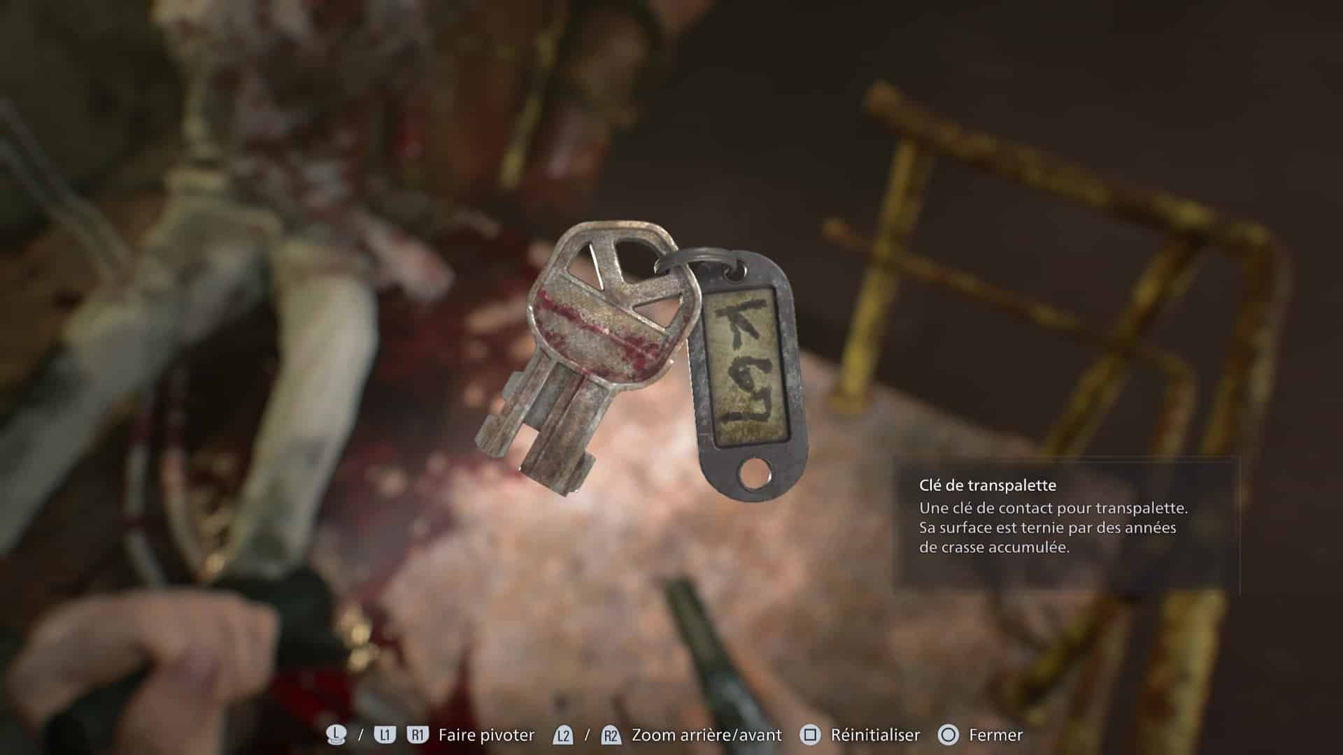 - Emplacement : Dans le sous-sol du centre de soins de Rhodes Hill, rendez-vous au niveau de la salle Traitement. Il faut activer le transpalette grâce à la clé que vous trouverez par terre, juste à côté, afin de libérer l’accès au bureau à proximité.