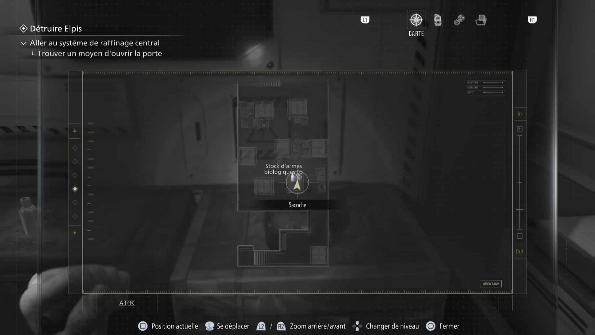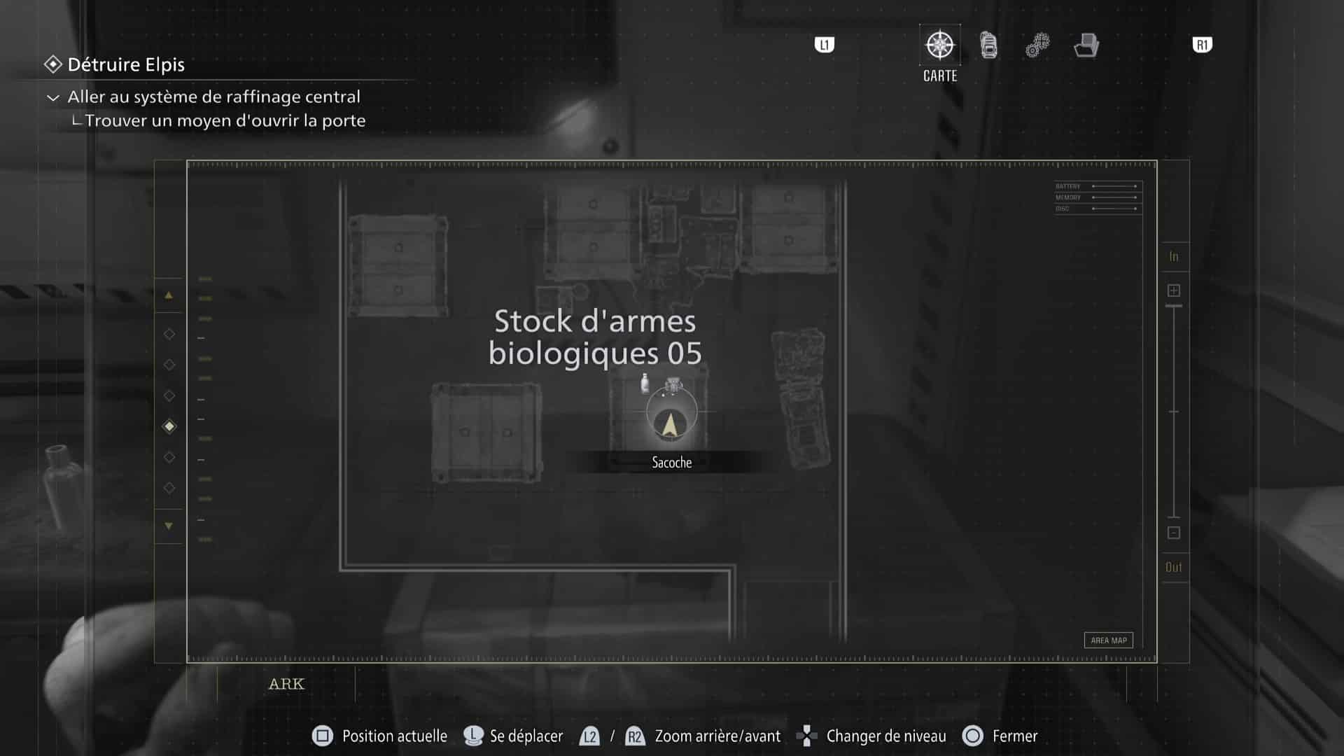 - Emplacement : Dans l’ARK, la quatrième zone principale du jeu, attendez d’arriver jusqu’à la salle Stockage d’armes biologiques 05. Remarquez le premier gros conteneur blanc verrouillé que vous pouvez atteindre.