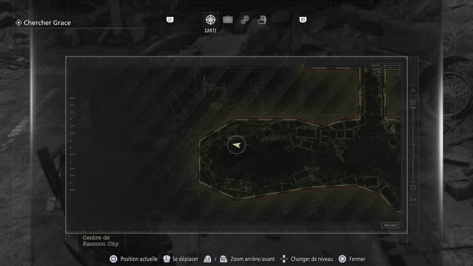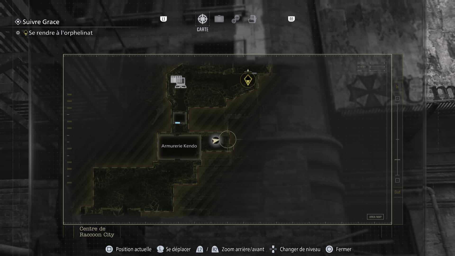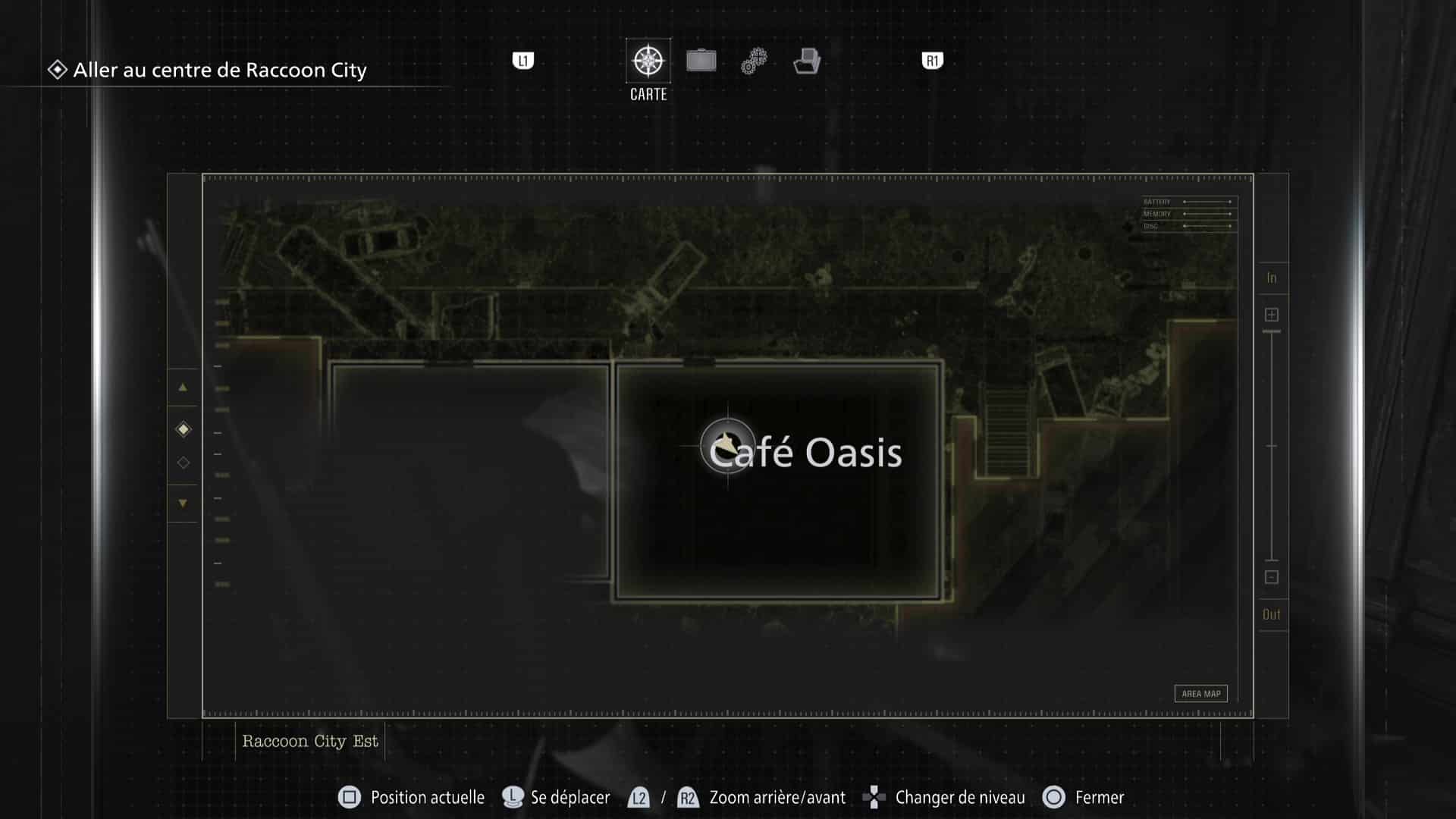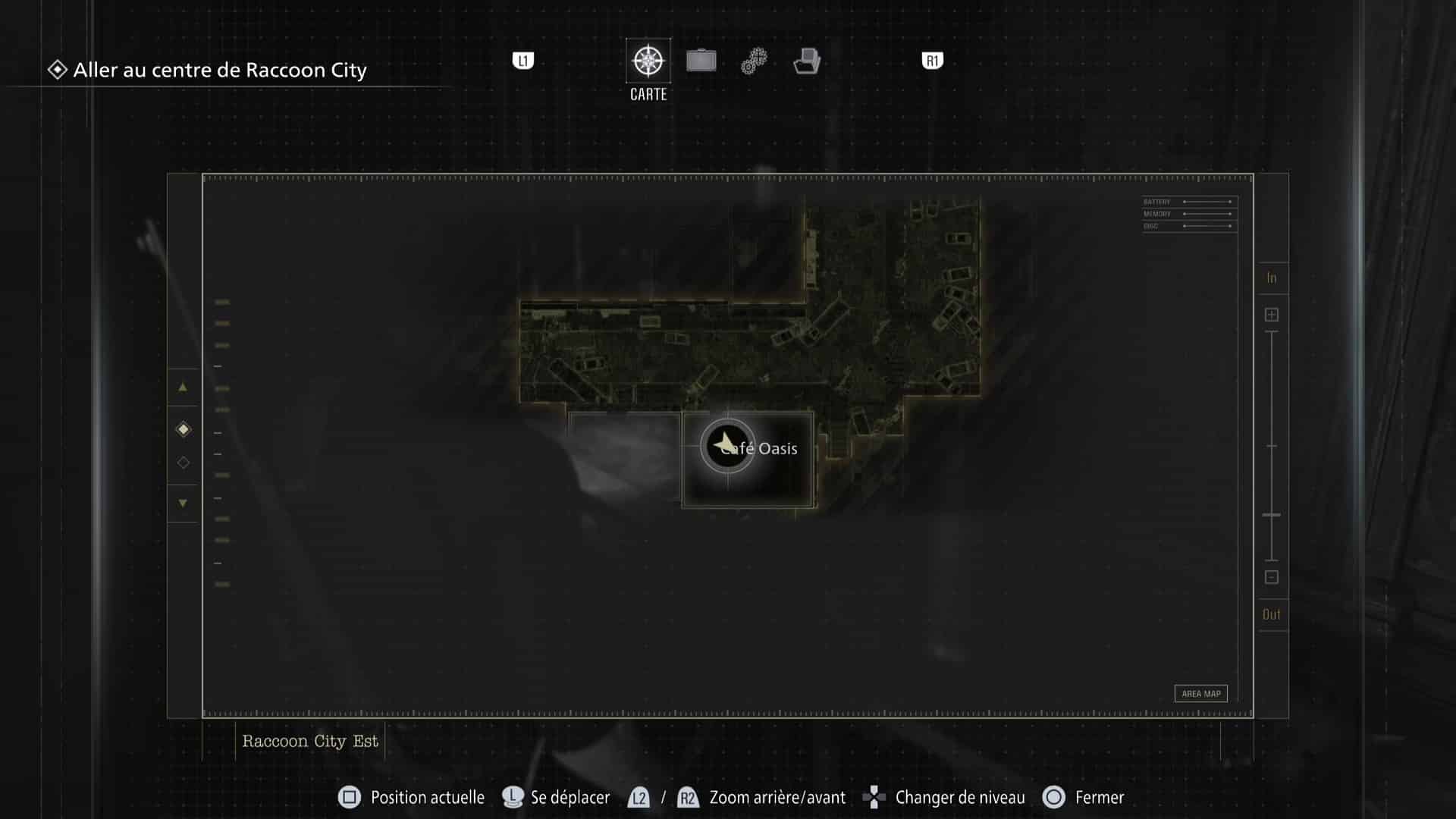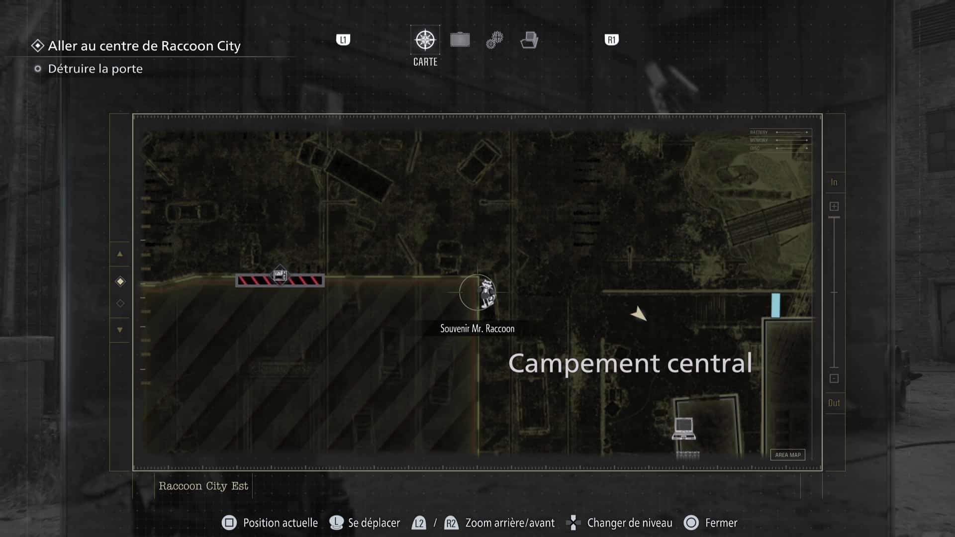 La zone de Raccoon City est découpée en deux gros niveaux : une partie dans Raccoon City Est, une autre dans le Centre de Raccoon City. Notez que placer le détonateur vous fera quitter Raccoon City Est définitivement. Pensez donc à tout vérifier avant de partir.