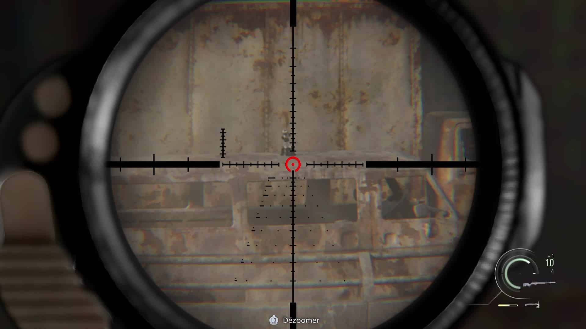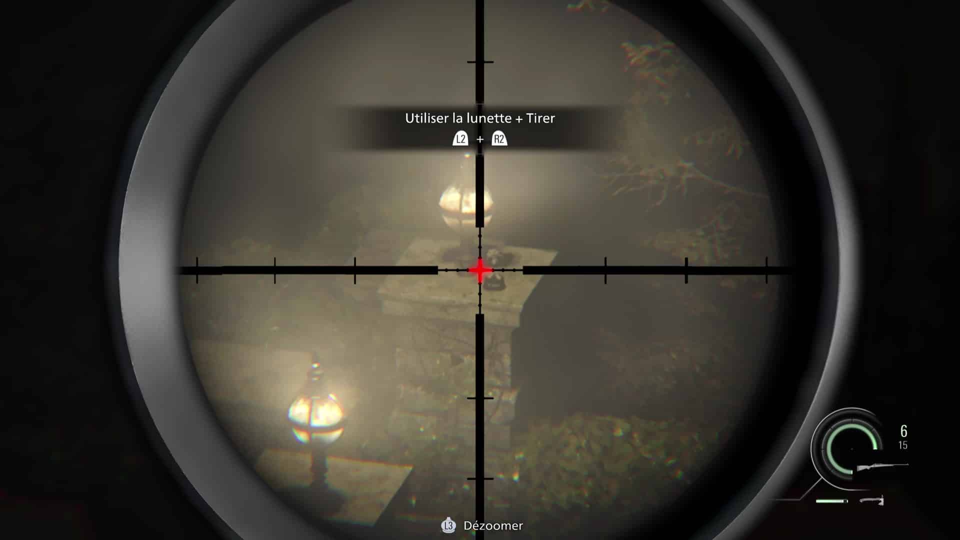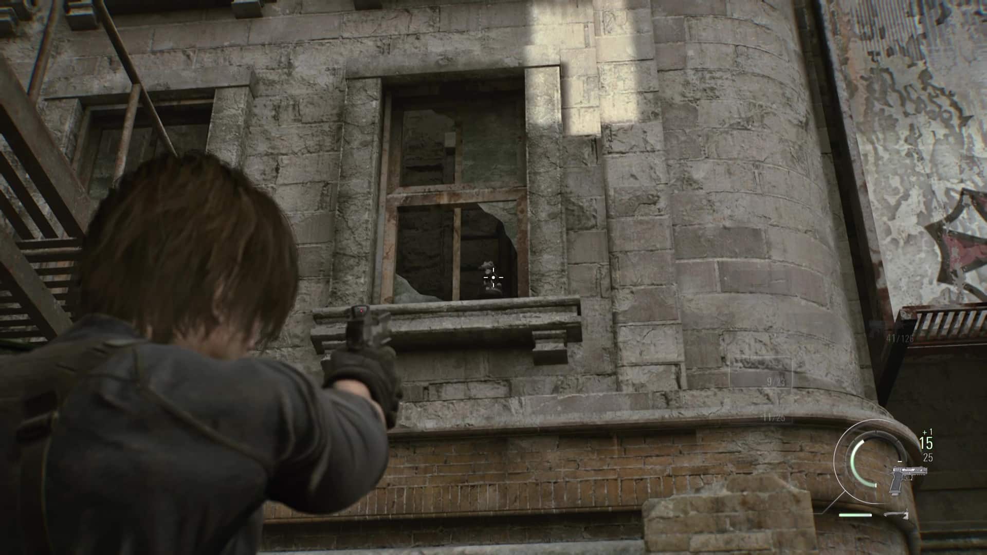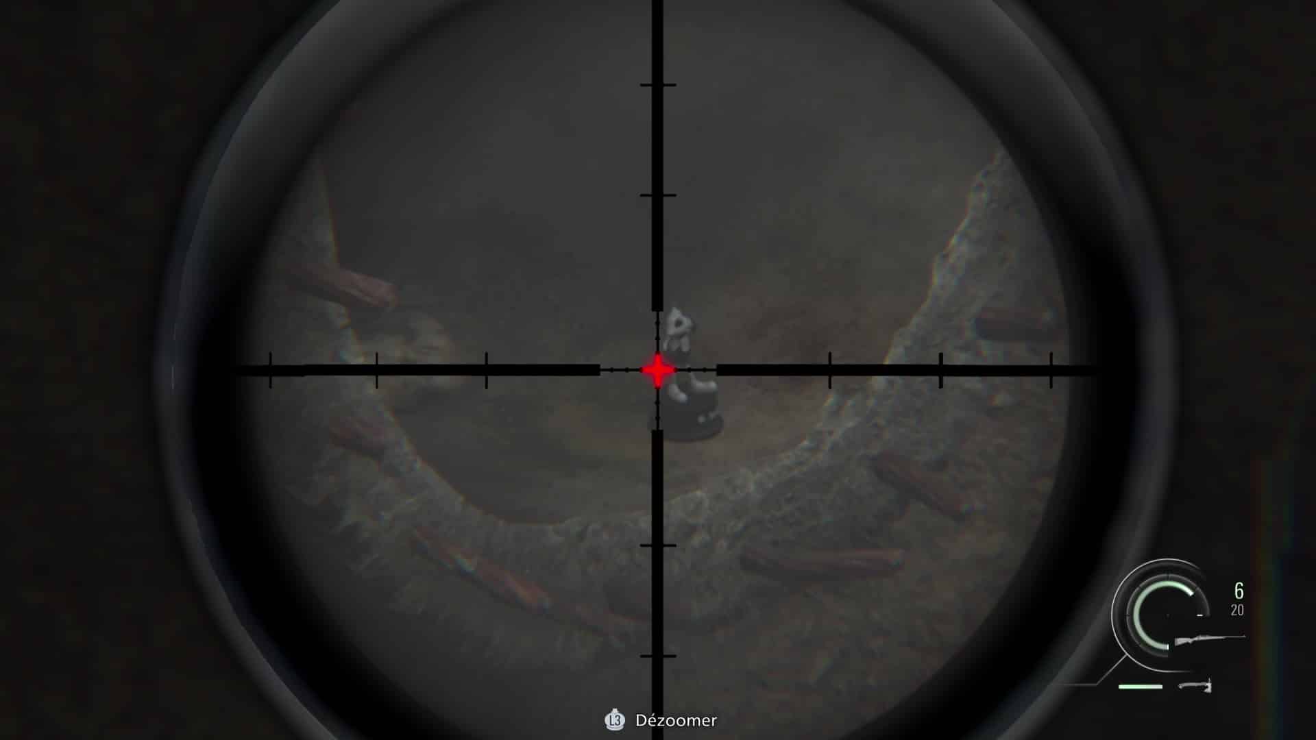 - Emplacement : De nouveau aux commandes de Leon après l’accident d’hélicoptère et désormais en possession d’un fusil sniper, enjambez la fenêtre et courez sur les toits afin de trouver une position pour couvrir Grace. Avancez jusqu’à tomber sur des munitions de fusil, posé sur une fenêtre sur votre gauche. Au lieu de continuer, restez à cette fenêtre et sortez votre fusil. Dirigez le viseur vers le portail menant à l’église, légèrement sur votre gauche. Zoomez et vous verrez un Mr. Raccoon se dandiner sur un des deux piliers en pierre.