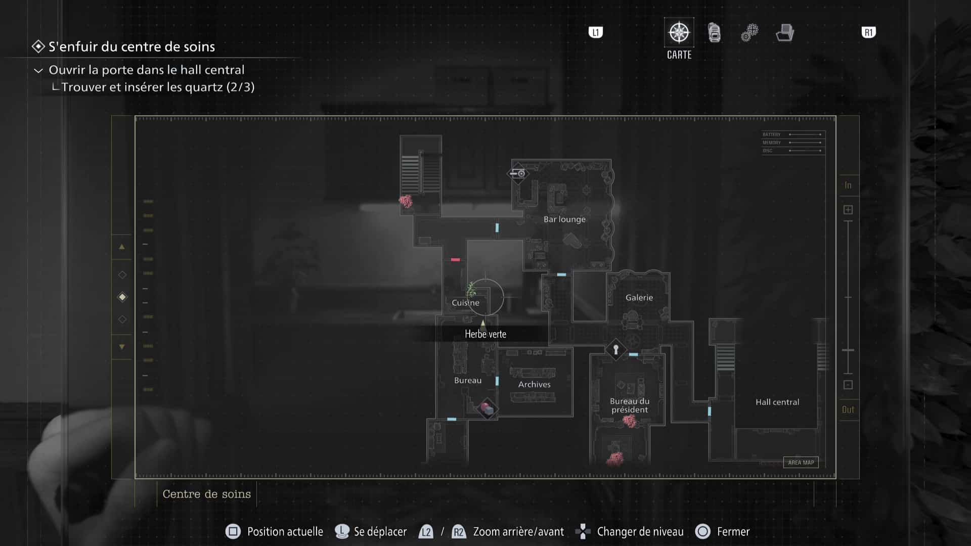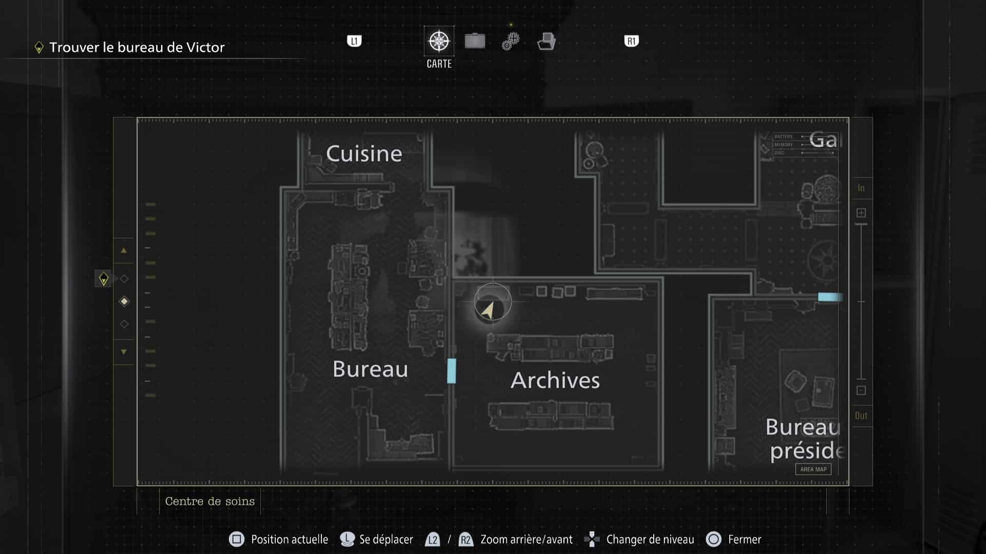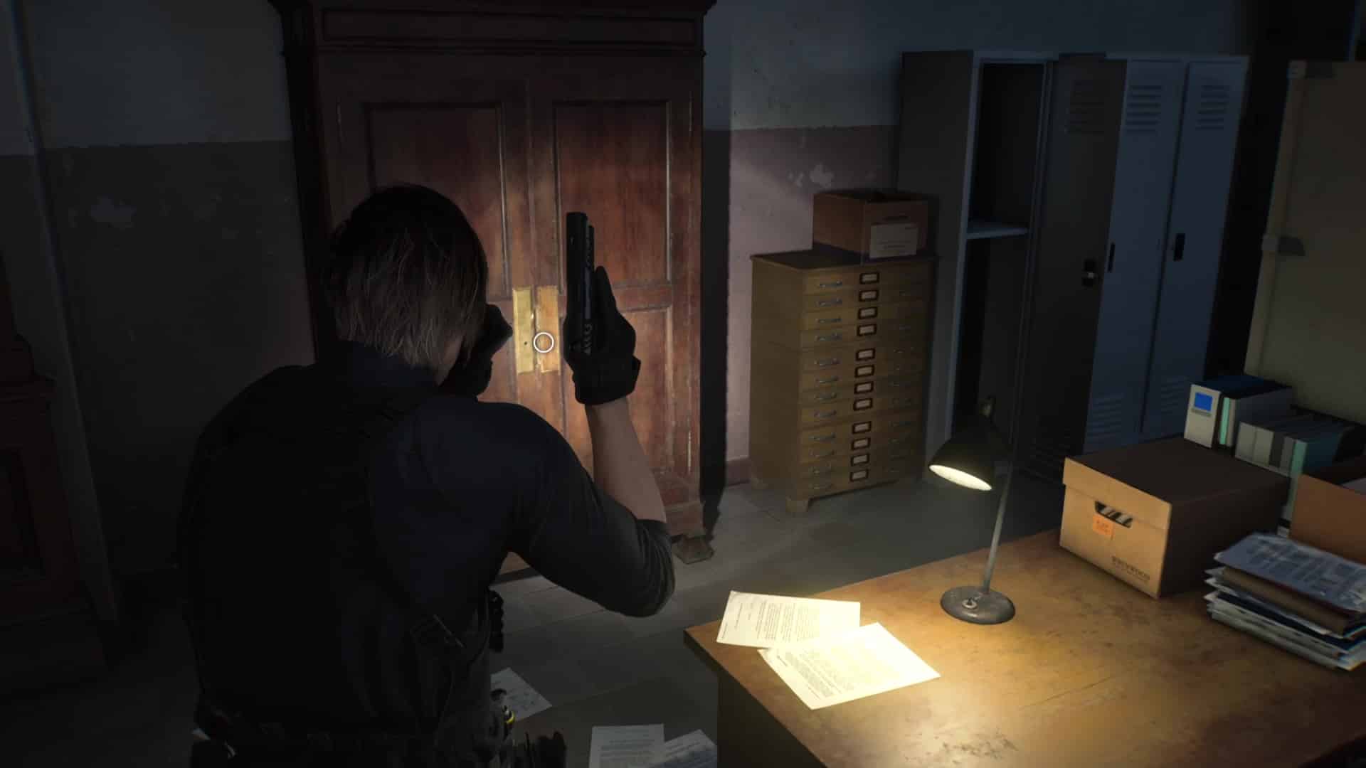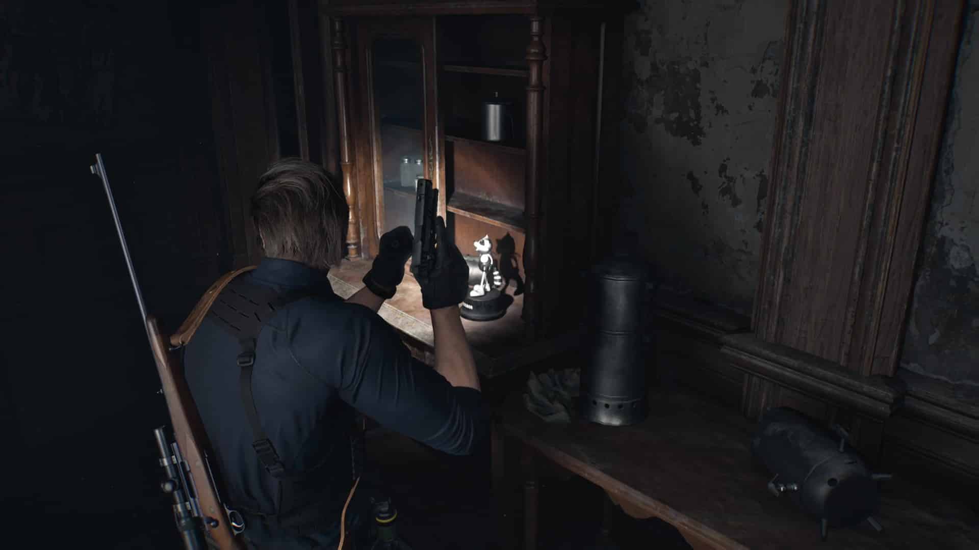 - Emplacement : Uniquement déblocable avec Leon. Il vous attend dans le placard déformé du 1ᵉʳ étage de l’aile ouest, dans les Archives.