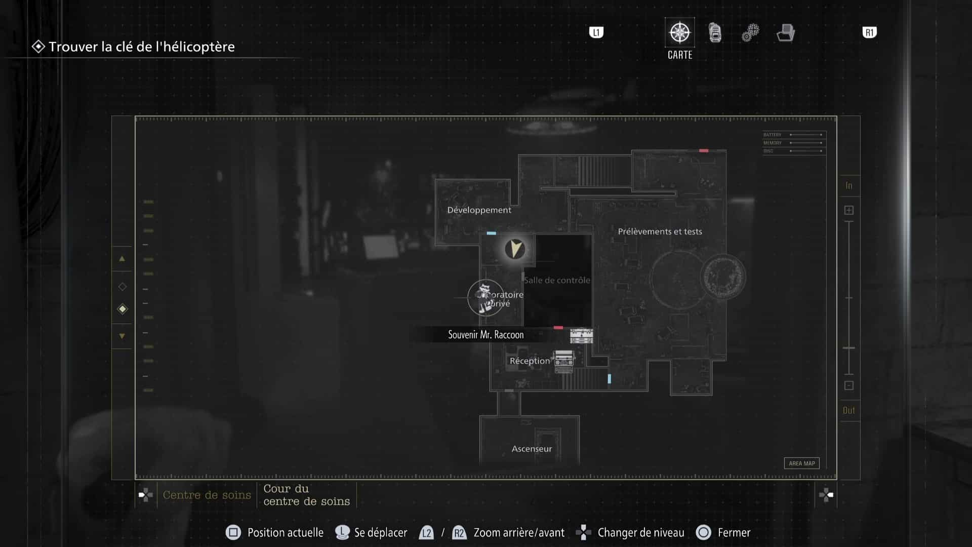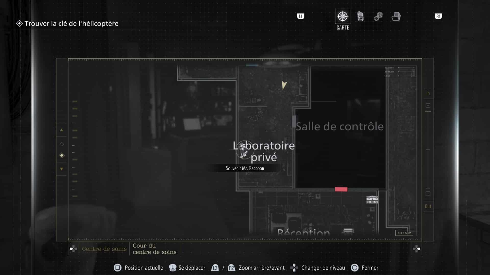 - Emplacement : Une fois la carte d’accès à l’aile est récupérée, vous pourrez accéder à cette partie du centre. Un Mr. Raccoon se trouve directement dans l’Accueil de l’aile Est, sur le bureau de la réception.