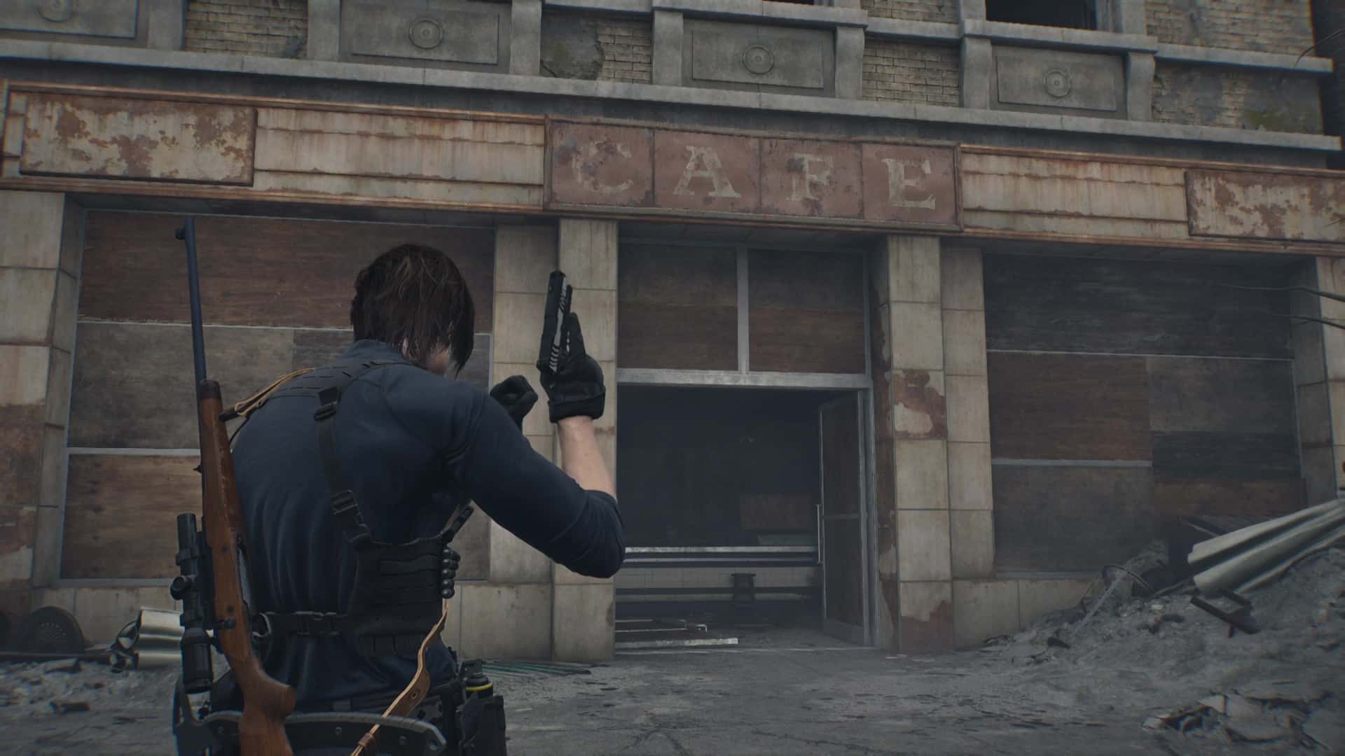- Emplacement : Dès votre arrivée en voiture à Raccoon City, descendez la rue devant vous puis tournez à droite. Sur votre gauche, le Café Oasis est ouvert. Entrez et vous verrez un Mr. Raccoon posé derrière le comptoir.