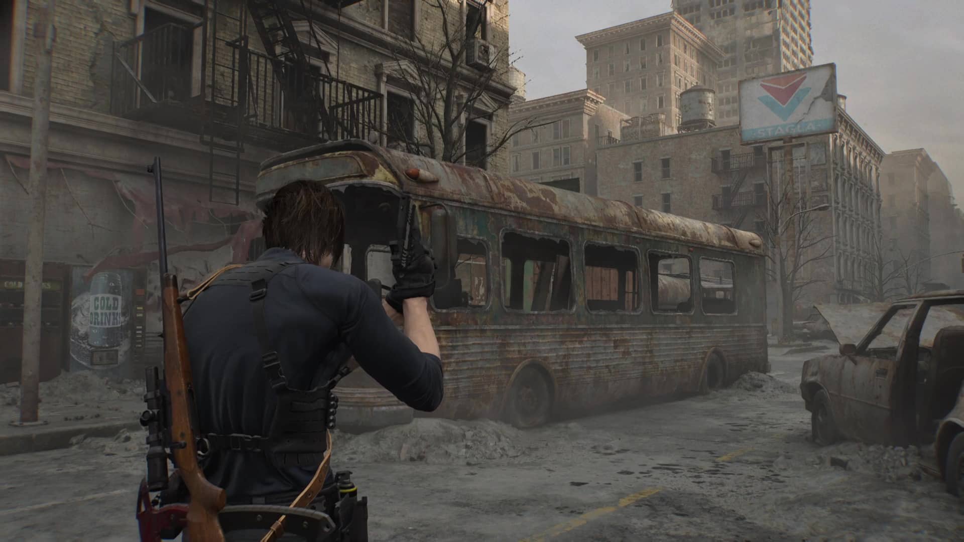 - Emplacement : Dans la rue principale où vous avez croisé le groupe de soldats BSAA massacrés, allez au bout de la rue à l’ouest, où la route s’est écroulée. Prenez votre fusil de sniper pour voir en contrebas un Mr. Raccoon au bord d’un gros tuyau sectionné, sur la gauche. Vous pouvez aussi attendre d’avoir actionné la grue afin de faire un pont de fortune et ainsi vous rapprocher.