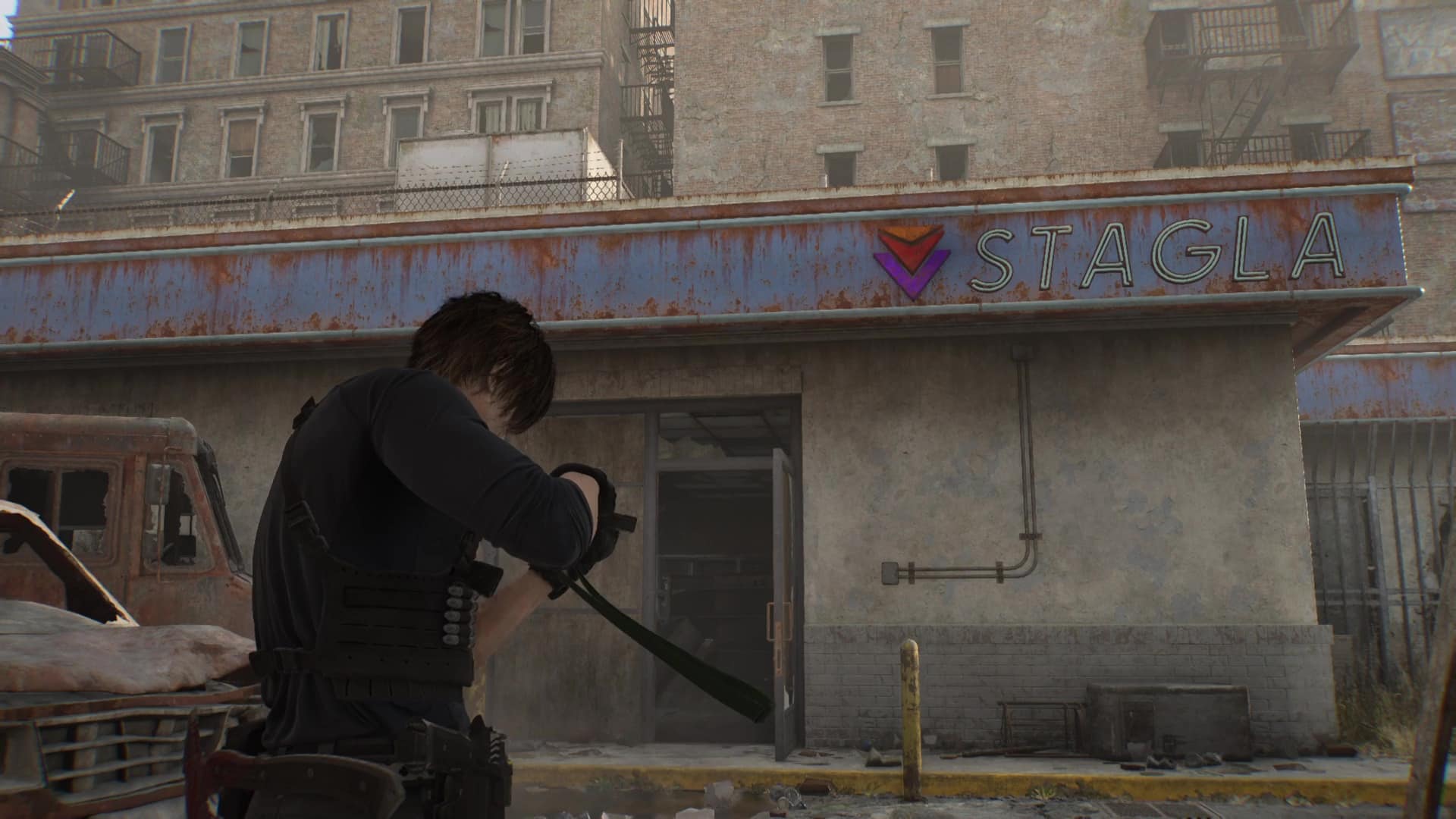 - Emplacement : Le chemin est long pour ce Mr. Raccoon bien caché. En possession d’un bidon d’essence plein, remplissez le générateur à côté de la grue de la rue principale puis ouvrez la porte, et montez à l’échelle.