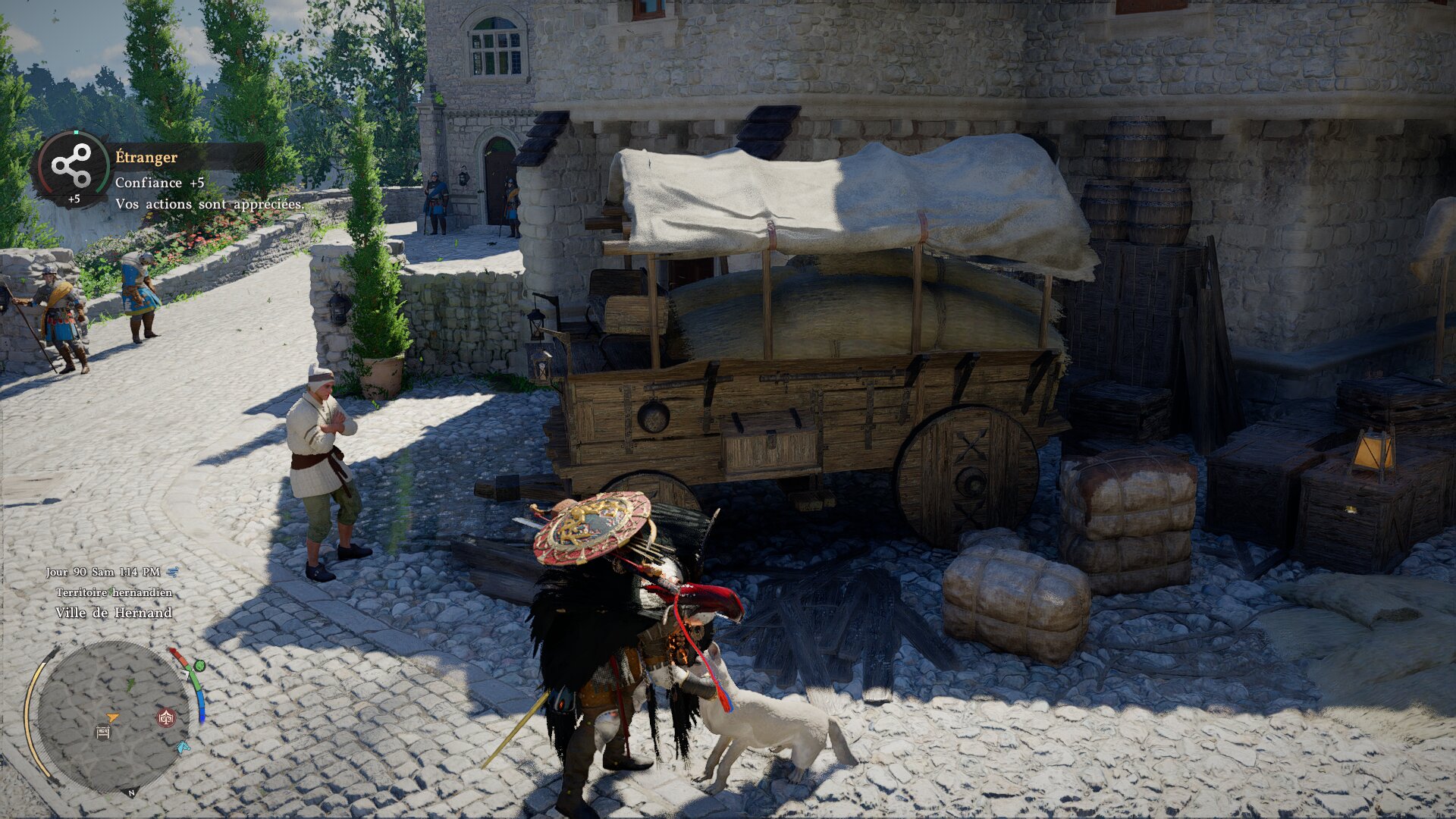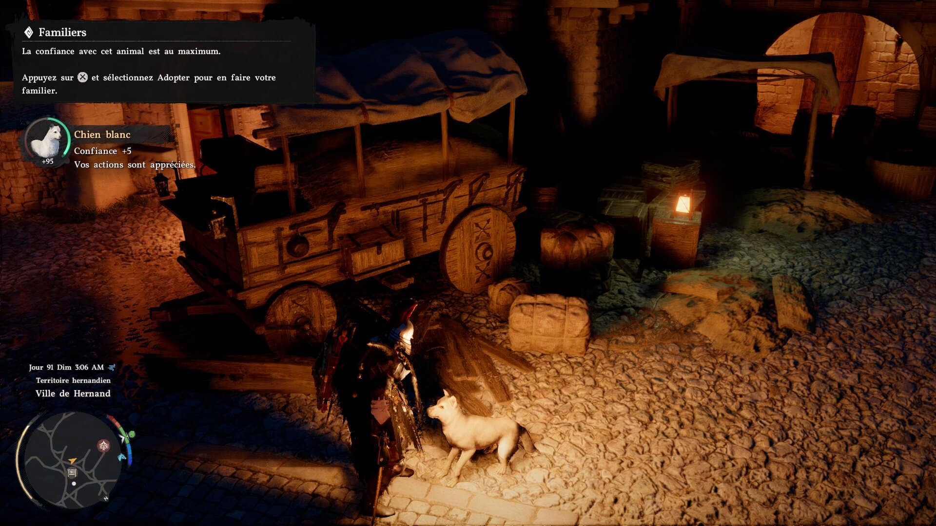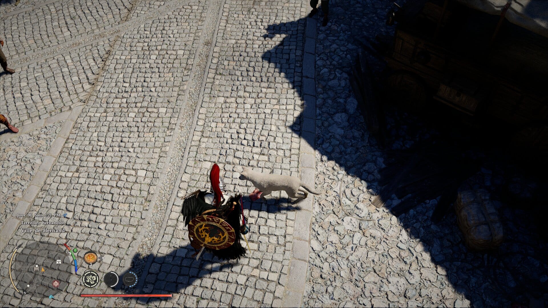Si vous cherchez un chien à adopter dans Crimson Desert, le meilleur endroit pour cela est en ville. Allez par exemple à Hernand et vagabondez dans les rues jusqu’à trouver un cabot dont la bouille vous plaît, que ce soit vers la place centrale ou vers le forgeron.