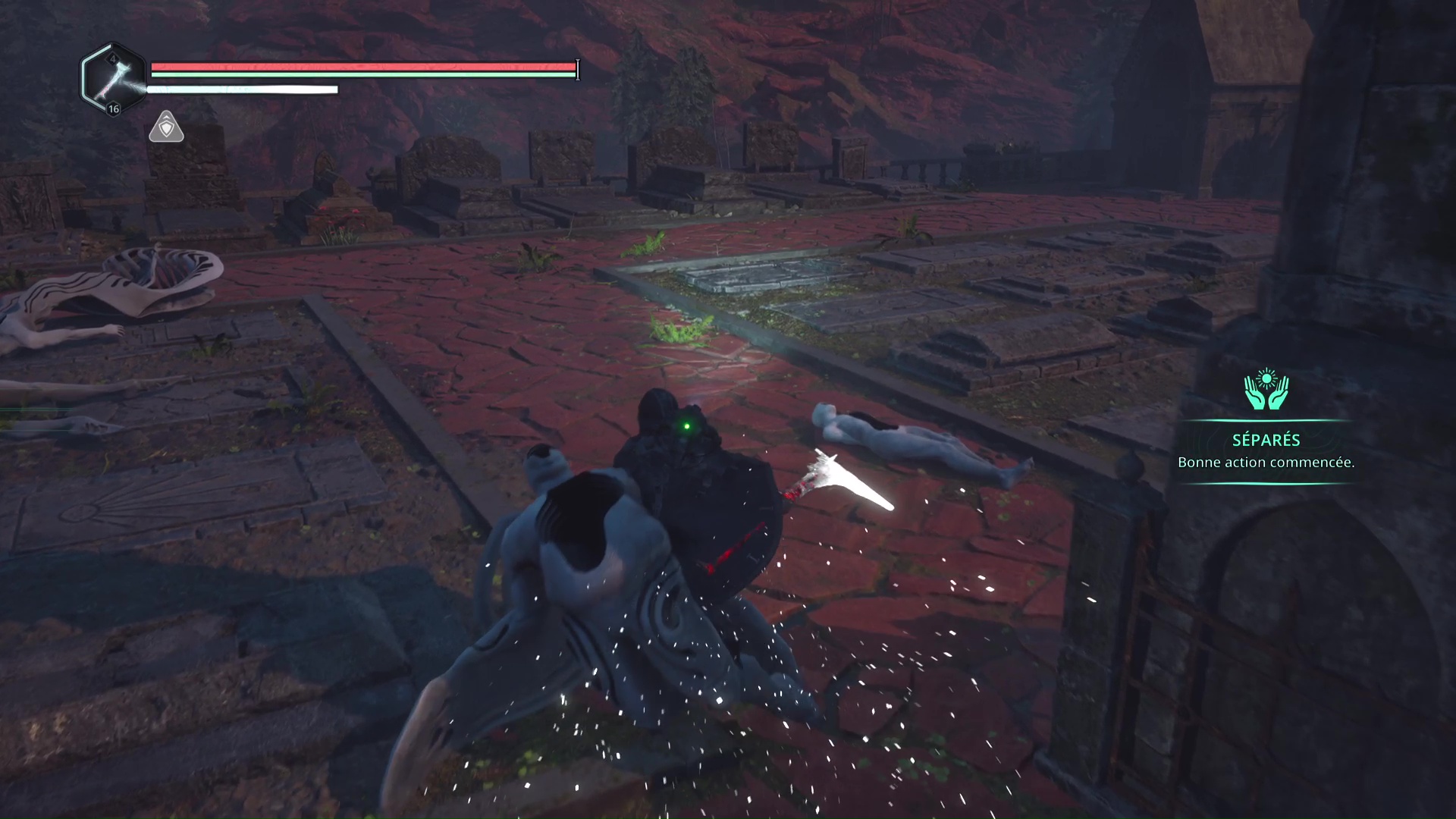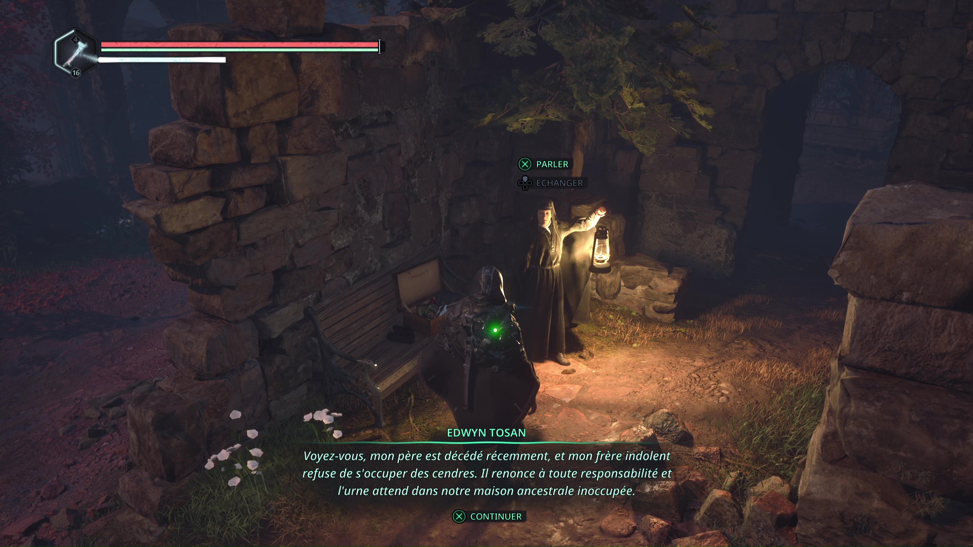 Ensuite, vous pouvez également vous adresser à la sœur. Elle se cache quant à elle au niveau des cryptes. Vous la croiserez lorsque vous quitterez le souterrain du site de fouilles en remontant l’échelle. Le reste de la mission est simple, vous devez éliminer les Hollow Walkers qui se dressent entre le frère et la sœur. Seuls certains ennemis comptent pour la quête. Il y a d’abord les Hollow Walkers du cimetière juste à côté de la sœur.