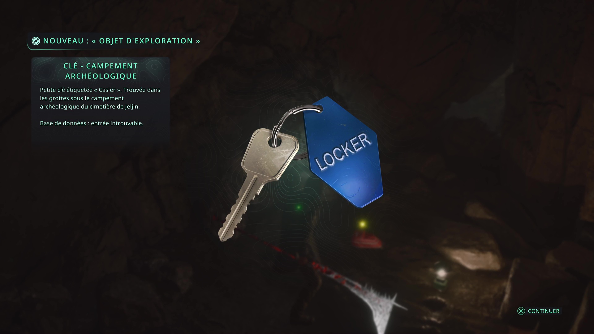 Montez ensuite l’échelle à côté pour vous retrouver au niveau de la boucle temporelle. Dans un coin et sur un sac rouge se trouve un point brillant : c’est la Clé – Campement archéologique.