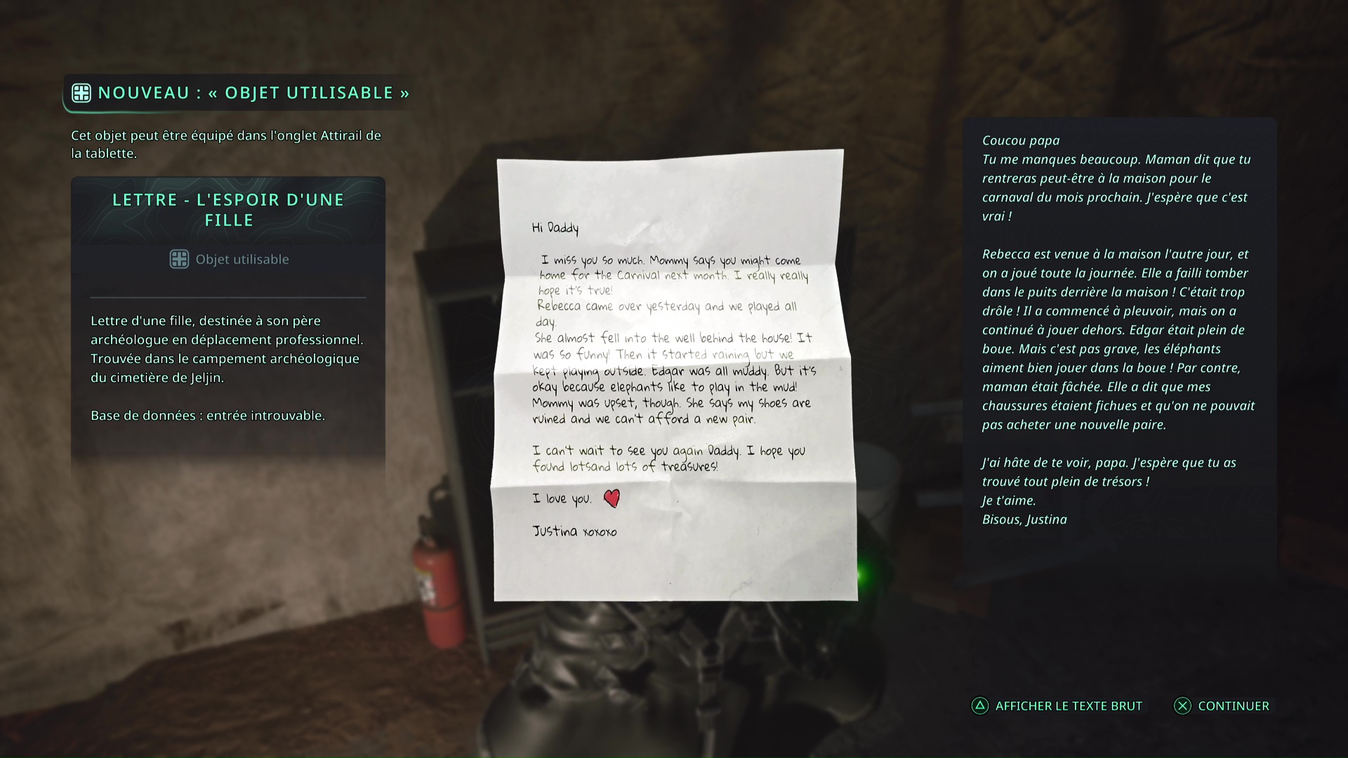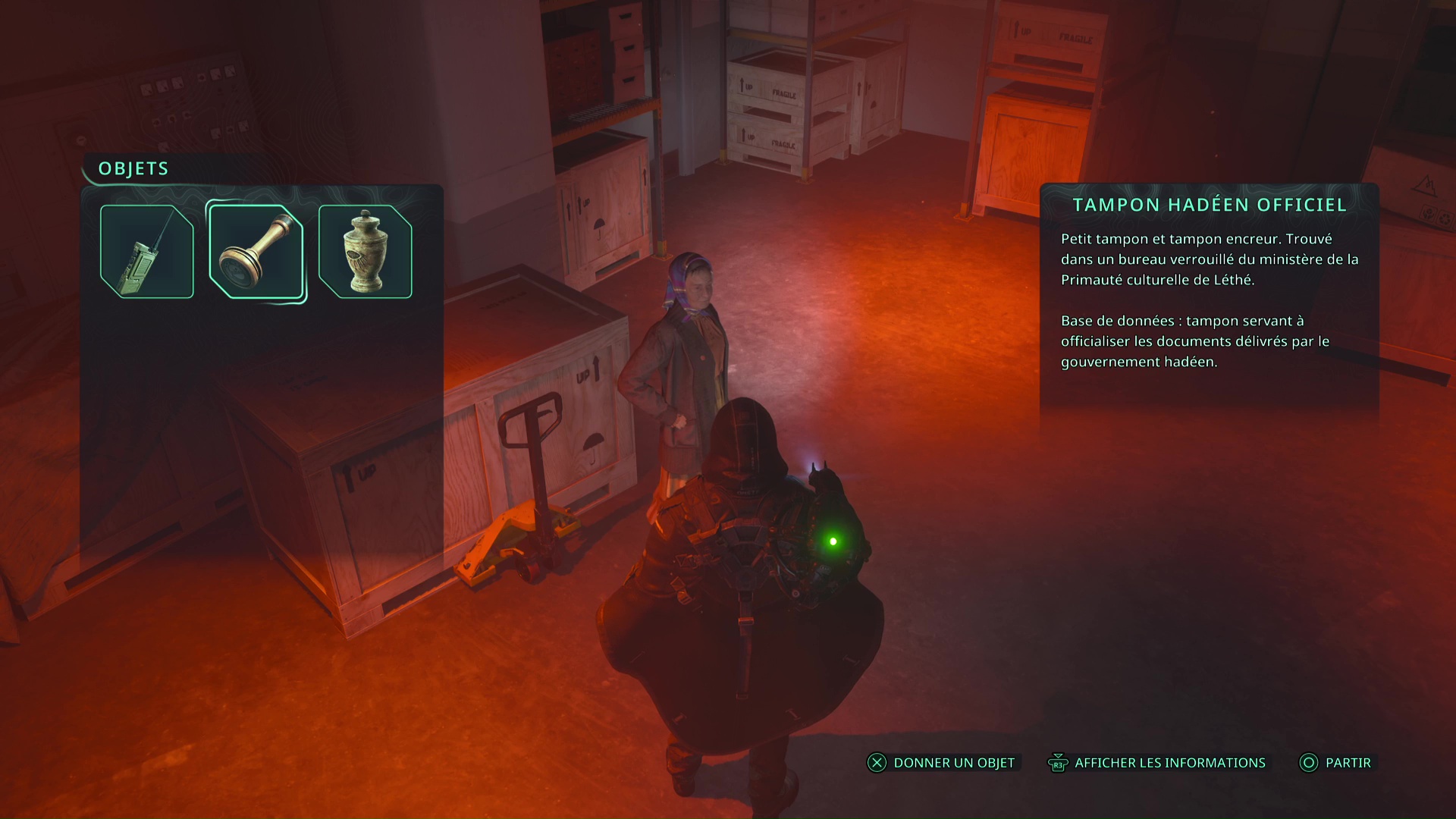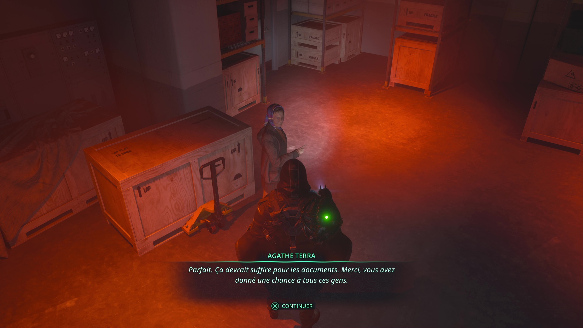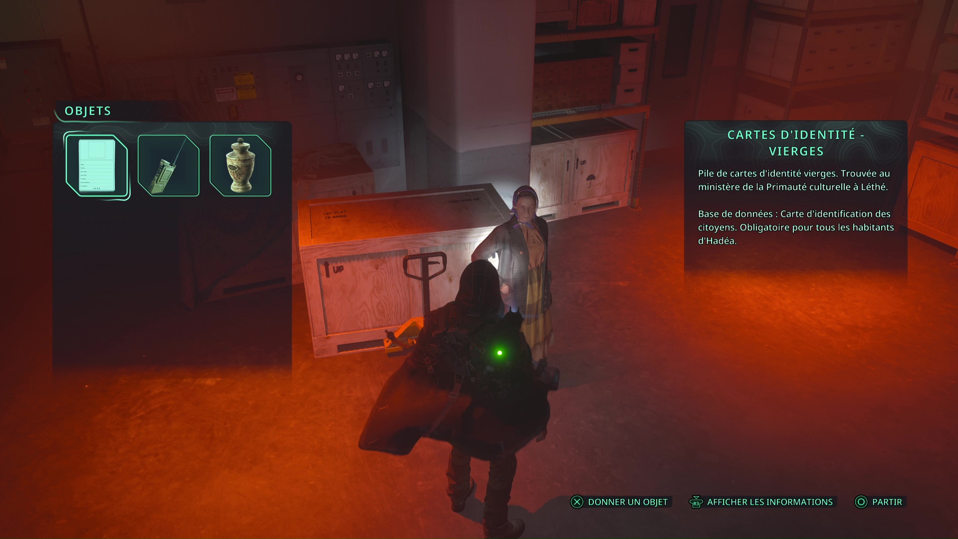 Avec ces deux objets en poche, retournez voir Agathe à Lethé – Bibliothèque nationale et donnez-les-lui pour permettre aux survivants de repartir vivants et libres des lieux, scellant ainsi une bonne action réussie.