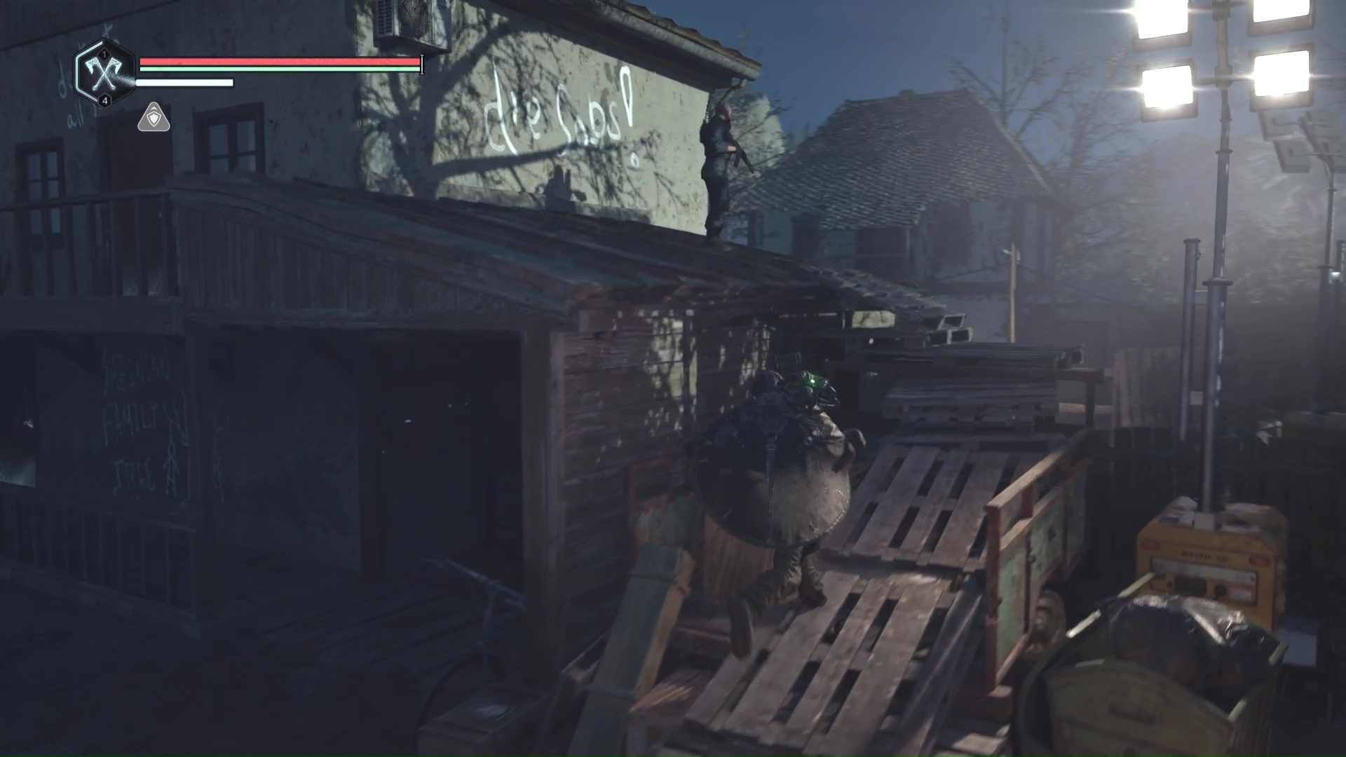 A l’endroit où se trouvent trois soldats et le prêtre palomiste, à côté de l’antenne à éteindre pour la bonne action « Tourner le fer dans la plaie », cherchez une petite jetée sur laquelle se trouve un point doré brillant. Il s’agit d’un Bidon d’essence.