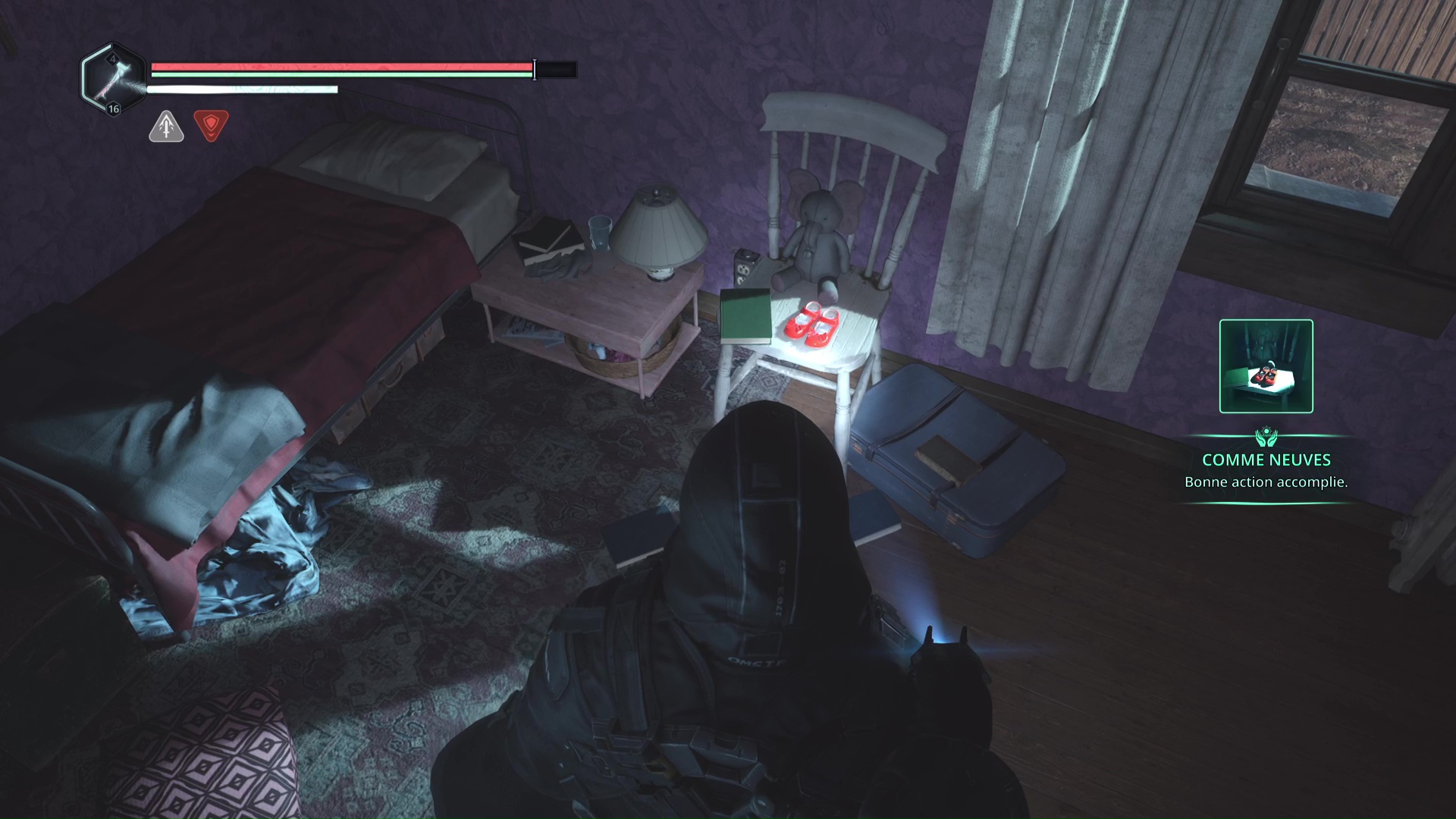 Vous arriverez ensuite dans une chambre d’enfant. Examinez la chaise et déposez les chaussures dessus. La bonne action sera alors accomplie.