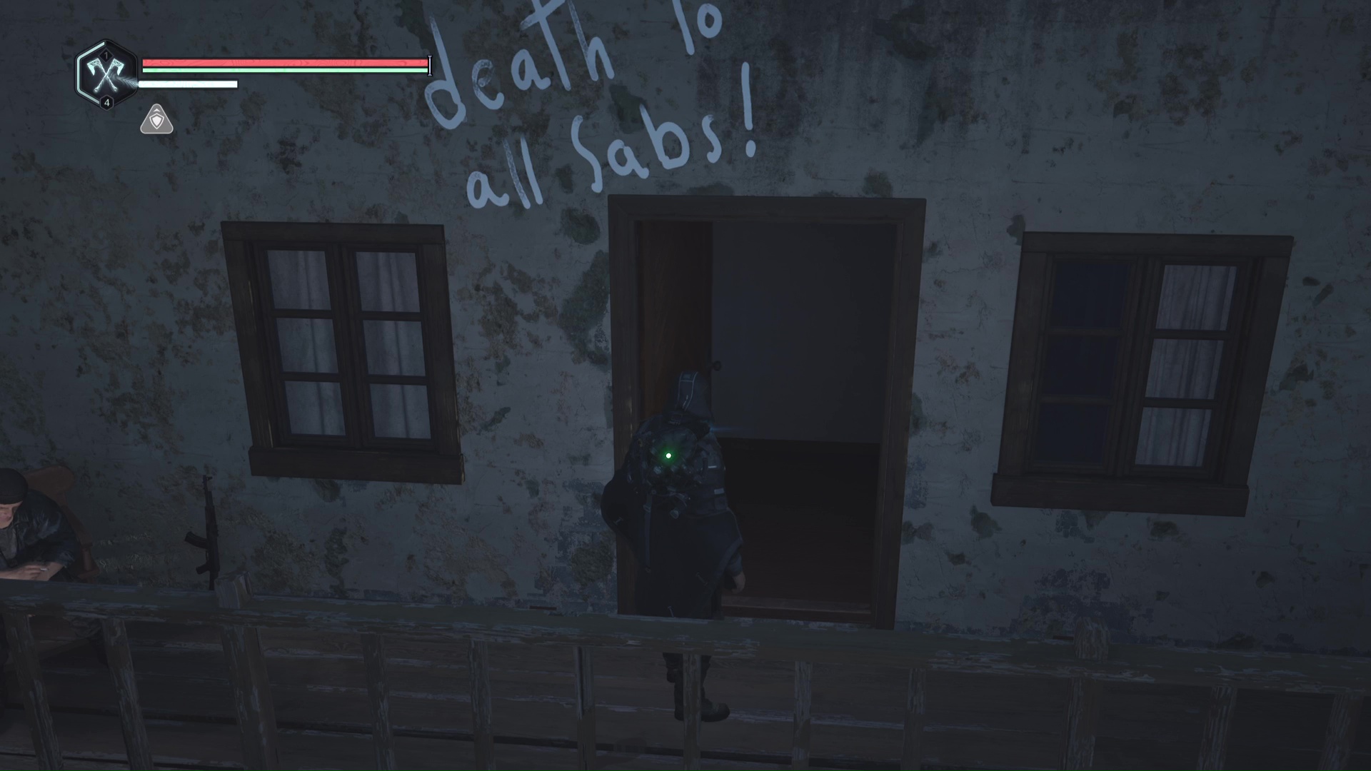 Désormais, il faut revenir dans le village de Jova. Partez du puits et dirigez-vous vers la maison gardée par deux soldats, au 1er étage. Si la maison est toujours verrouillée, escaladez les palettes sur la droite et ouvrez la porte du premier étage.