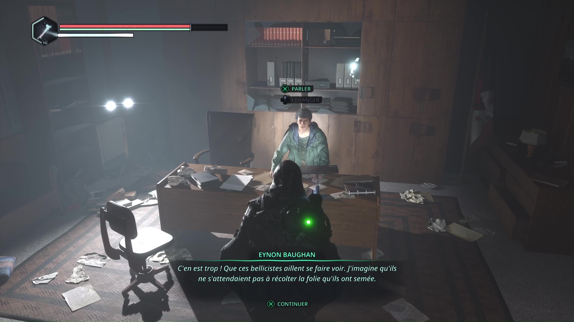 Ensuite, dans l’une des premières pièces accessibles du bâtiment du ministère, vous tomberez sur un rebelle du nom de Eynon Baughan. Juste à côté de lui se trouve une porte verrouillée.