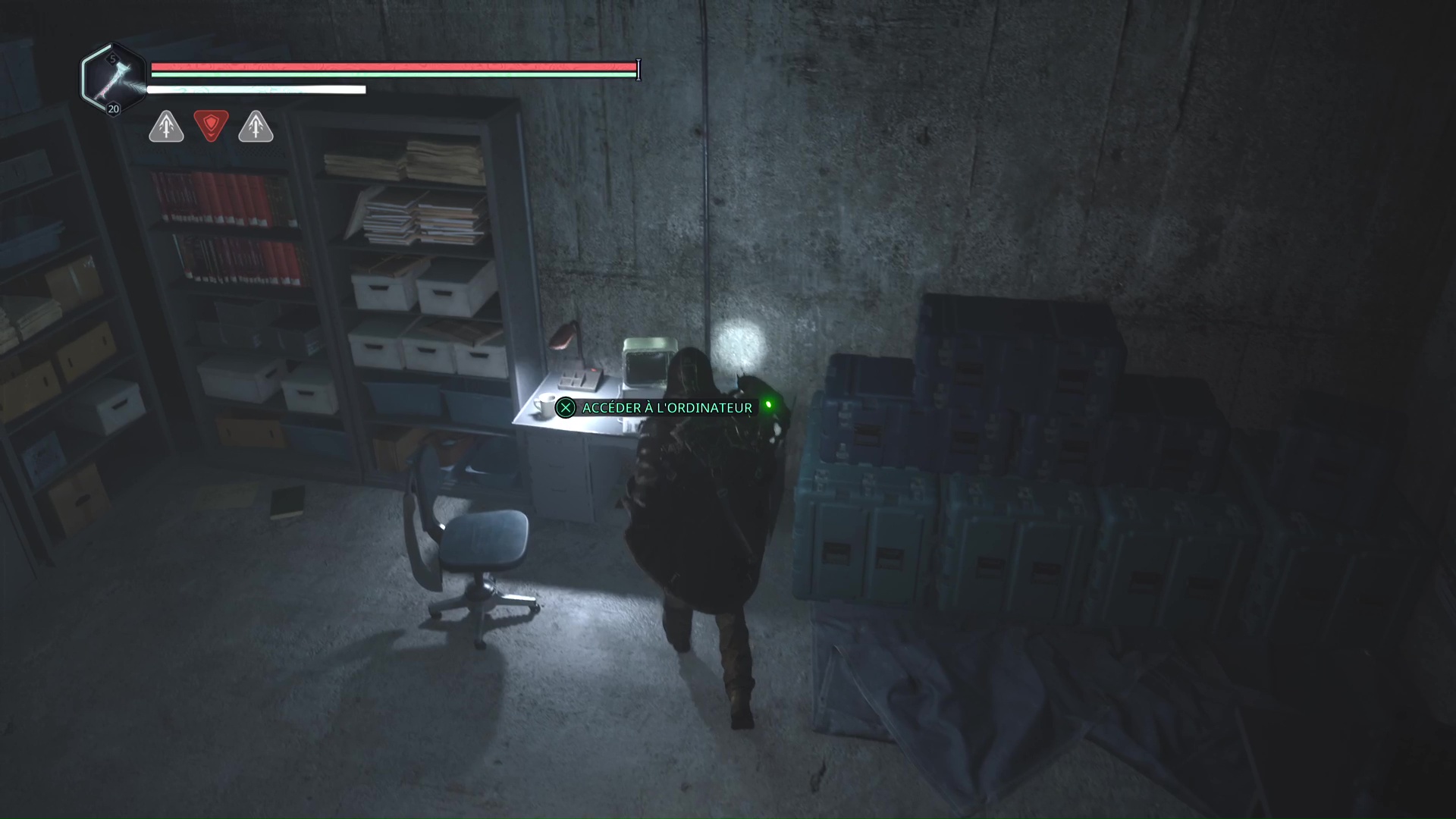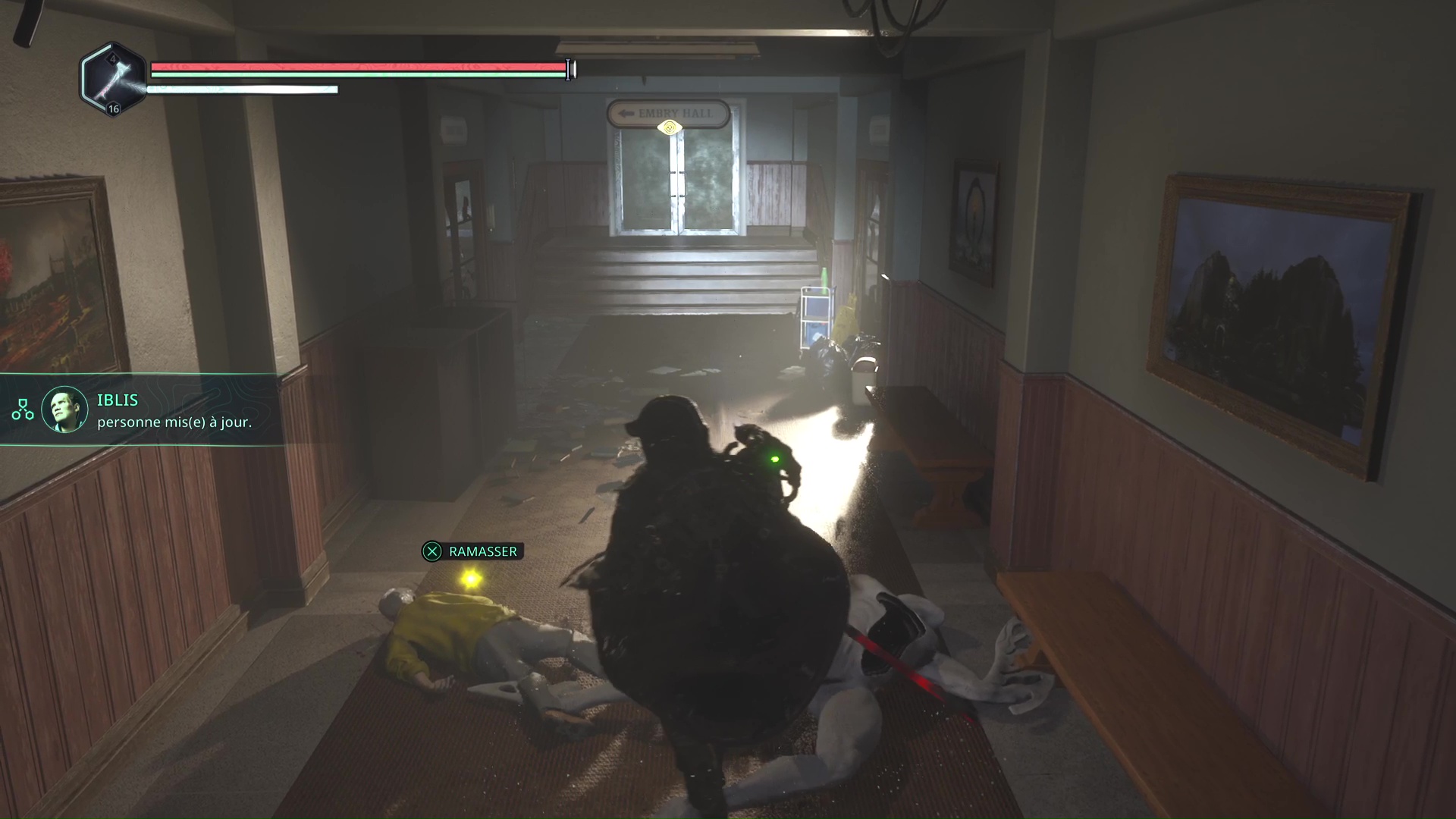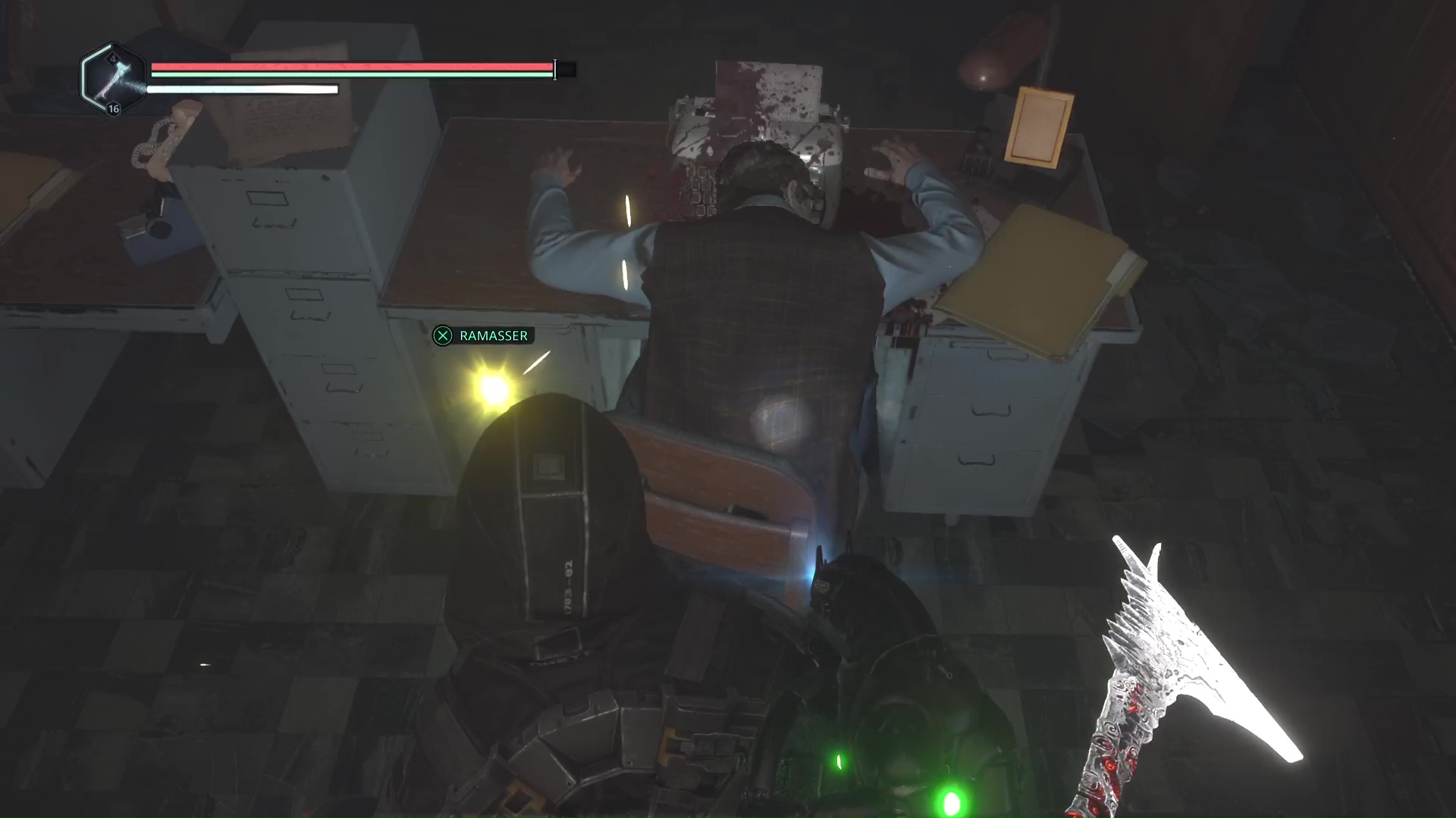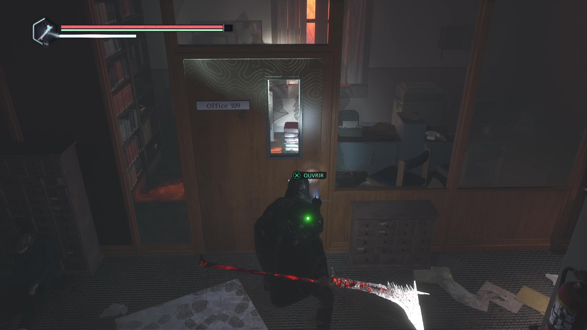 Ensuite, et presque juste à côté, entrez dans le bureau 112 et approche du cadavre affalé sur son bureau. A sa gauche, au niveau du tiroir, se trouvent les Cartes d’identité – Vierges.
