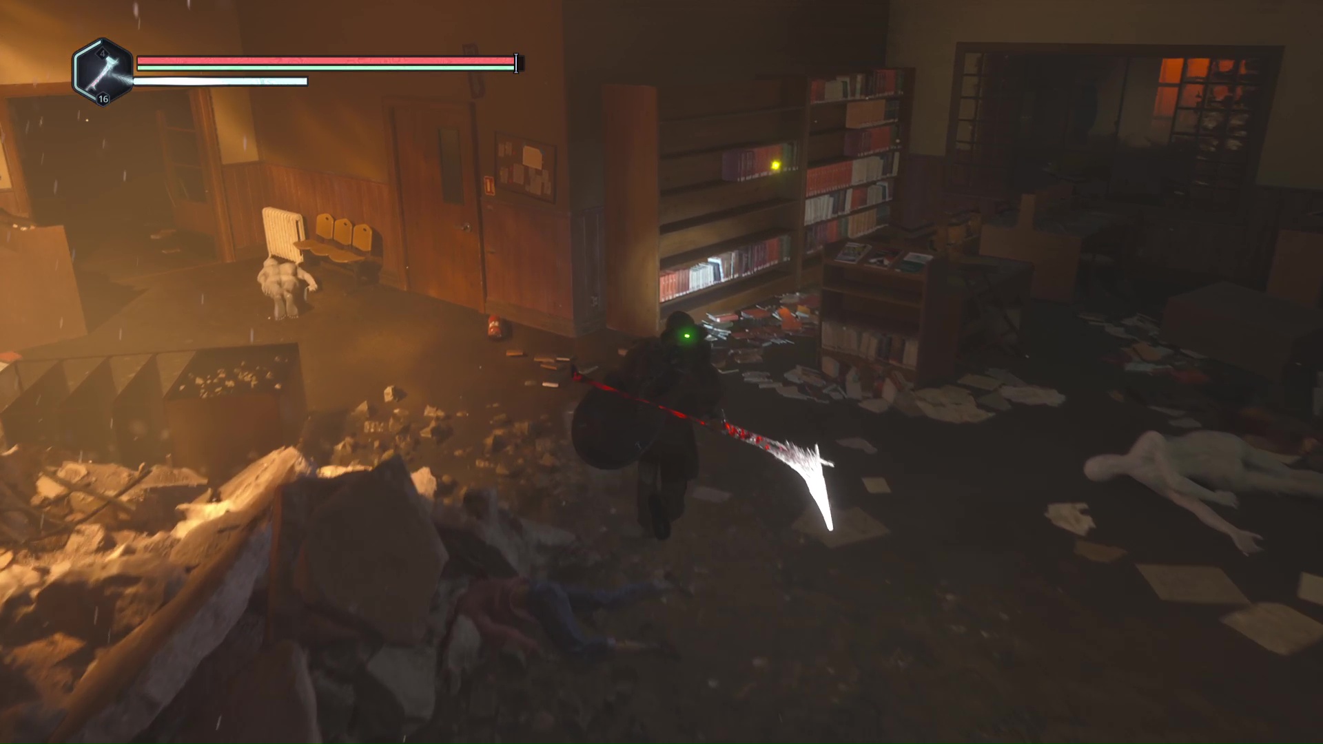 Devant la mairie de Talju, le bâtiment où sont retranchés les survivants, il y a un gardien de boucle. Eliminez-le et vous pourrez mettre la main sur un point doré brillant. Il s’agit de quatre fusées de détresse. Avec ces fusées, vous allez devoir trouver des survivants isolés et leur présenter une fusée de détresse. De cette manière, ils pourront être récupérés au moment où les survivants retranchés à la mairie pourront partir.