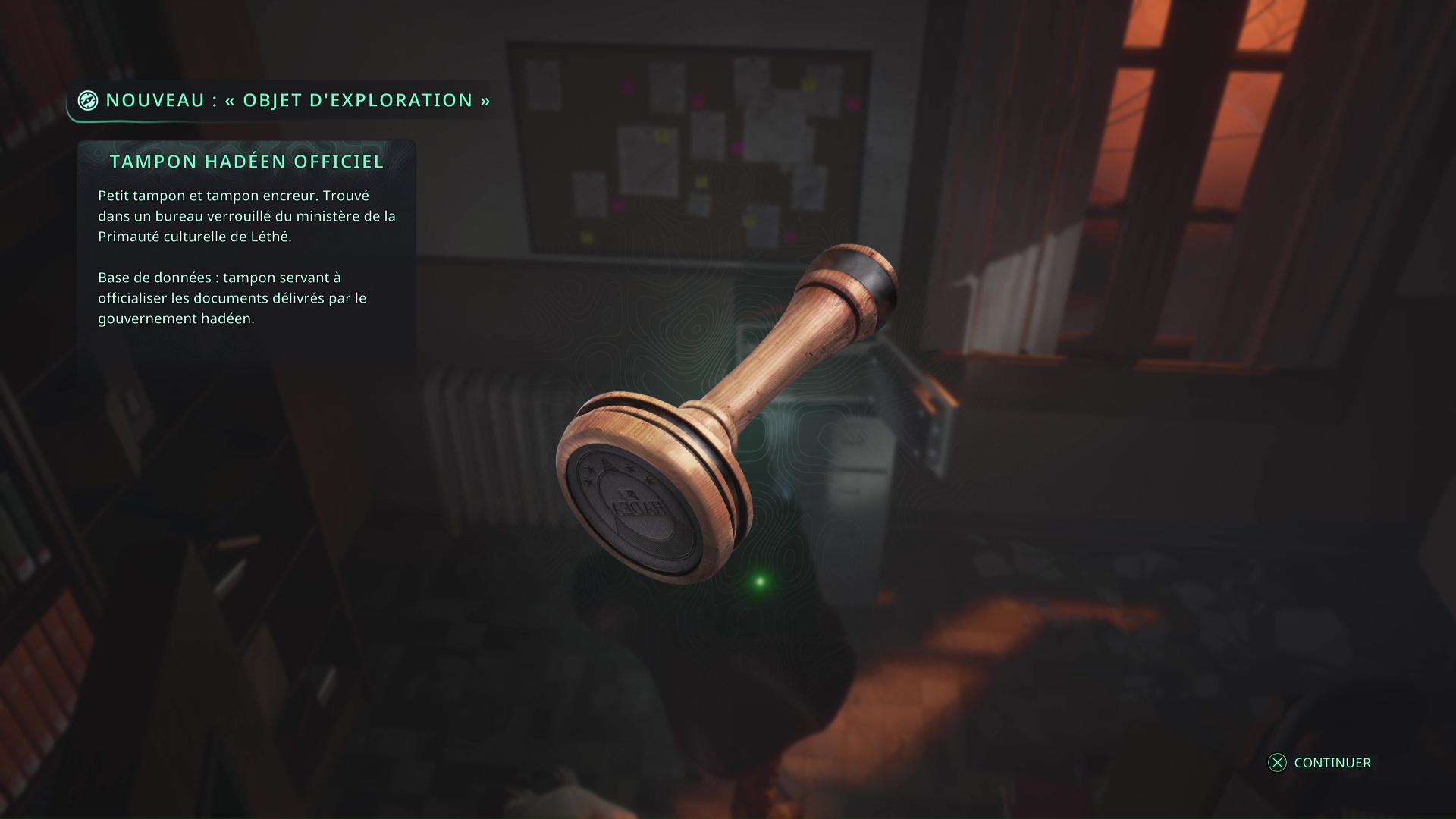 Direction Lethé – Ministère de la Primauté culturelle et les bureaux situés au rez-de-chaussée après être tombé dans un trou. Une fois dans les bureaux, ouvrez la porte du bureau 109 et ouvrez le coffre-fort avec le mot de passe de la Note – Faveurs dues : 2703. Vous obtiendrez le Tampon hadéen officiel.