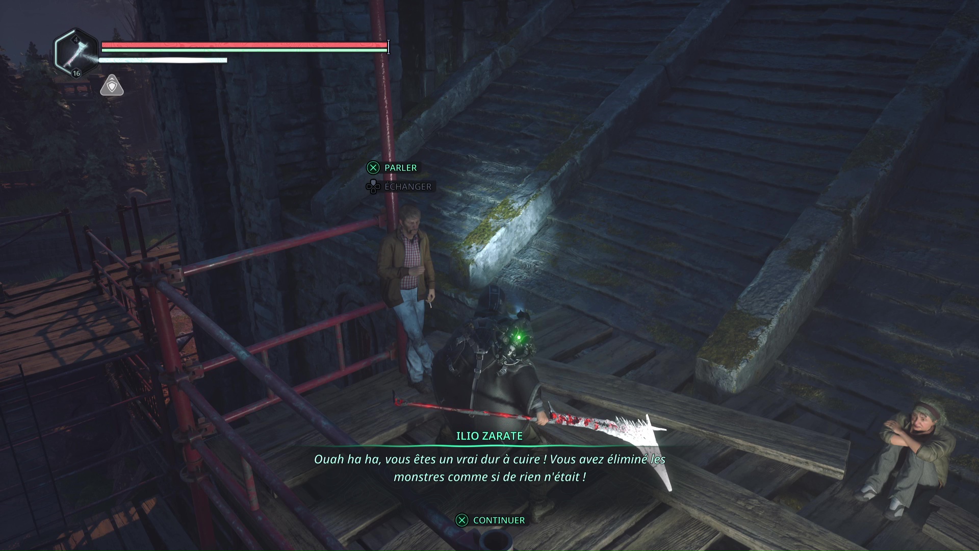 - Ylio Botham, un homme caché au niveau du grenier de la grange tout au nord de Talju. Il faut d’abord battre l’Hollow Walker-Haze situé devant la porte d’entrée puis grimper à l’échelle une fois à l’intérieur.
