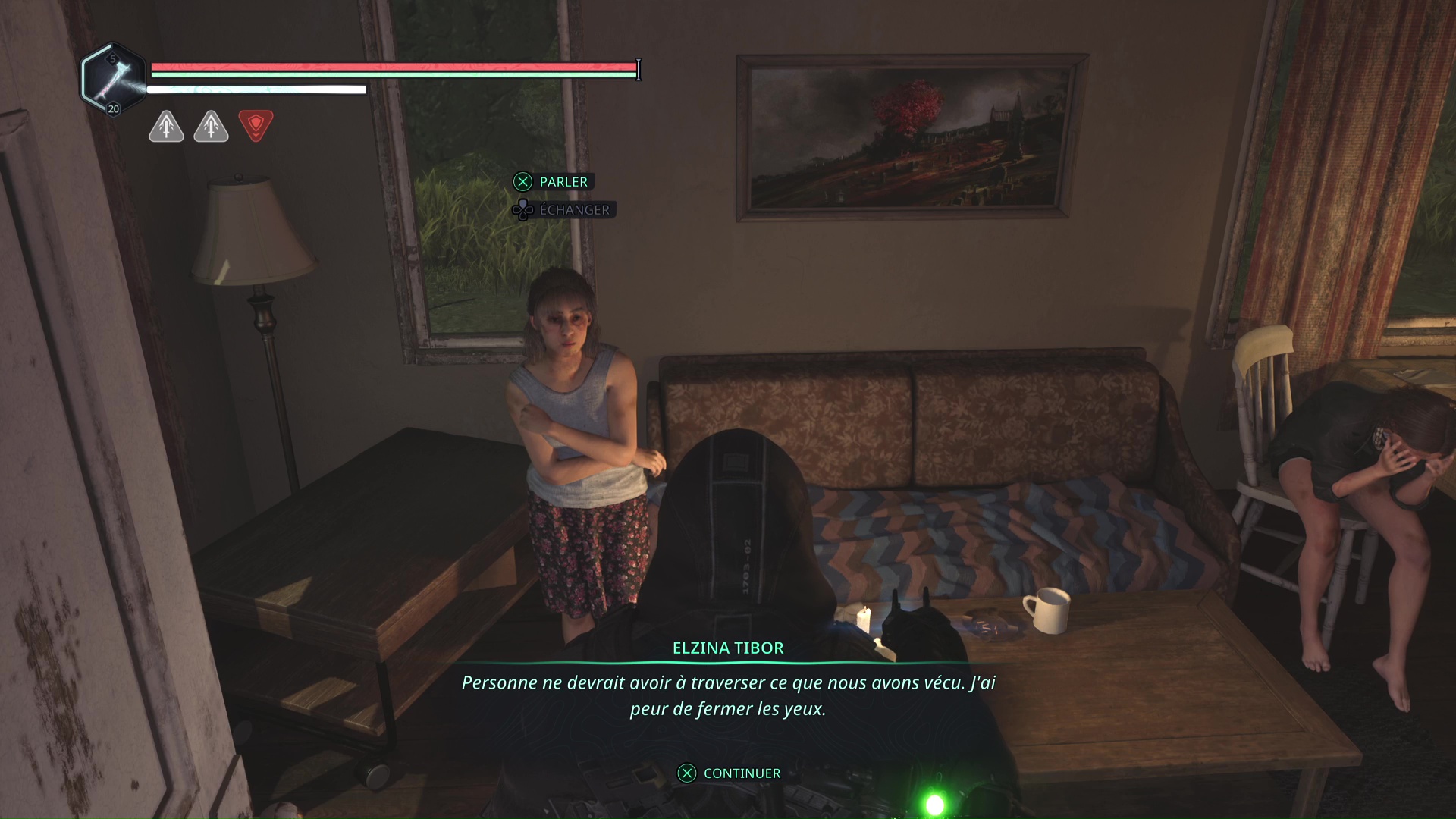 Attention, il faut s’occuper de cette bonne action dès votre première rencontre avec Mireille Dallaire. Si vous quittez la zone sans l’aider, elle mourra et la bonne action aura échoué.