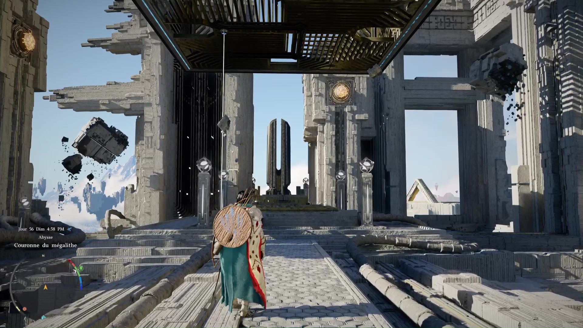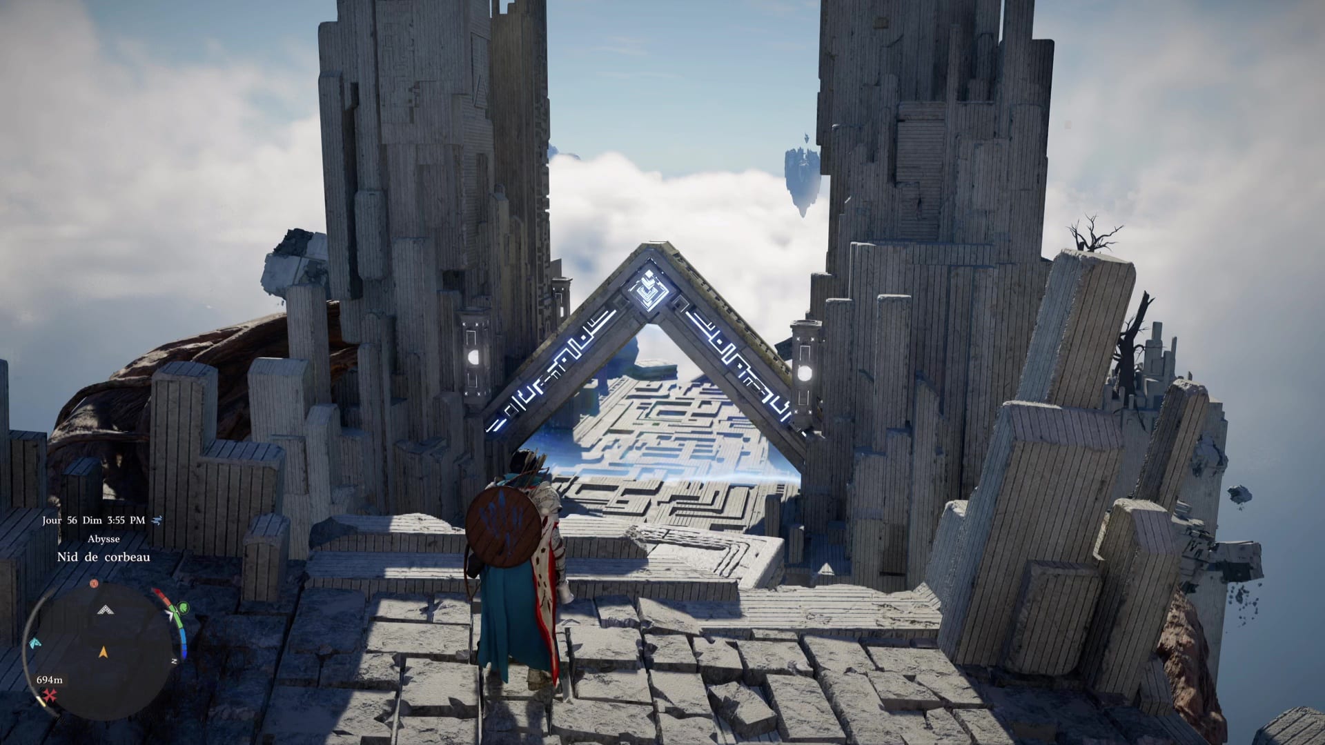Allez en direction de la Porte du Ciel donc, et traversez-la pour activer le mécanisme avec la force axiomatique et ainsi faire apparaître des plateformes. Sachez que vous pourrez tout simplement planer jusqu’au téléporteur.