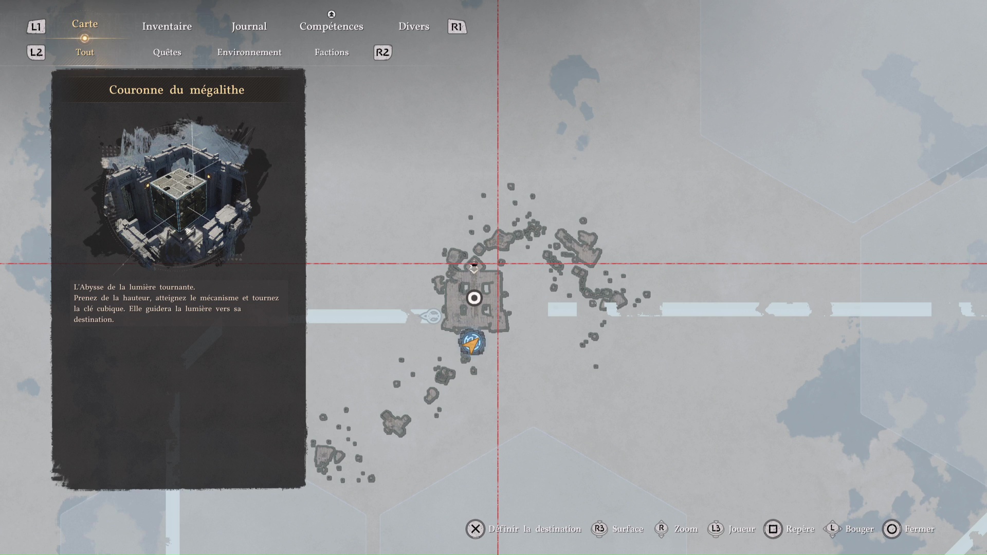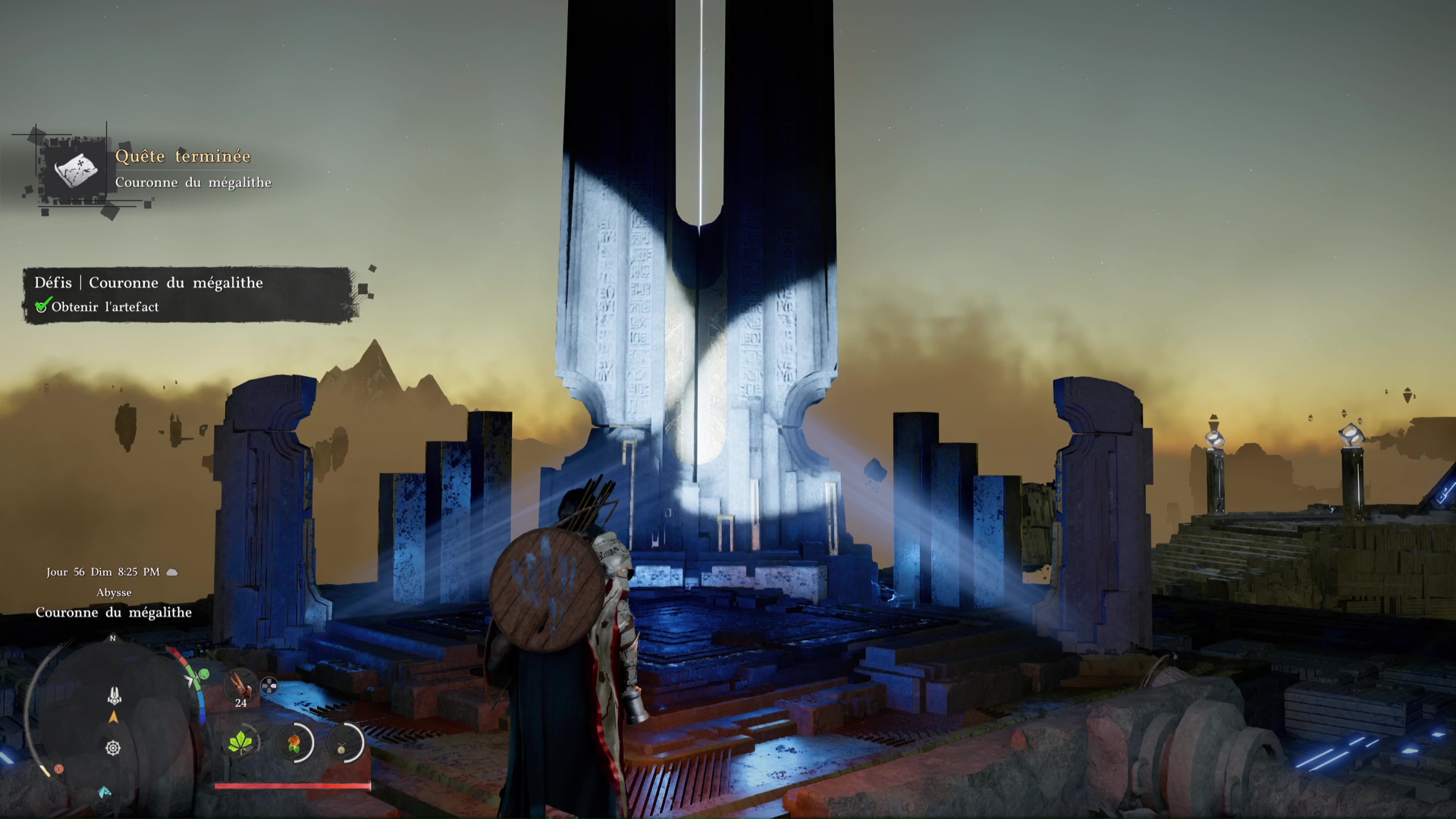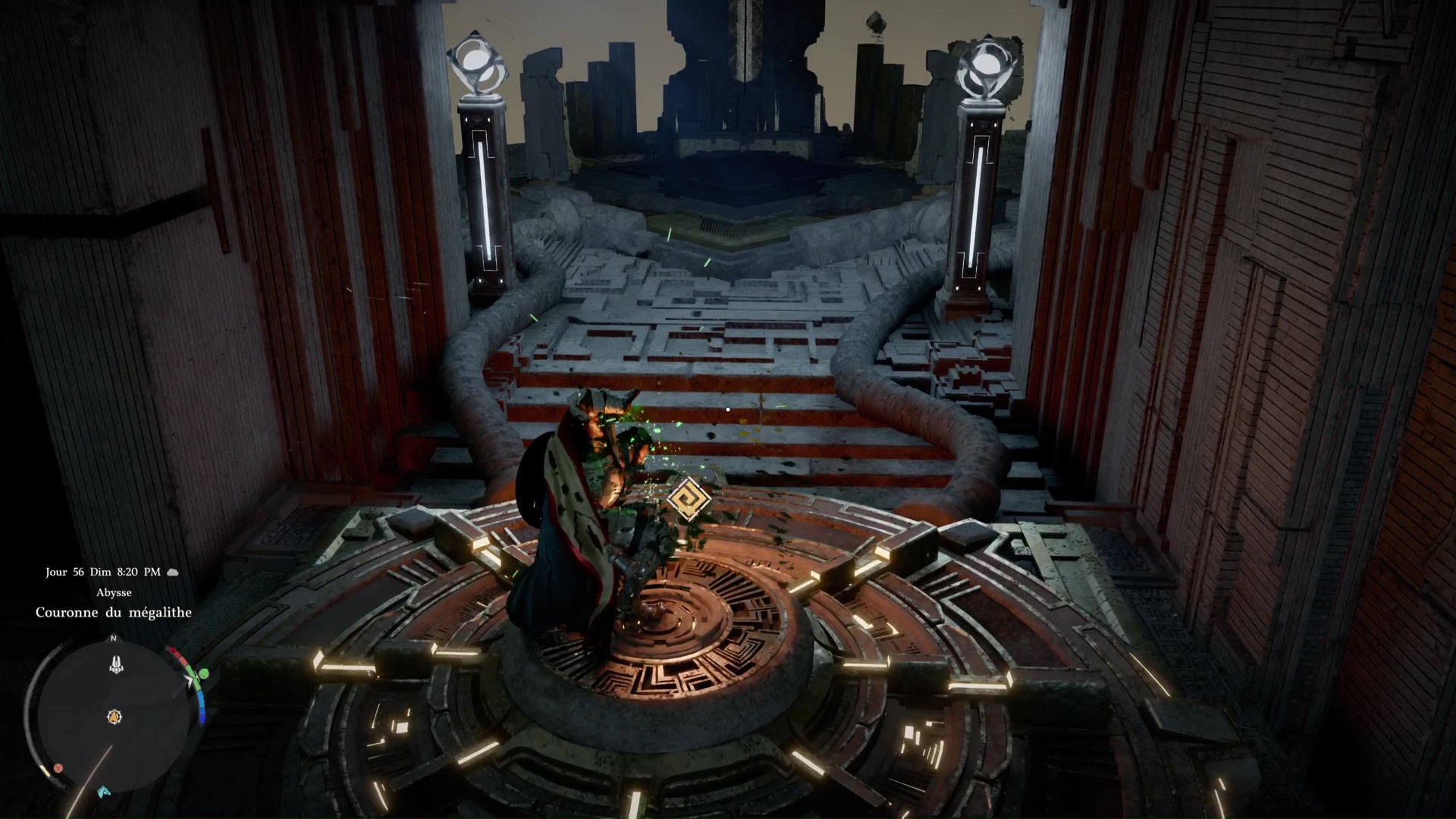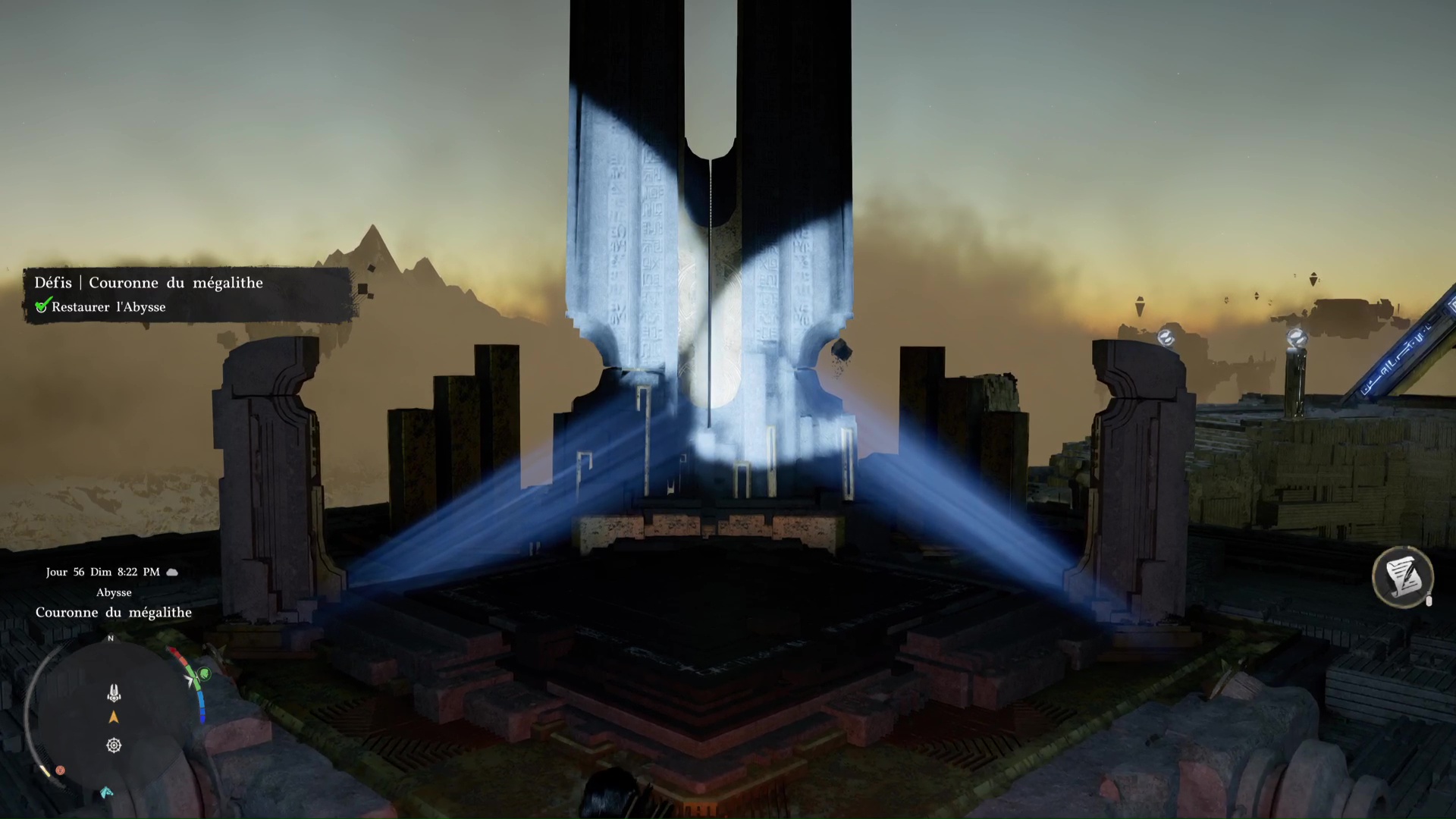 Lorsque tout est éclairé en bleu, allez ensuite enfoncer le mécanisme final avec un coup de paume accroupi pour restaurer l’Abysse, puis allez récupérer votre artefact auprès du monolithe final.