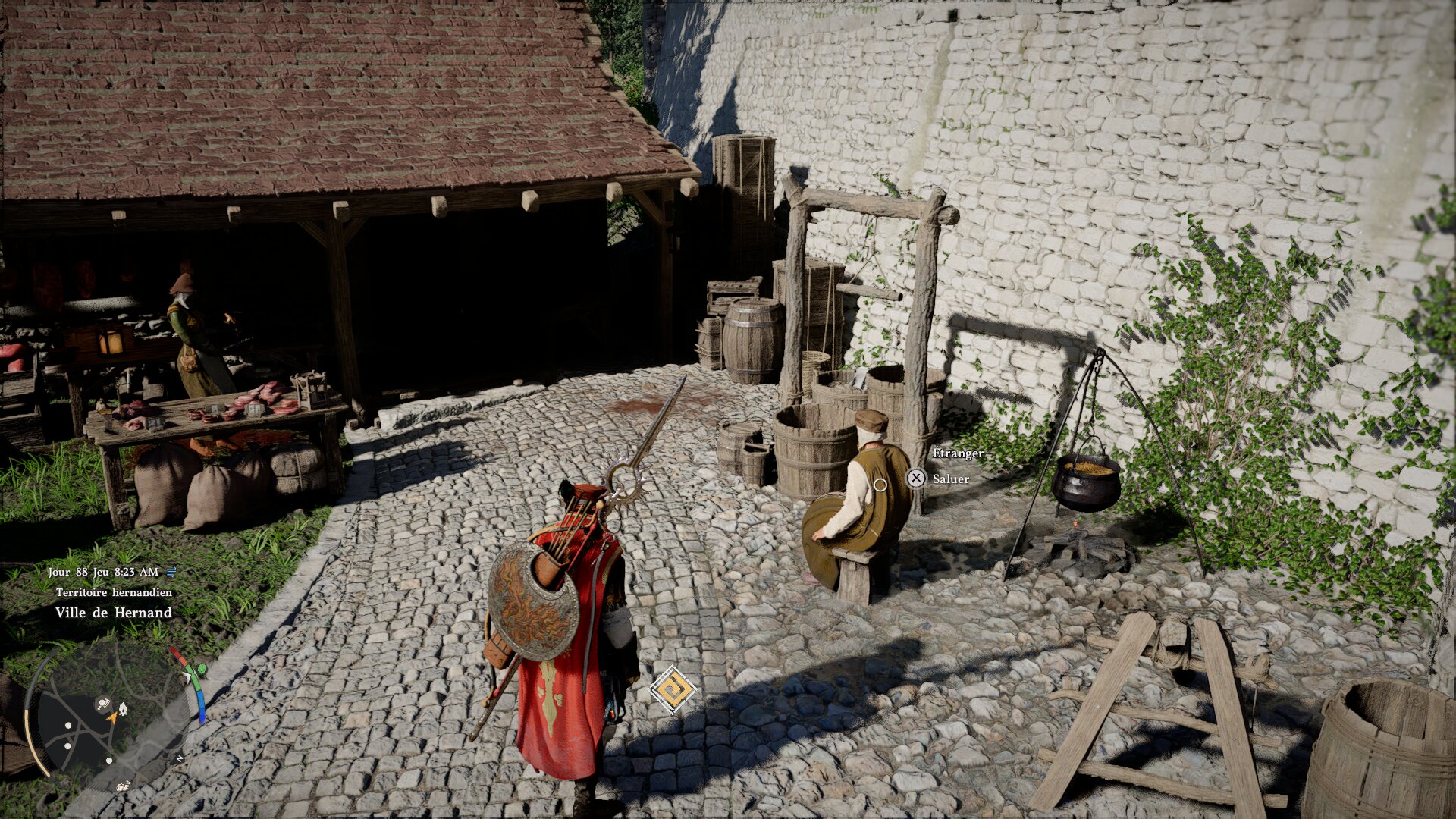 Il faudra donc vous mettre aux fourneaux. À Hernand, vous trouverez une bouchère et un étal de légumes près d’un feu pour cuisiner des recettes. Prenez le temps de le faire, même plusieurs minutes s’il le faut, avant de vous lancer dans la nature sans un stock de nourriture assez grand.