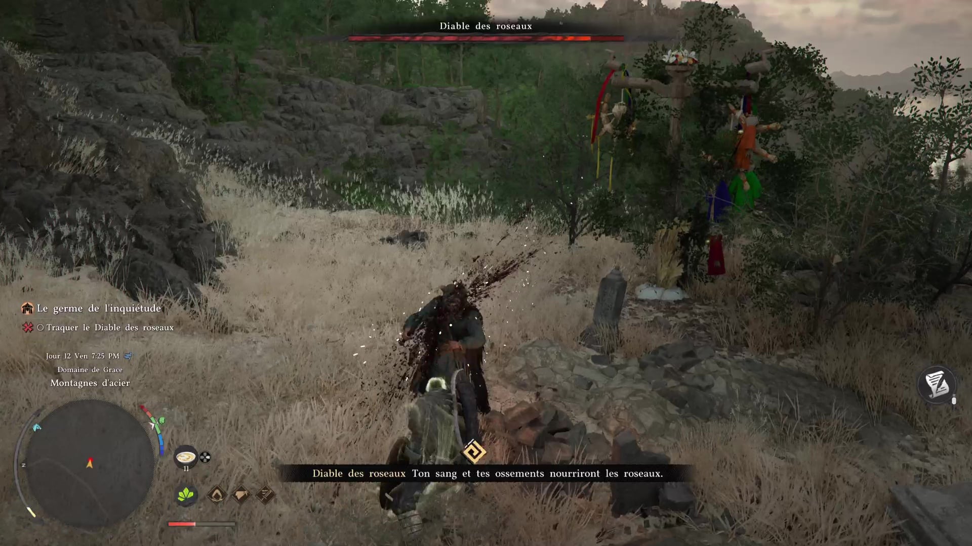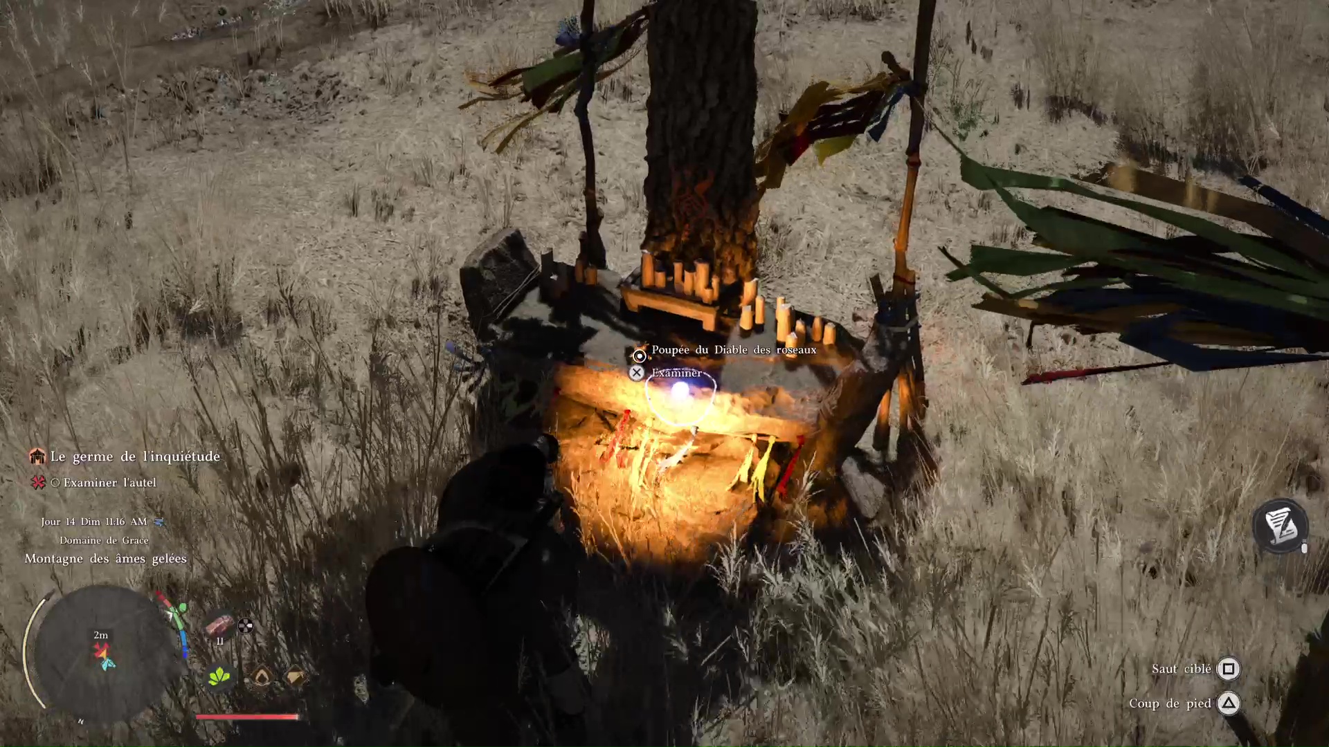 Dès que vous êtes prêt, examinez la poupée du Diable des roseaux posée sur l’autel pour déclencher une petite cinématique. Suivez ensuite le chemin à travers les cannaies pour lancer le combat de boss.
