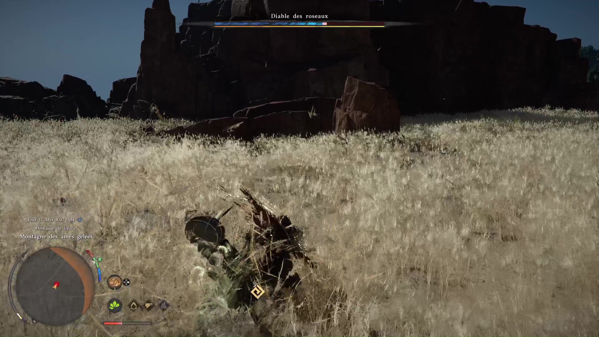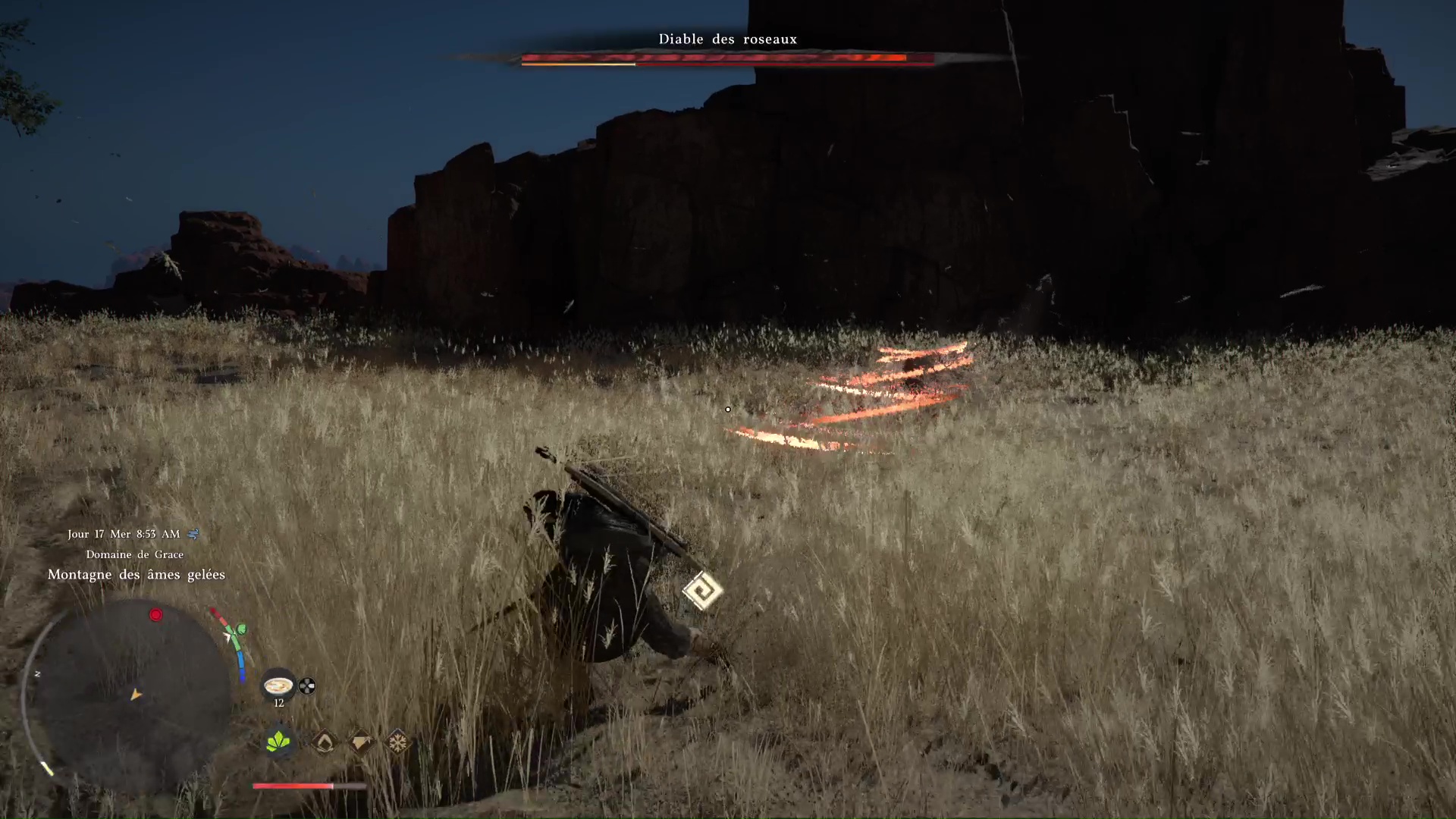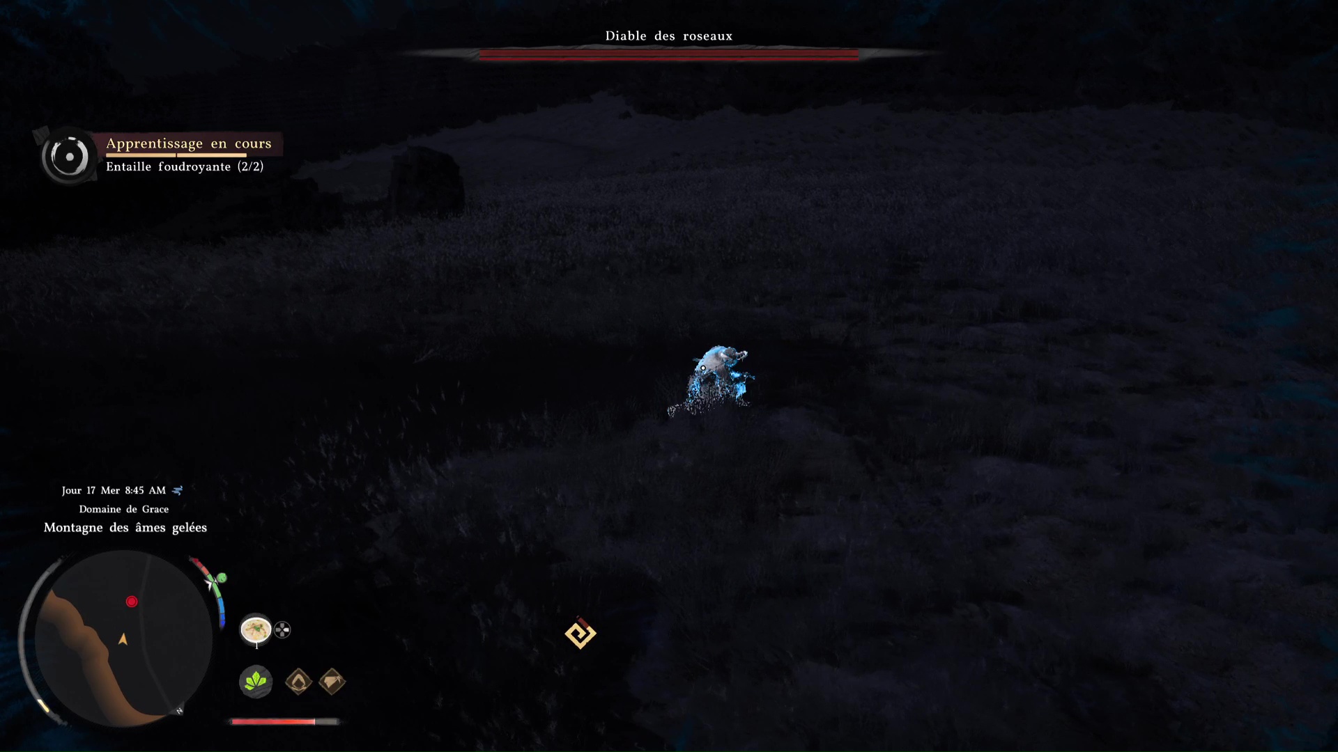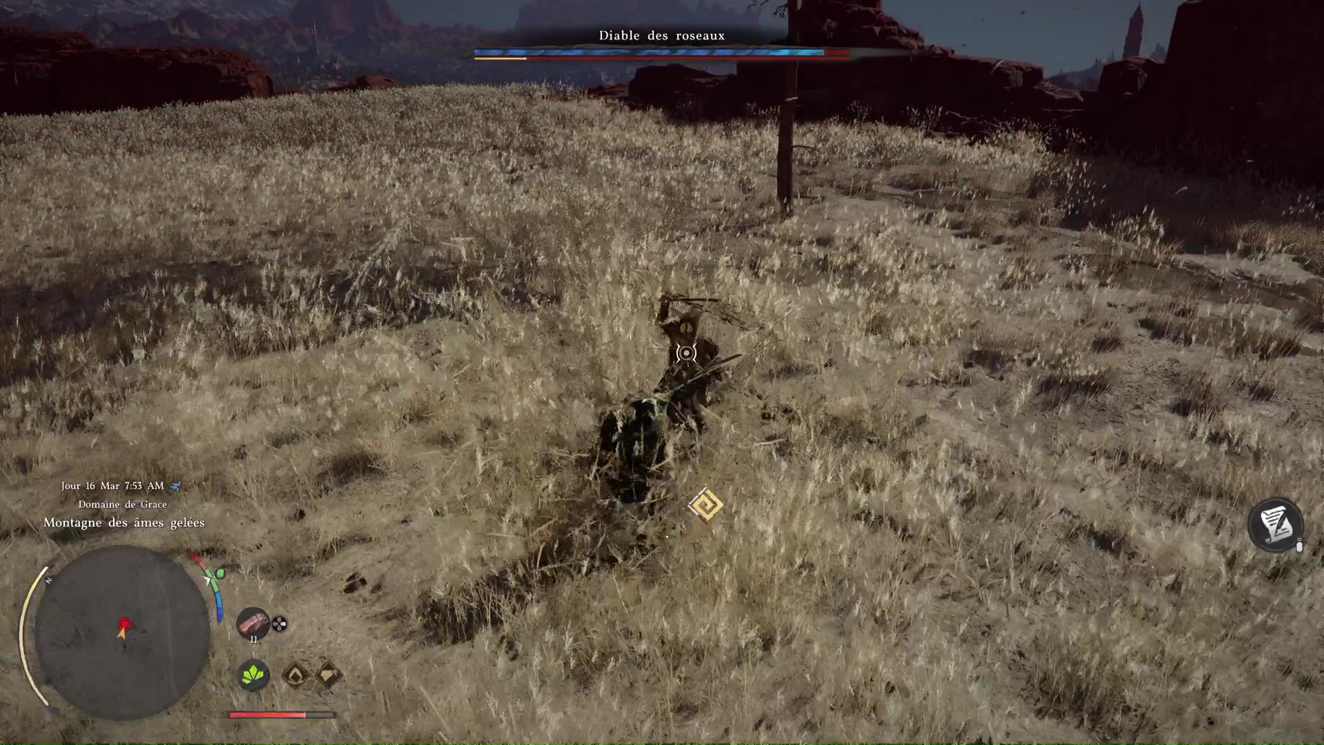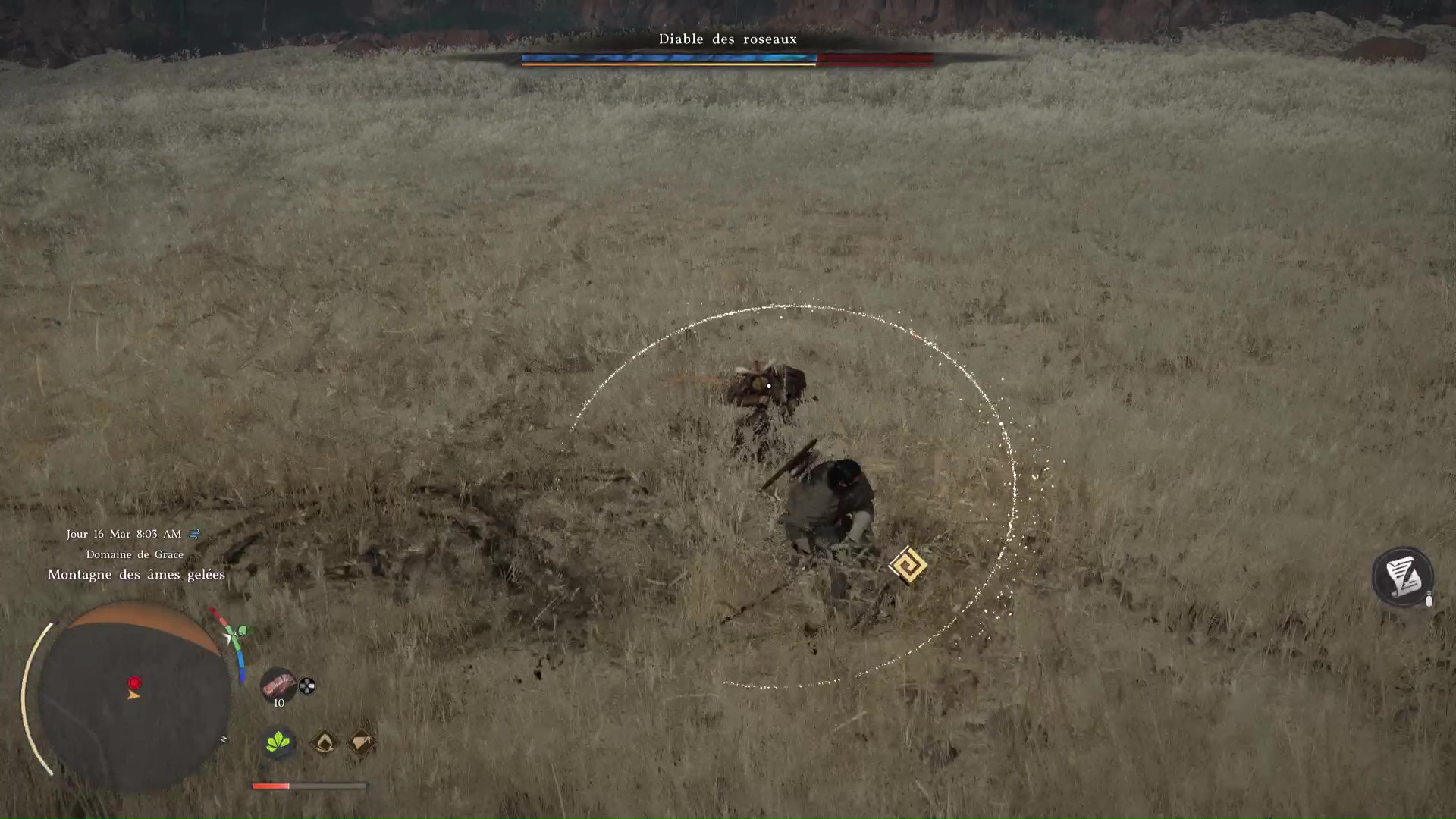 À la fin de cette phase, le Diable des roseaux lancera une nouvelle Entaille foudroyante. Sans doute qu’à ce moment-là, vous finirez par apprendre vous-même la technique. Portez un dernier coup une fois les totems détruits pour déclencher la dernière phase.