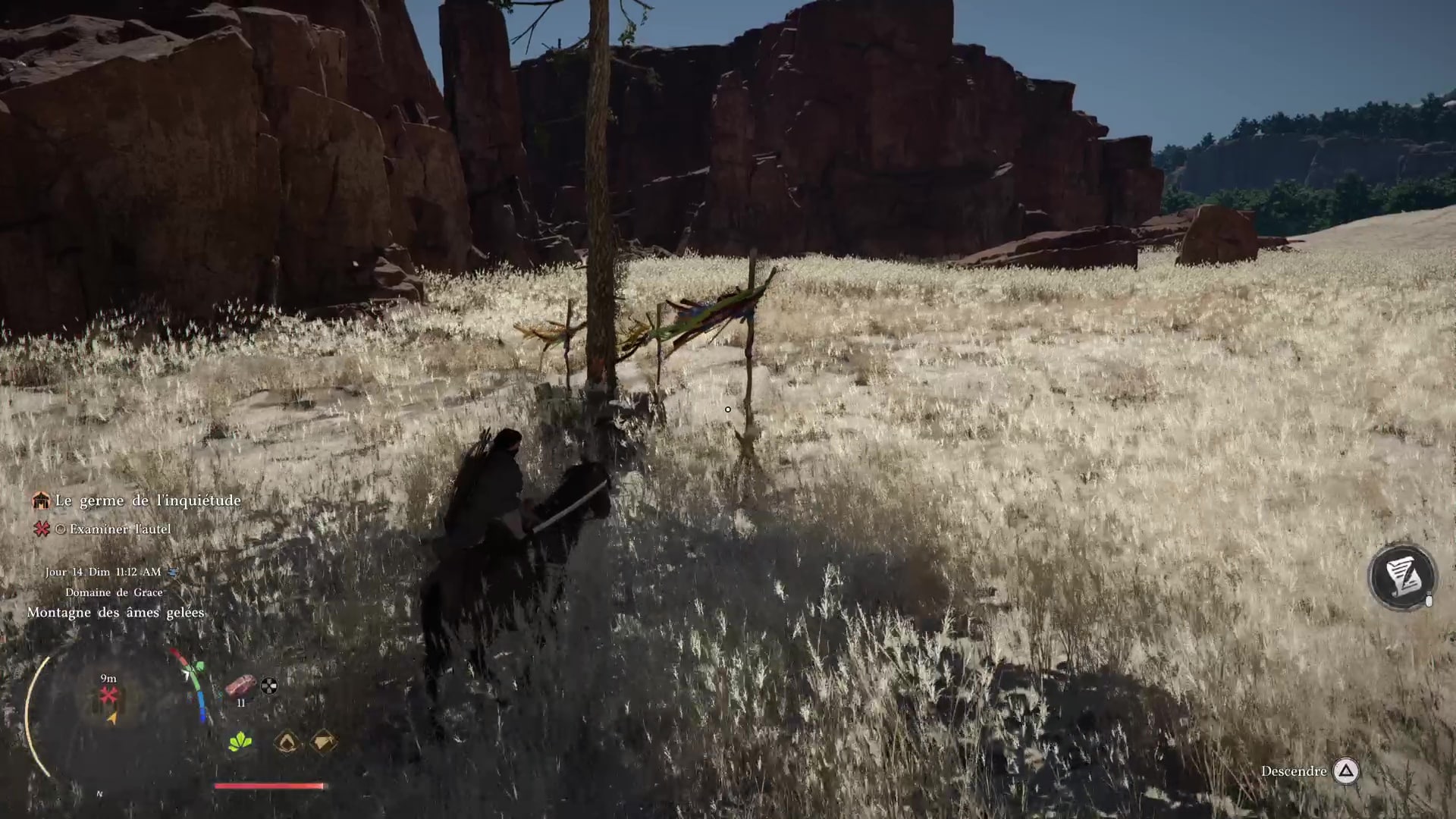 Menez l’ascension de cette manière jusqu’à l’immense champ de fin de parcours. Avancez sur la gauche de la zone pour atteindre un autel sous un arbre.