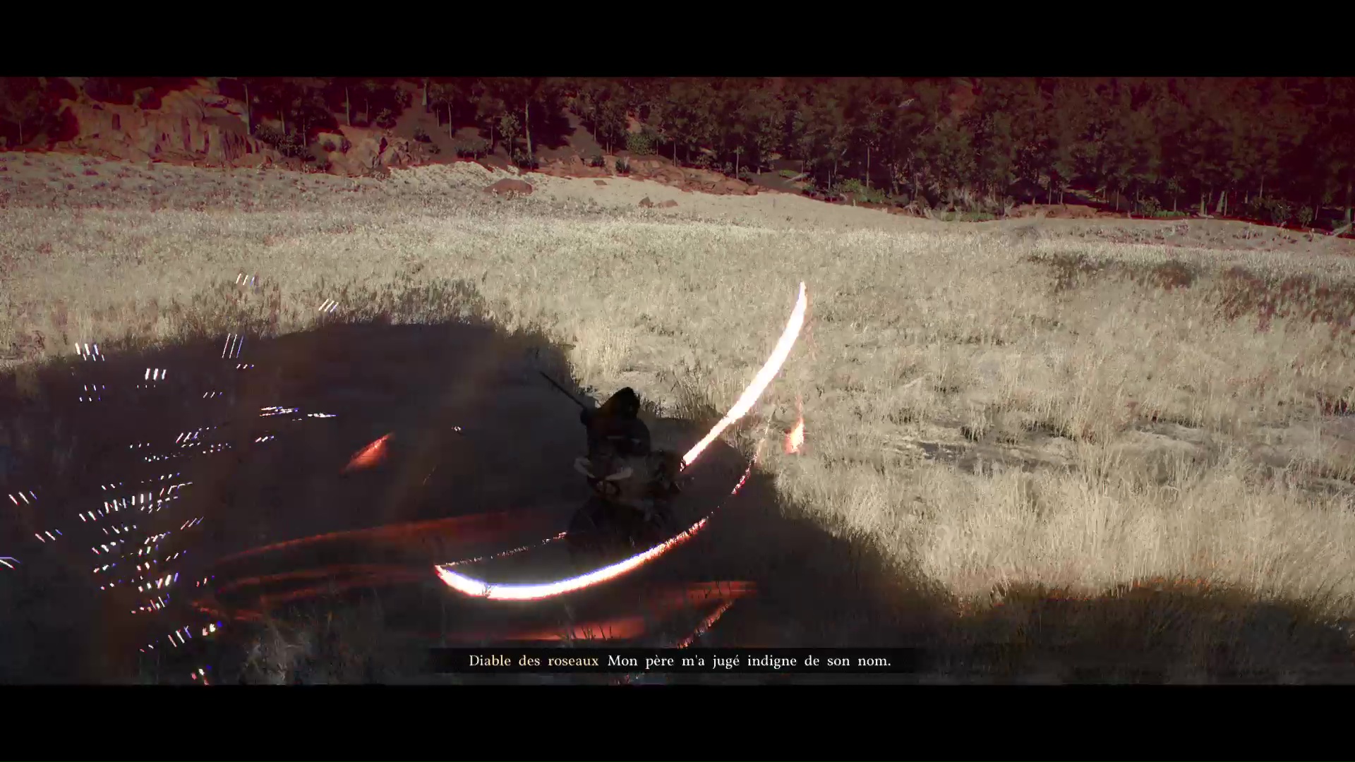 Concrètement, et comparé aux autres boss de l’histoire principale déjà vaincus, le Diable des roseaux porte très bien son nom. Il est vif, il se téléporte régulièrement en vous prenant dans le dos, et il possède un enchaînement d’attaques rapides dévastateurs. Il lui arrivera aussi de se mettre dans une posture de concentration avant d’effectuer une entaille à la vitesse de l’éclair.