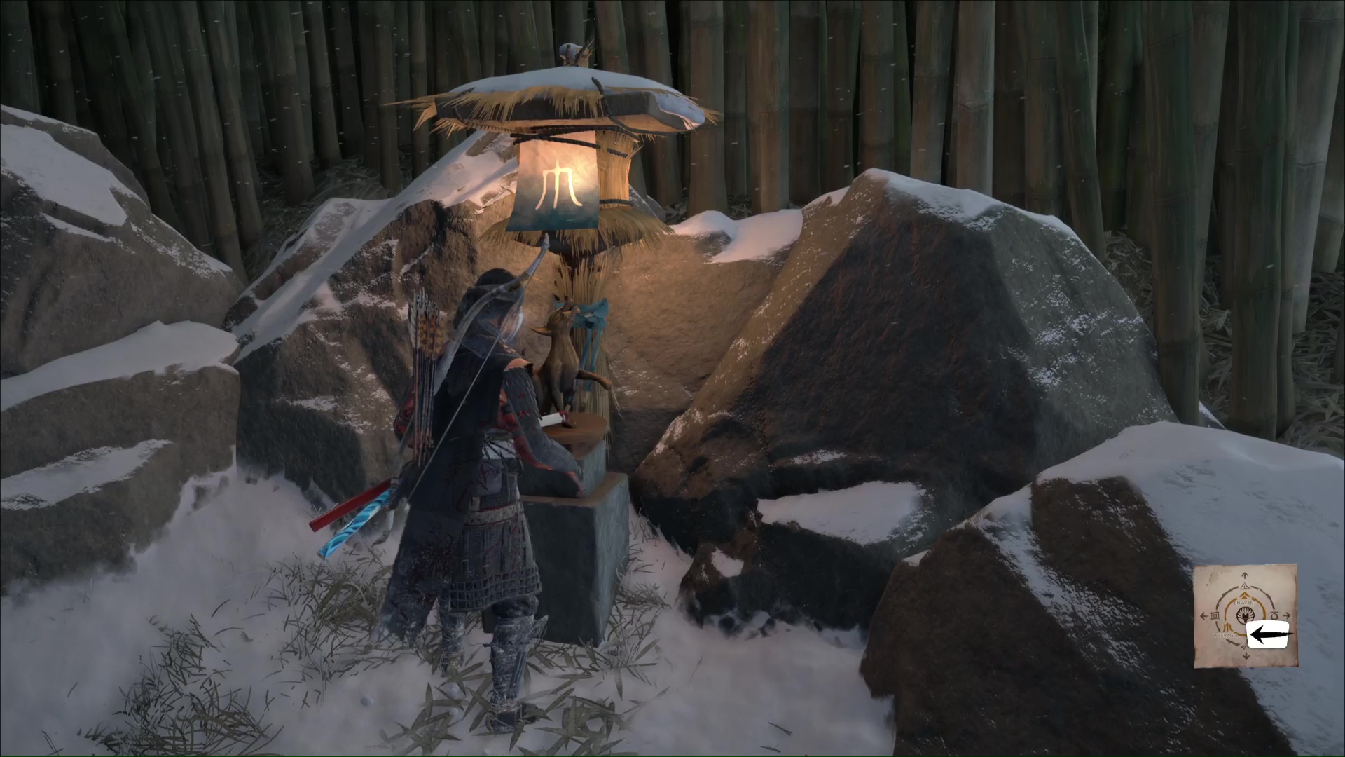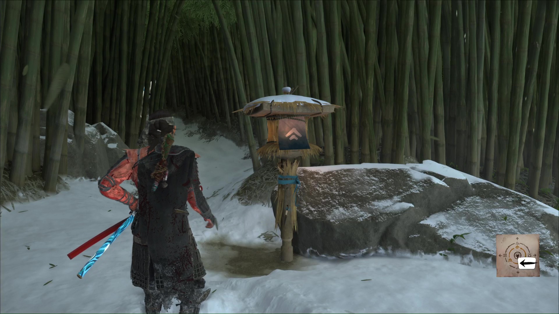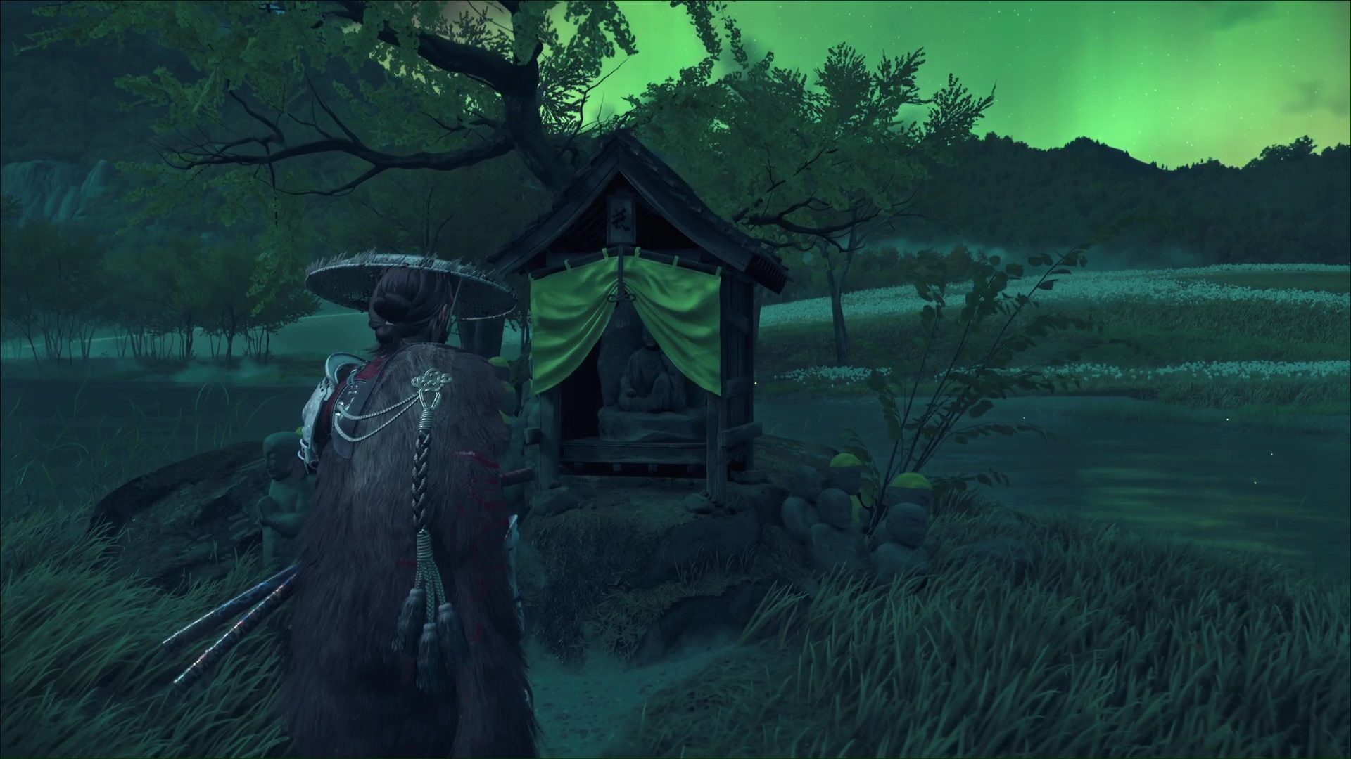 Cet autel de réflexion se trouve derrière une barrière de bambous destructible, à l’est de l’Auberge de l’ombre de Yōtei. Vous tomberez même automatiquement sur l’autel au cours du récit « Au cœur de la contemplation » après avoir accompagné le moine.