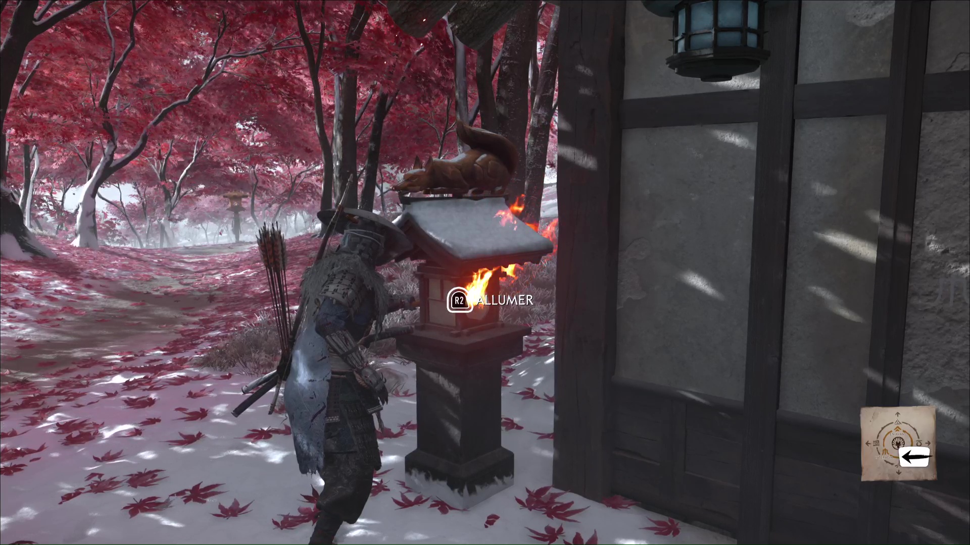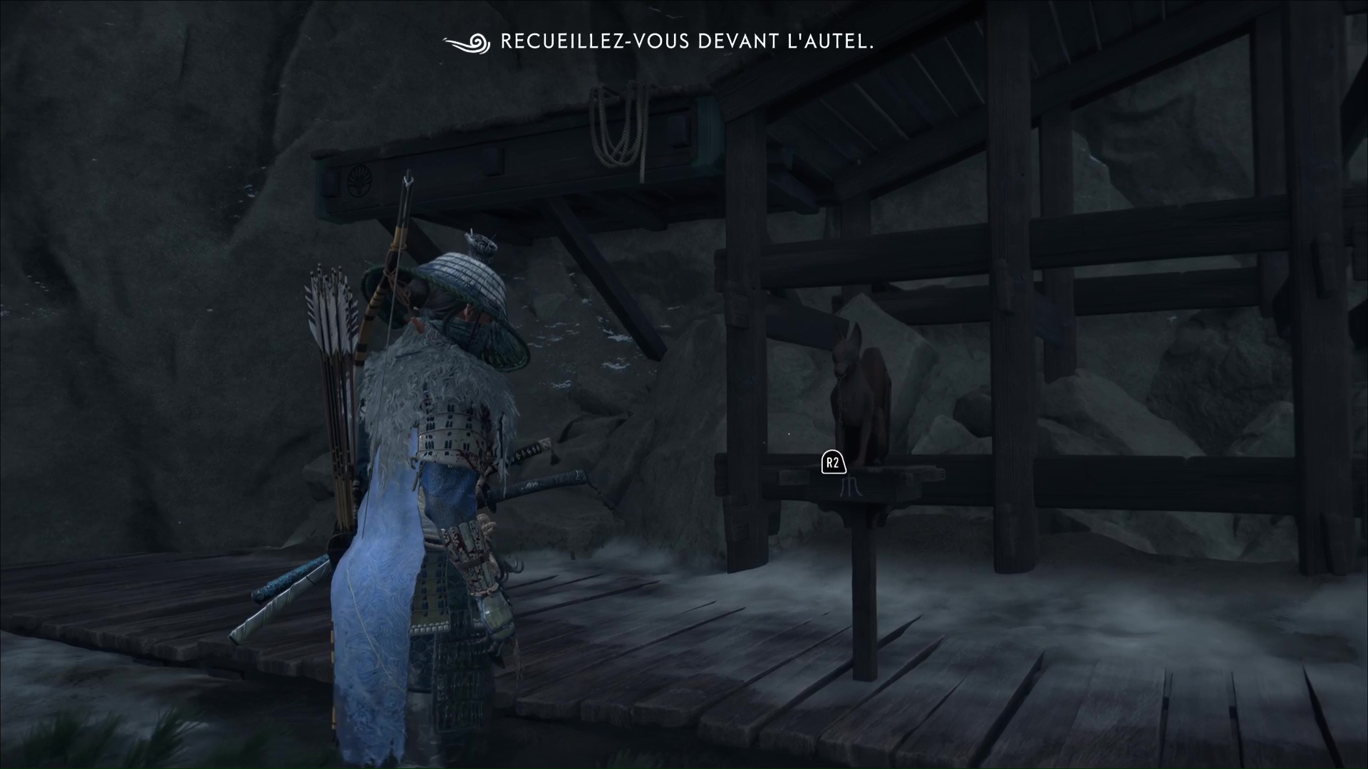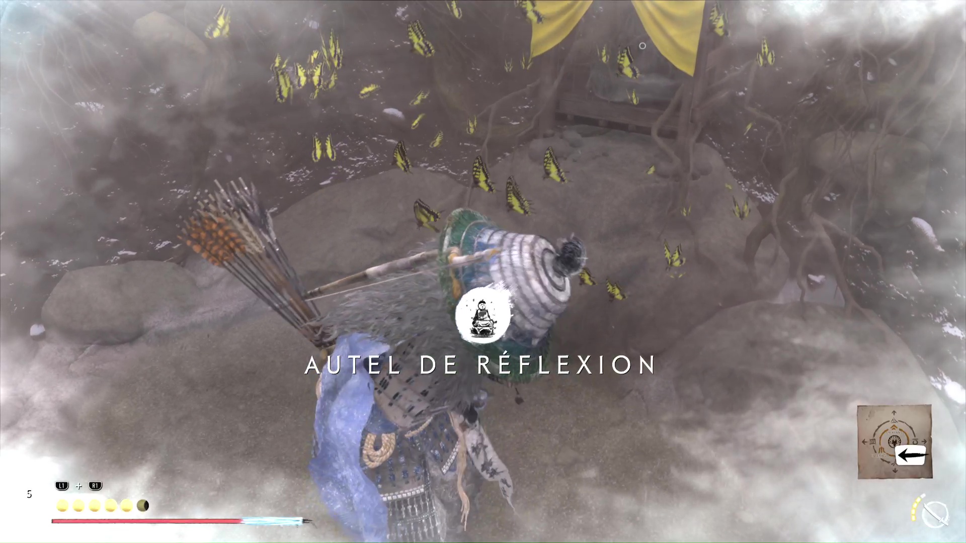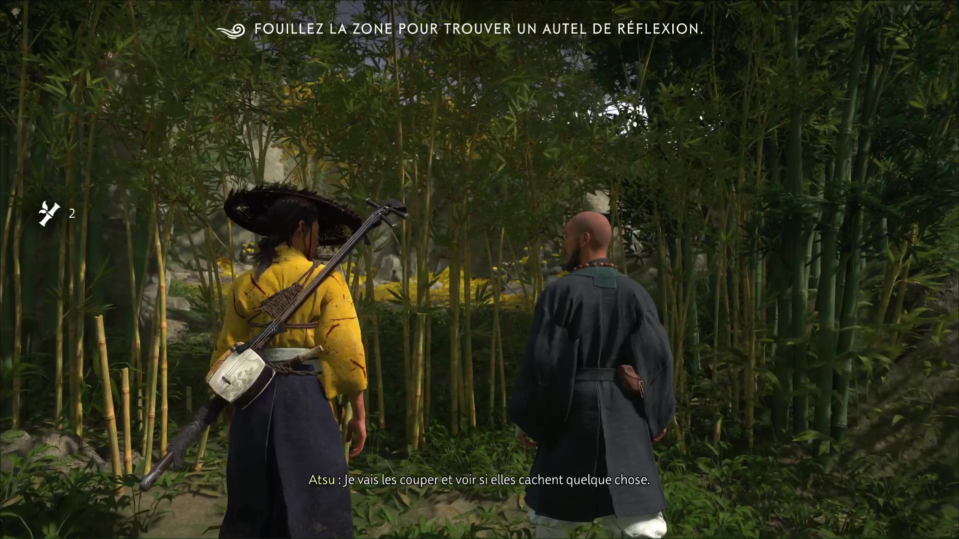 Cet autel de réflexion se trouve derrière une barrière de bambous destructible, à l’est de l’Auberge de l’ombre de Yōtei. Vous tomberez même automatiquement sur l’autel au cours du récit « Au cœur de la contemplation » après avoir accompagné le moine.