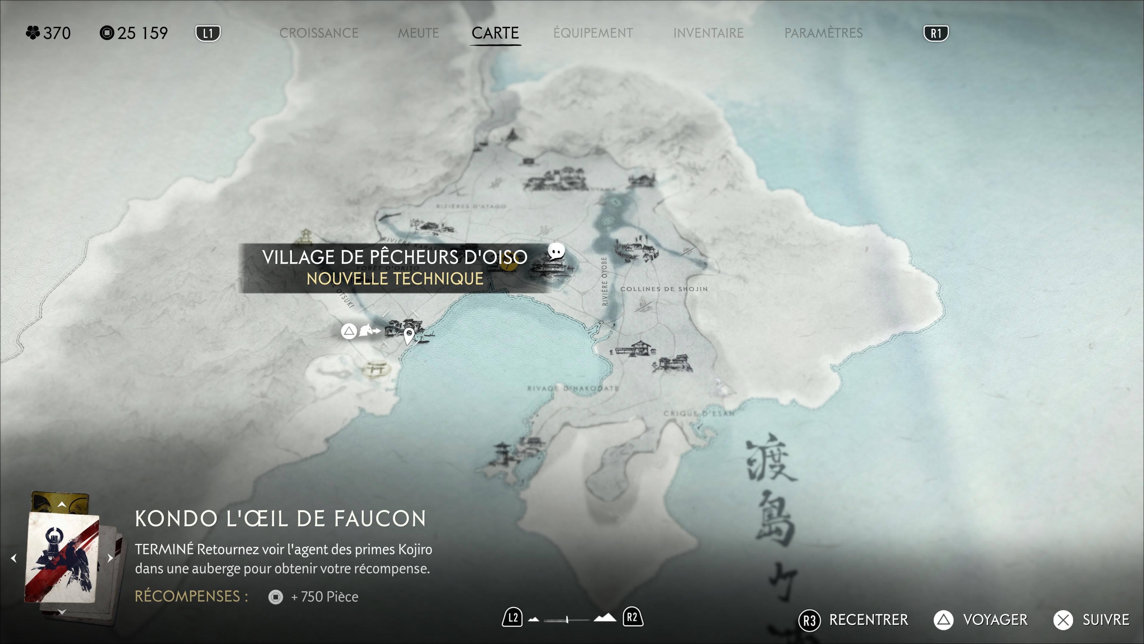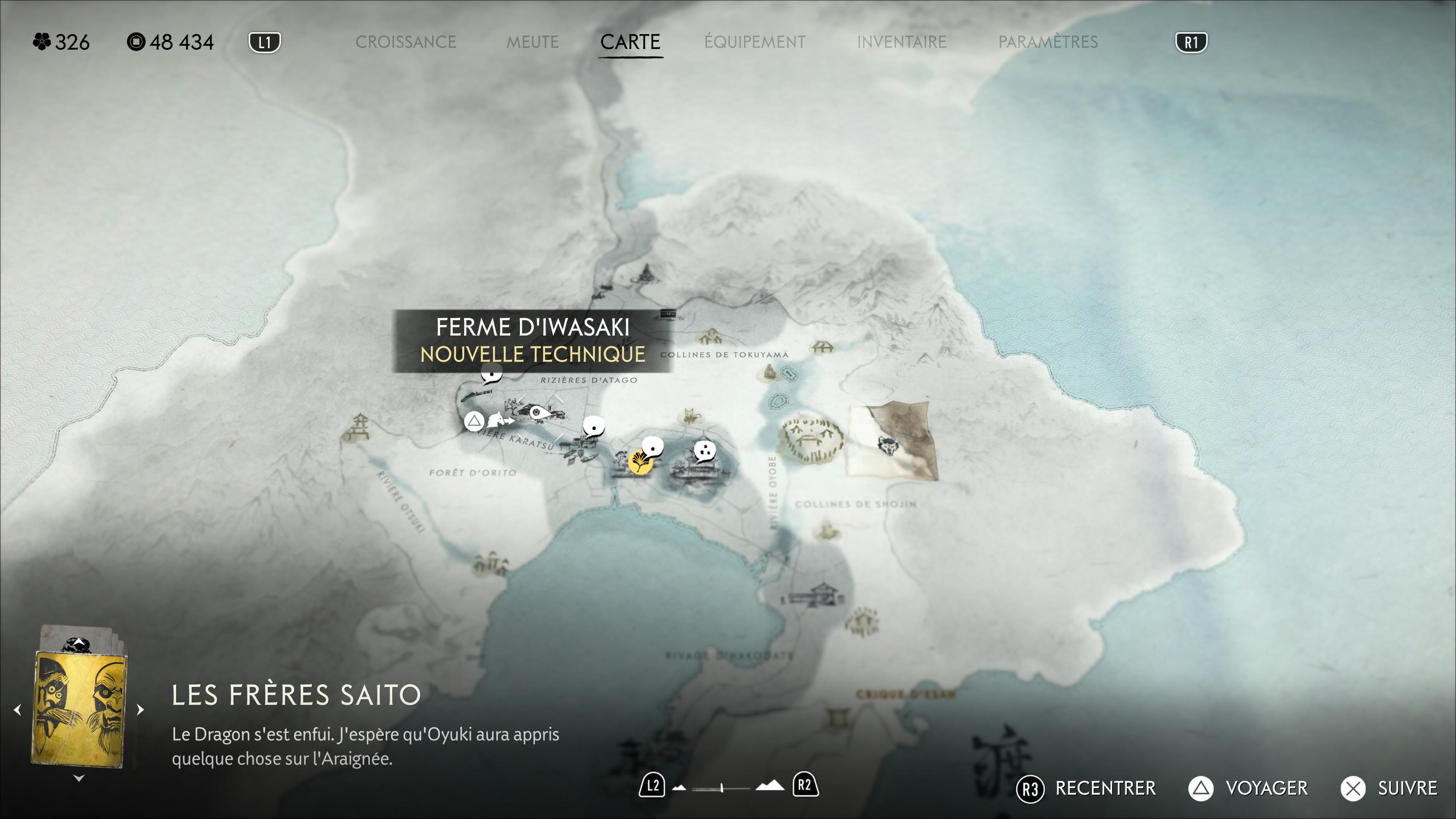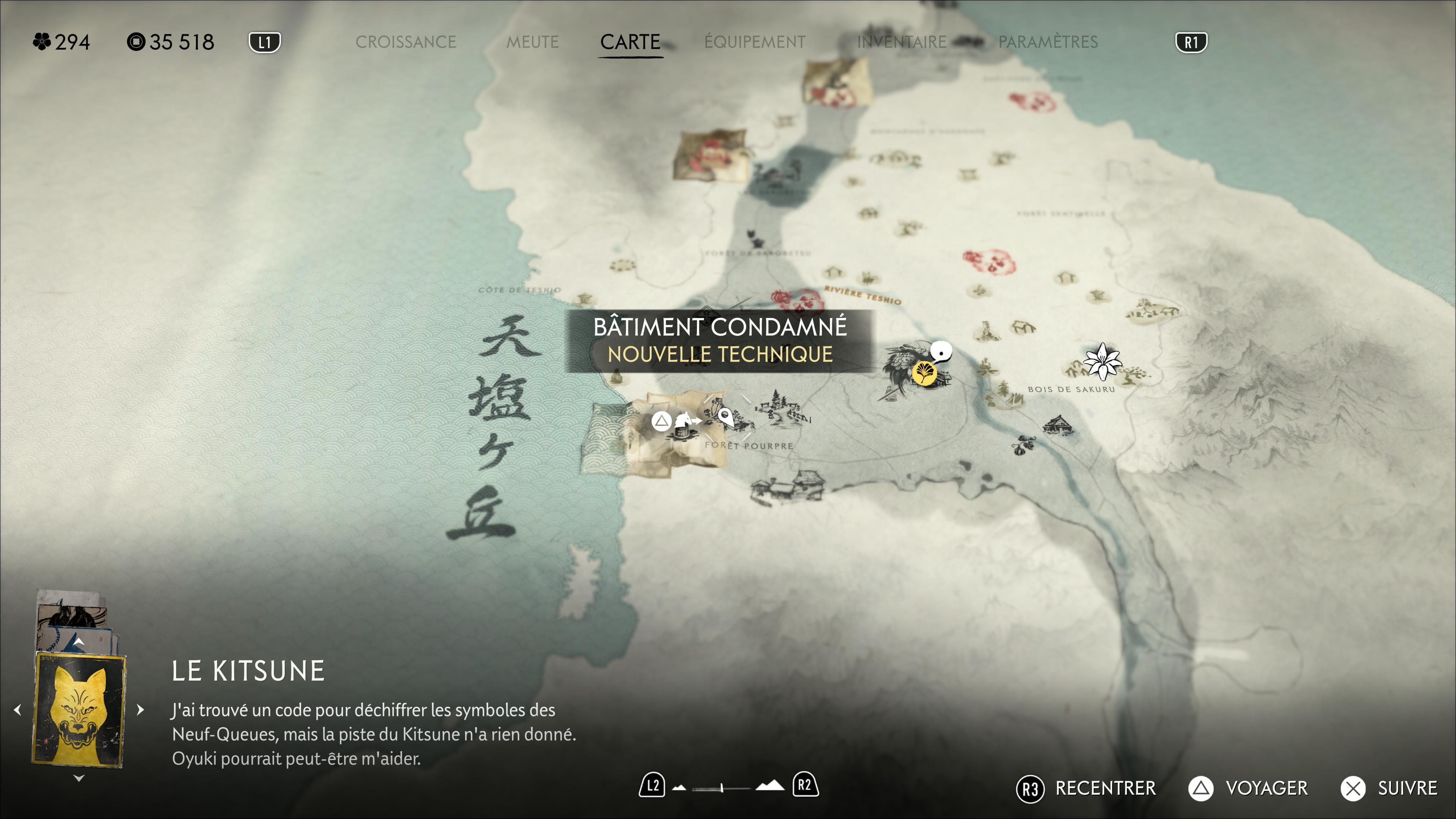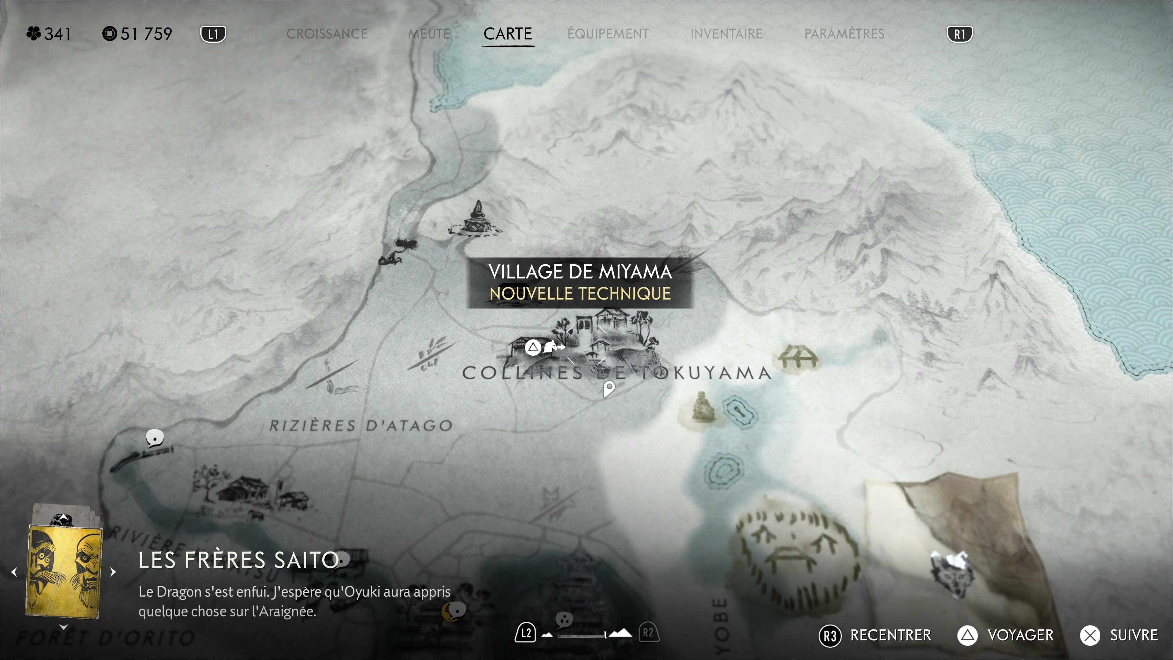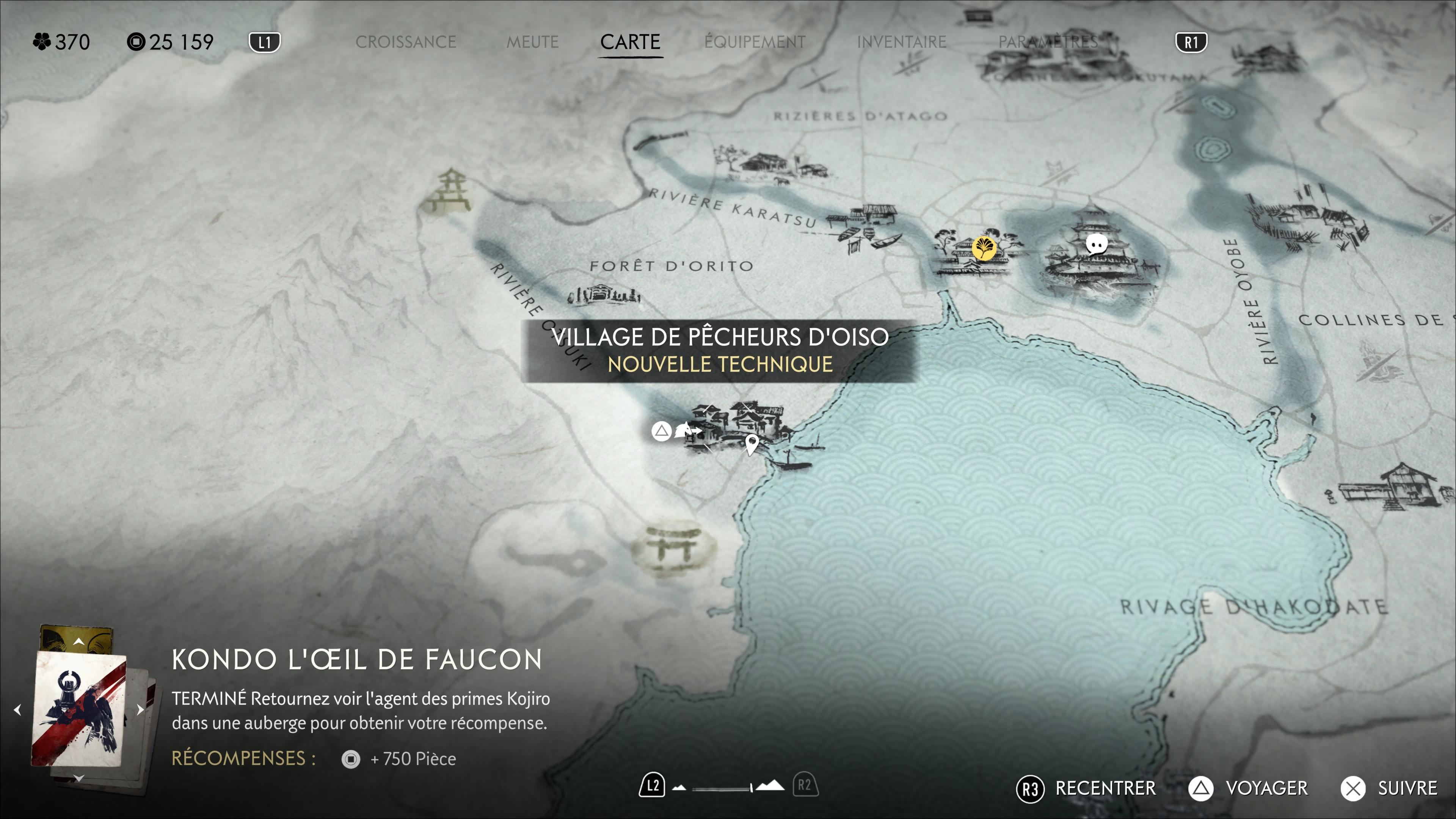 Cachés derrière une cascade, érigés au sommet d’une colline, ou bien en récompense d’un camp des Six de Yōtei libéré, les autels de réflexion sont nombreux et très utiles. À chaque fois que vous vous inclinez devant en glissant votre doigt vers le bas du pavé tactile de la DualSense, vous avez la possibilité de débloquer une compétence de votre choix.