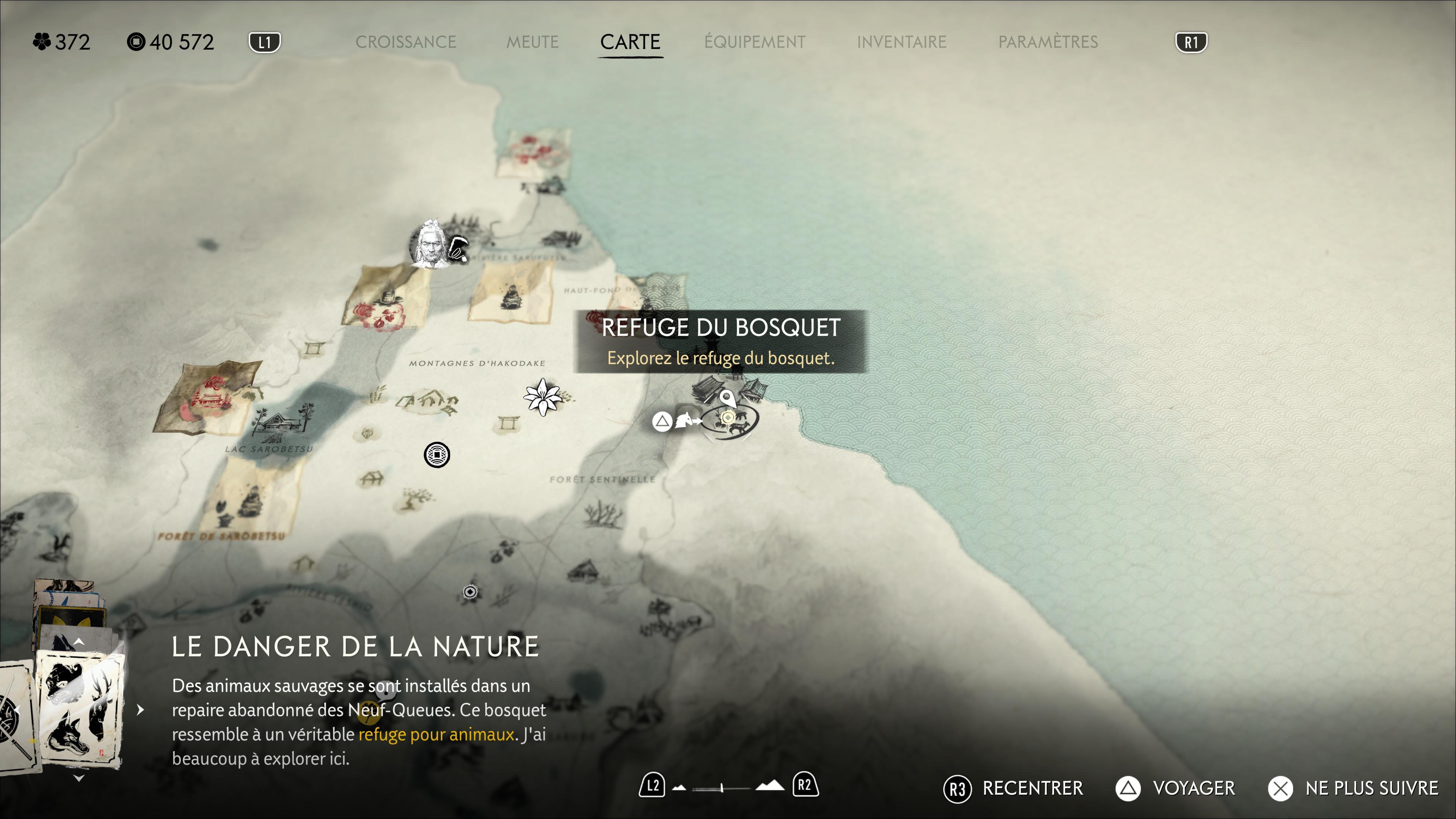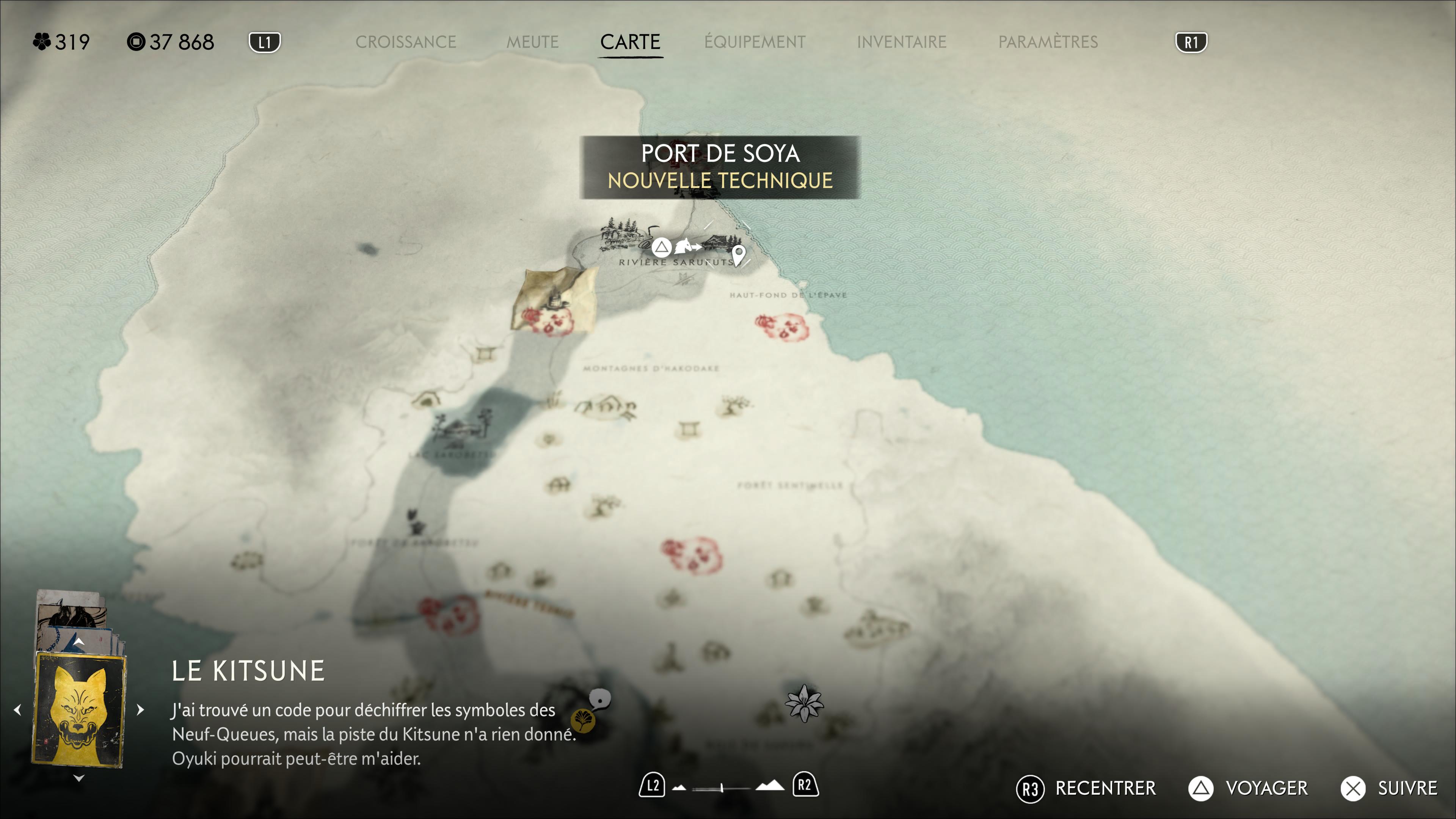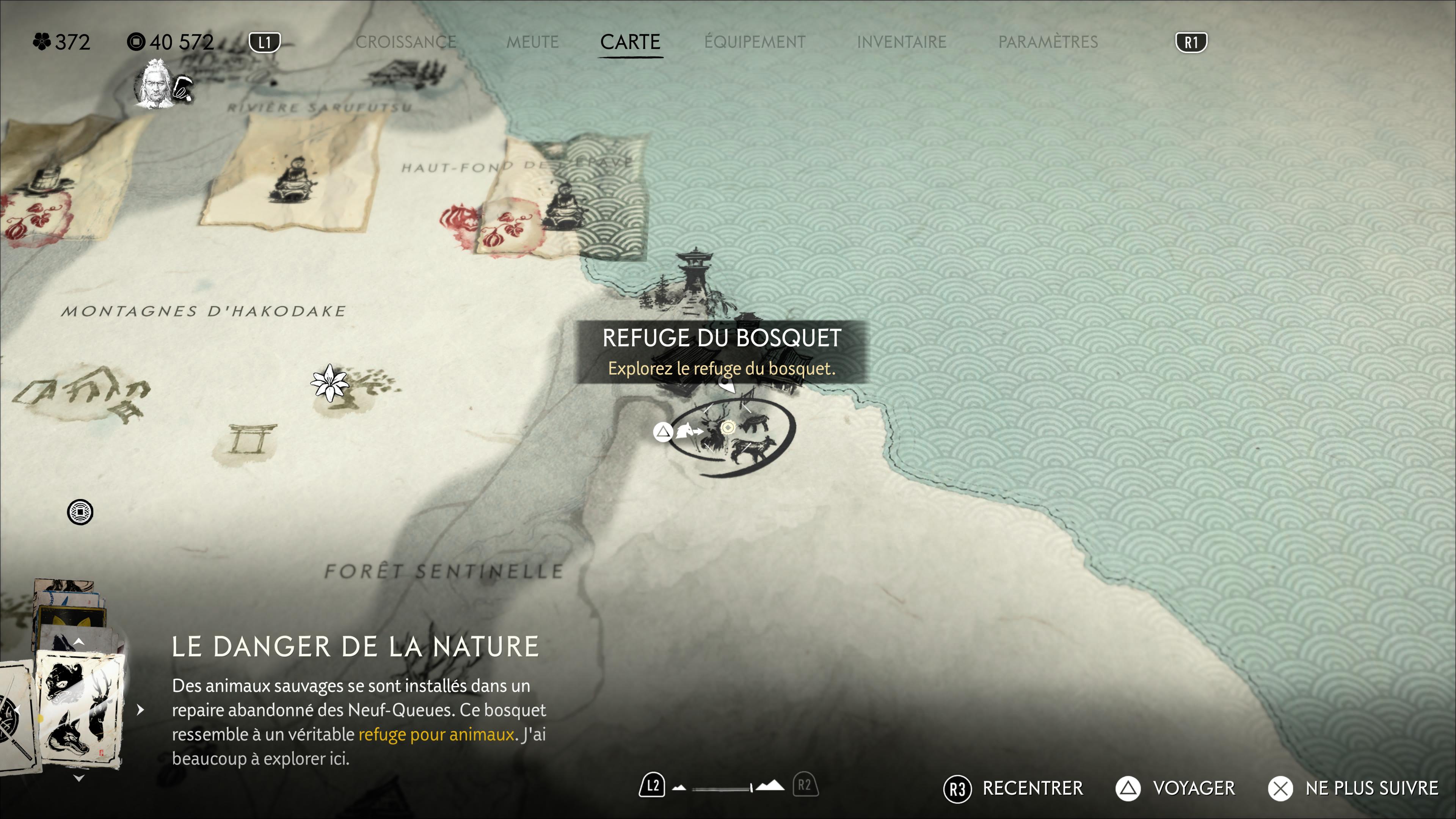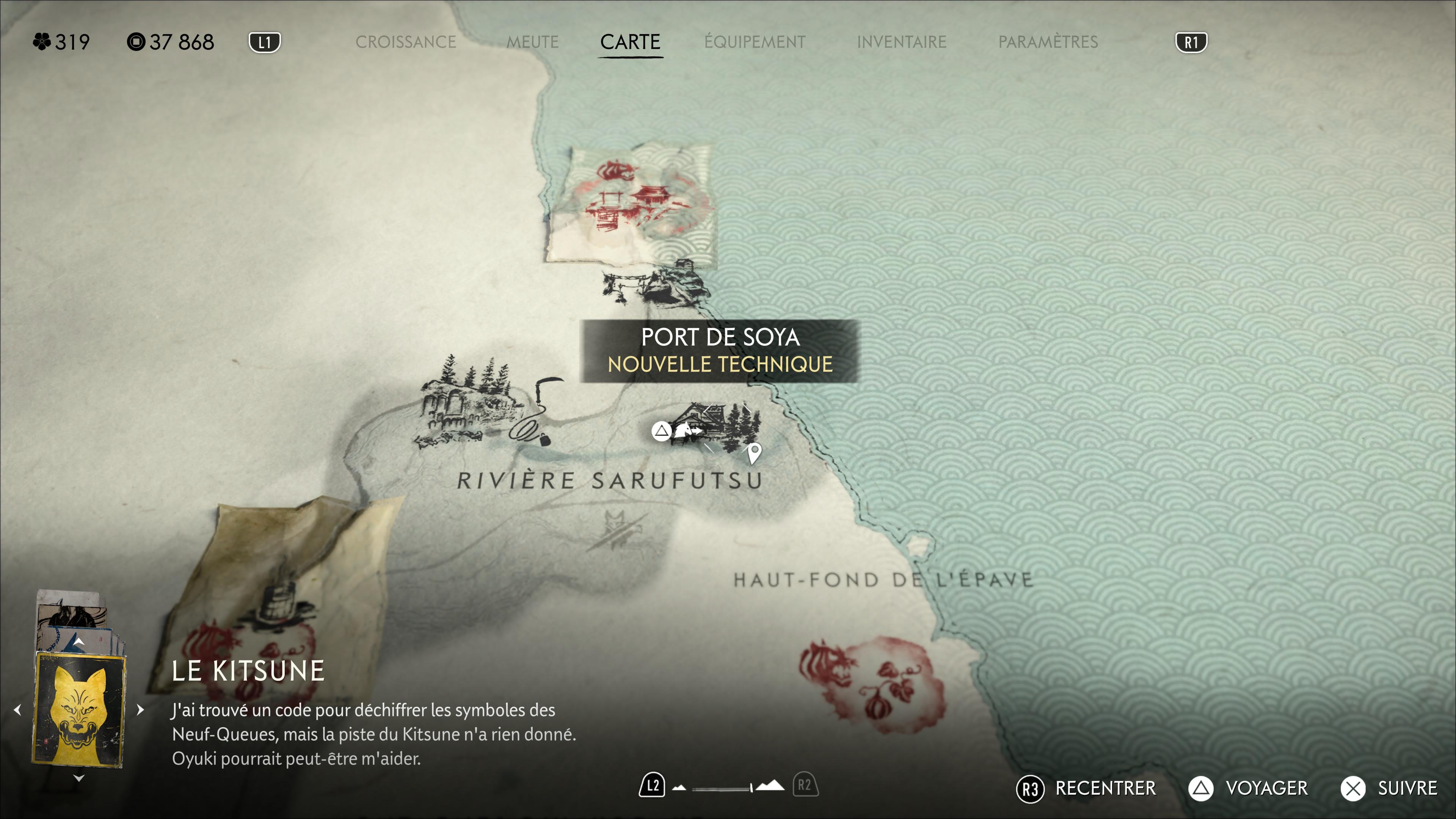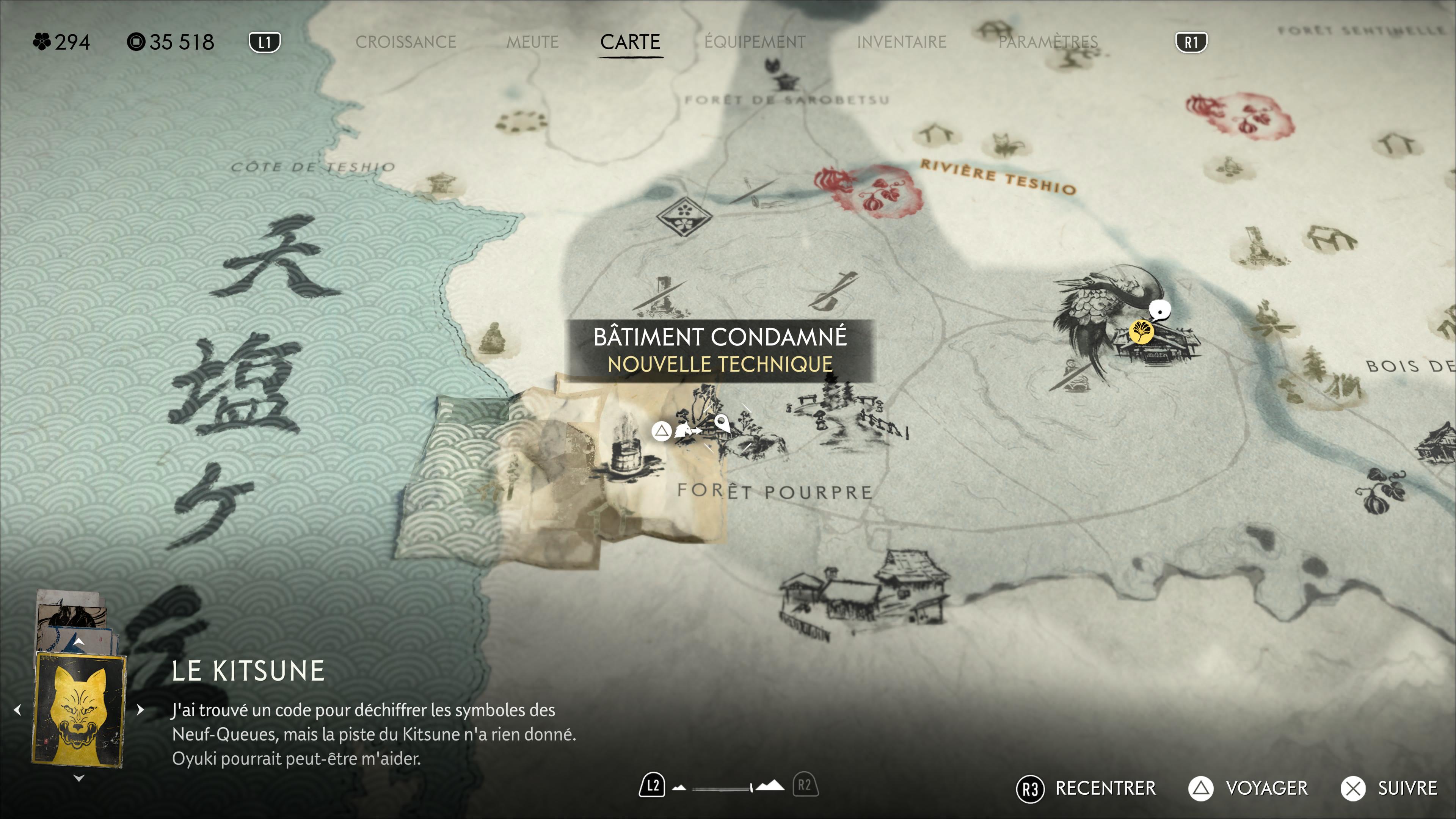 Cachés derrière une cascade, érigés au sommet d’une colline, ou bien en récompense d’un camp des Six de Yōtei libéré, les autels de réflexion sont nombreux et très utiles. À chaque fois que vous vous inclinez devant en glissant votre doigt vers le bas du pavé tactile de la DualSense, vous avez la possibilité de débloquer une compétence de votre choix.