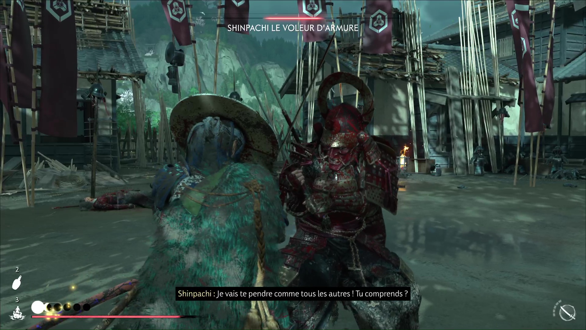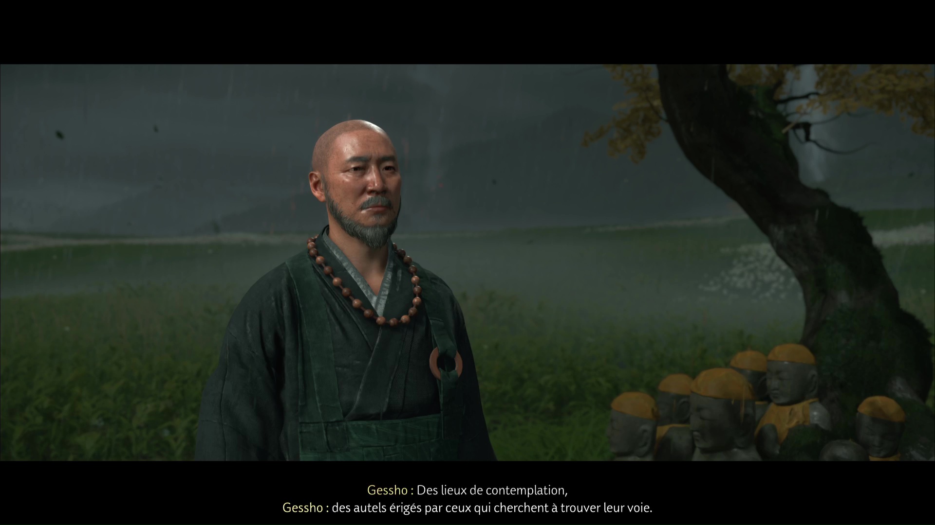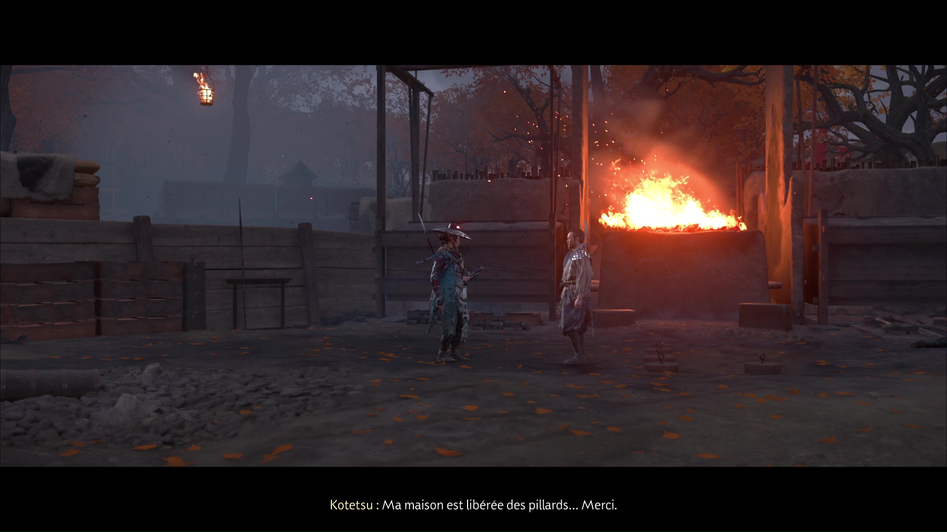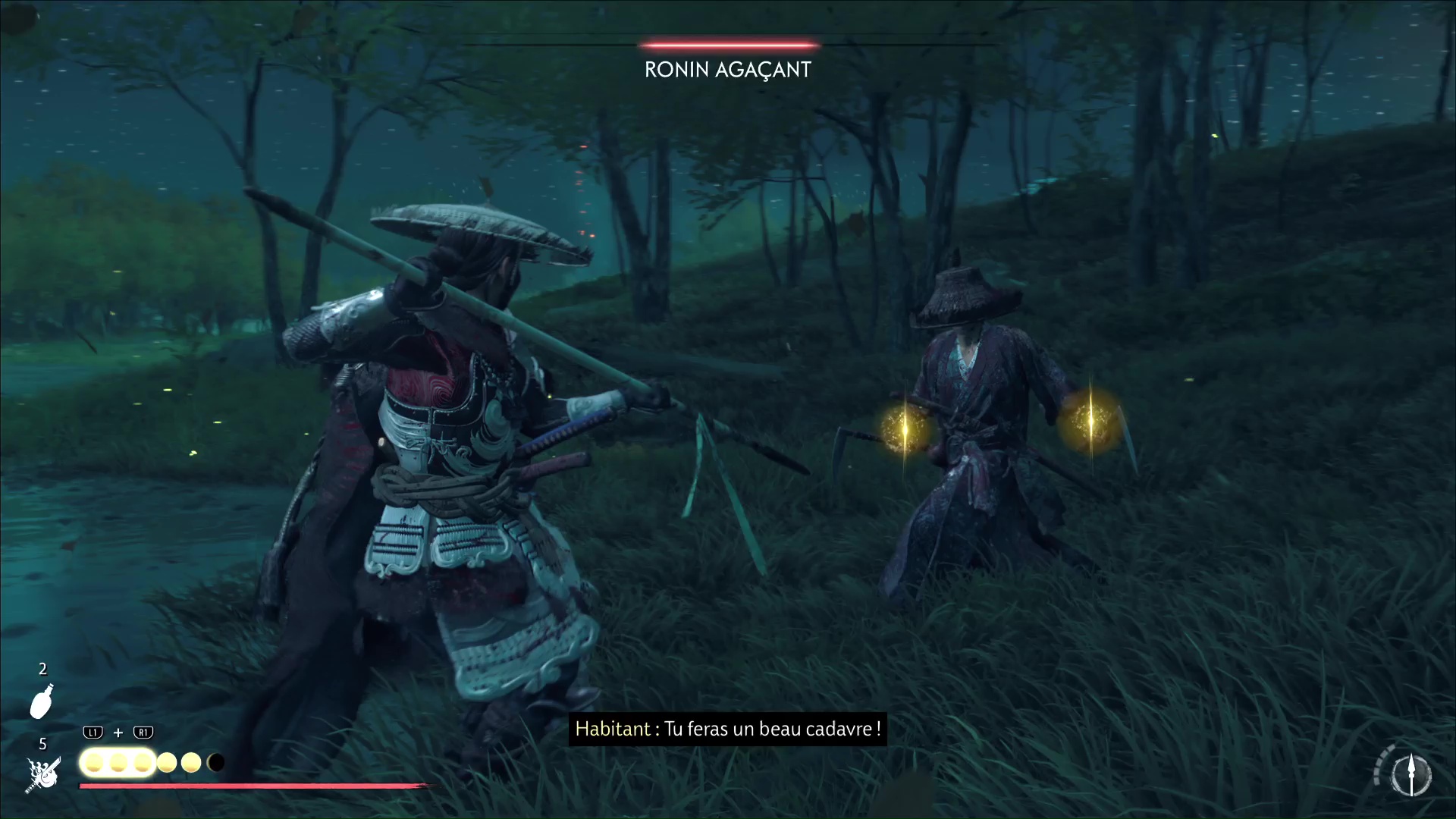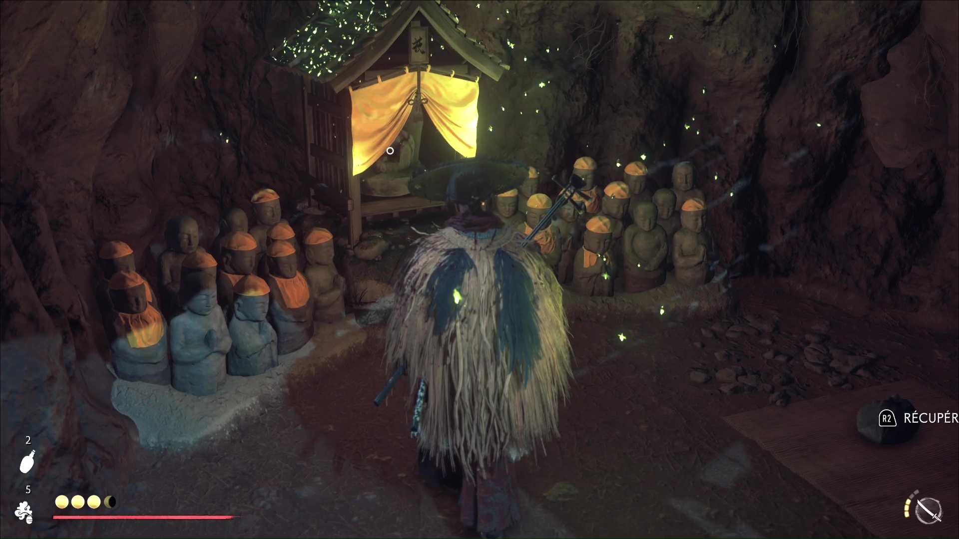Parlez-lui et vous comprendrez assez rapidement qu’il veut se mesurer à vous. Acceptez le duel. L’adversaire n’est pas spécialement dangereux, mais il se bat notamment avec une double faucille, donc attention à des enchaînements rapides. Une fois le ronin terrassé, vous pouvez priez et récupérez le point de compétence.