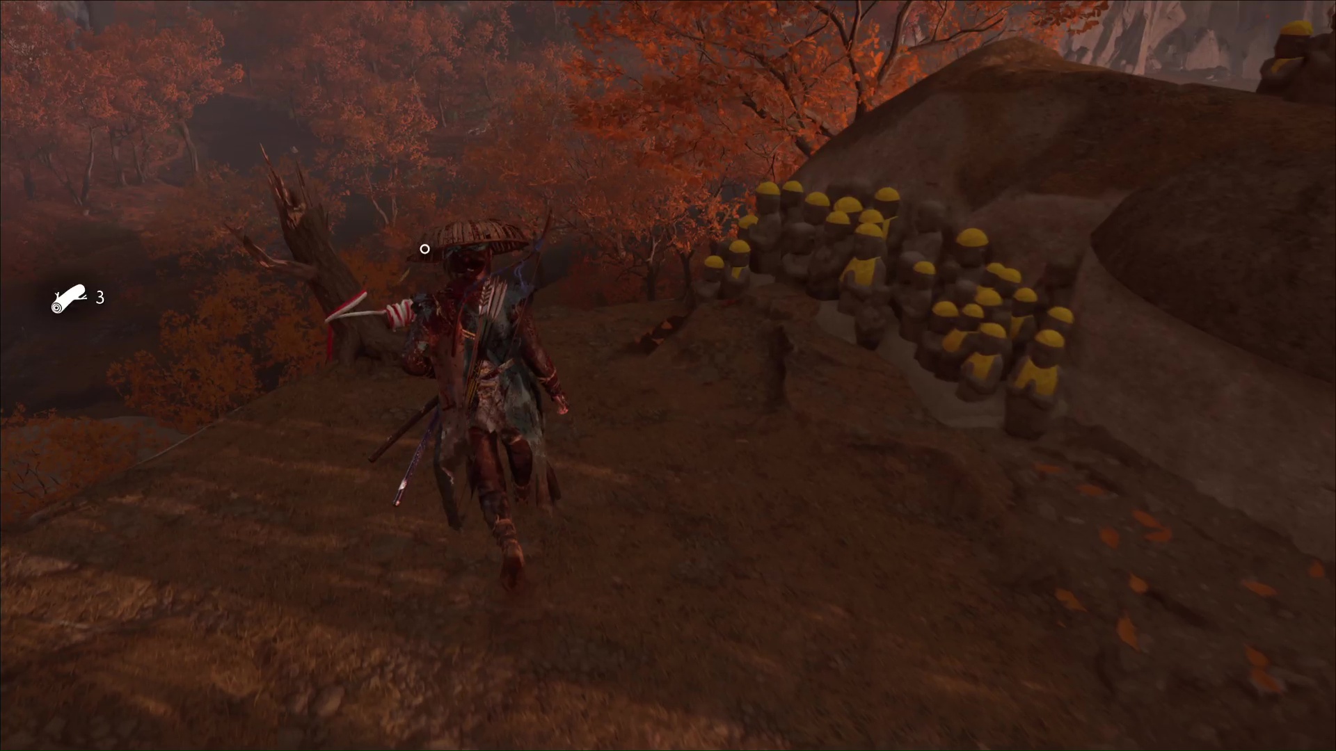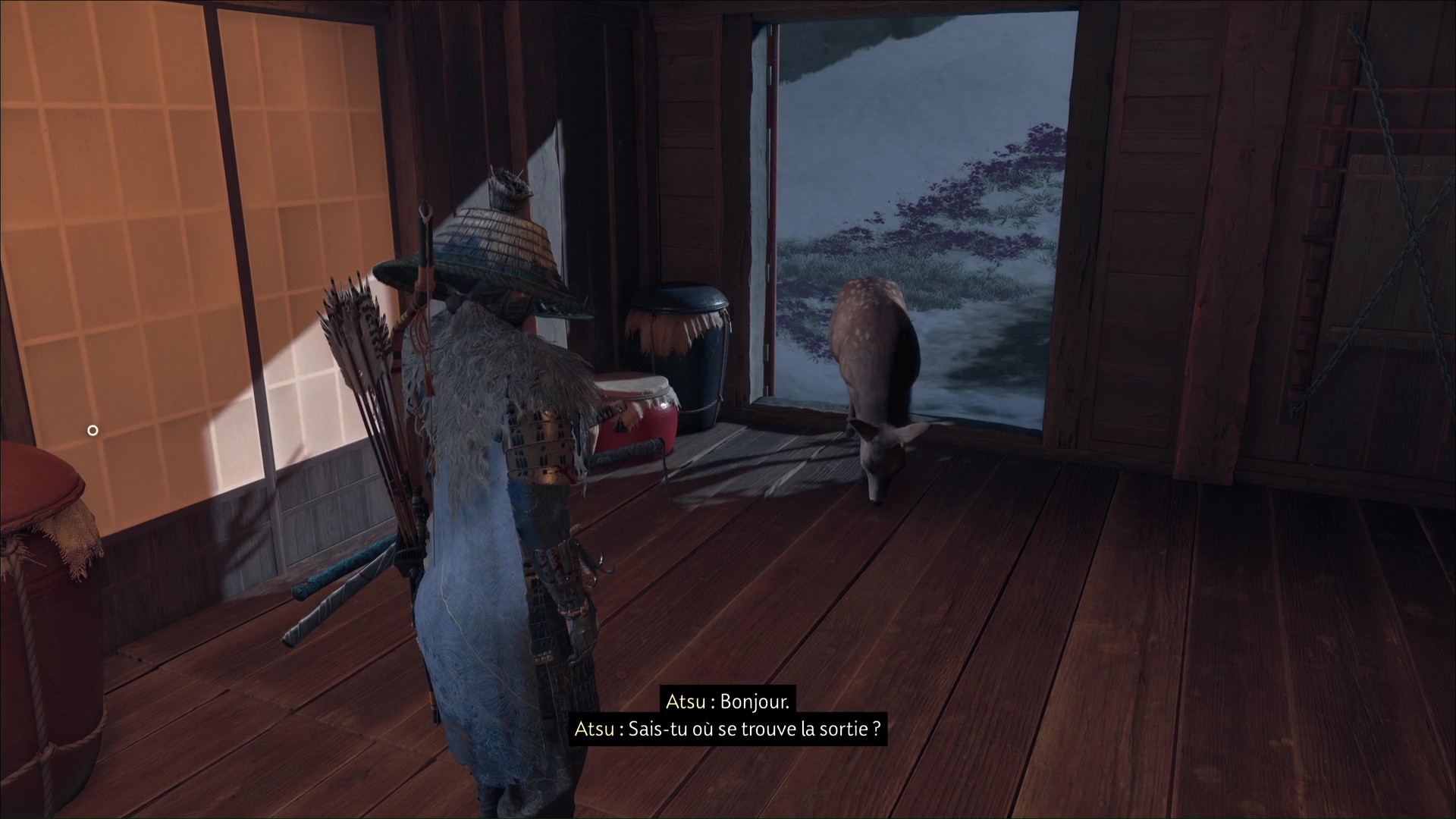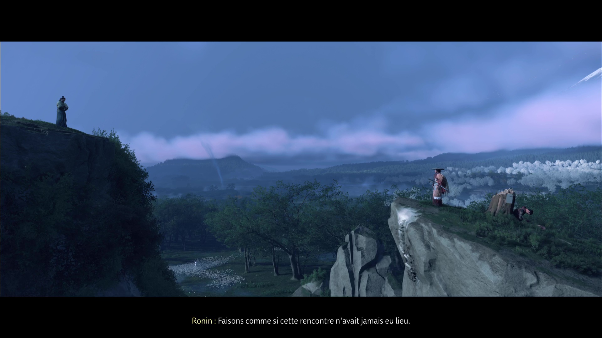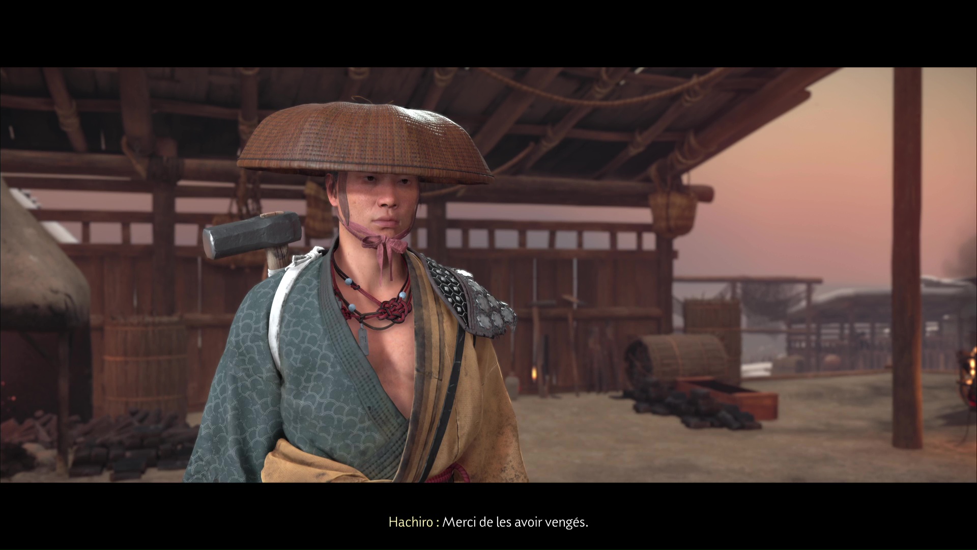 Parlez-lui et vous comprendrez assez rapidement qu’il veut se mesurer à vous. Acceptez le duel. L’adversaire n’est pas spécialement dangereux, mais il se bat notamment avec une double faucille, donc attention à des enchaînements rapides. Une fois le ronin terrassé, vous pouvez priez et récupérez le point de compétence.