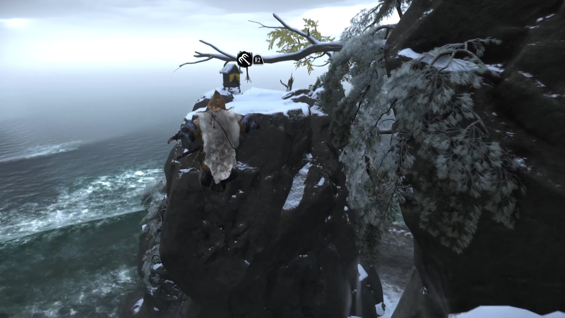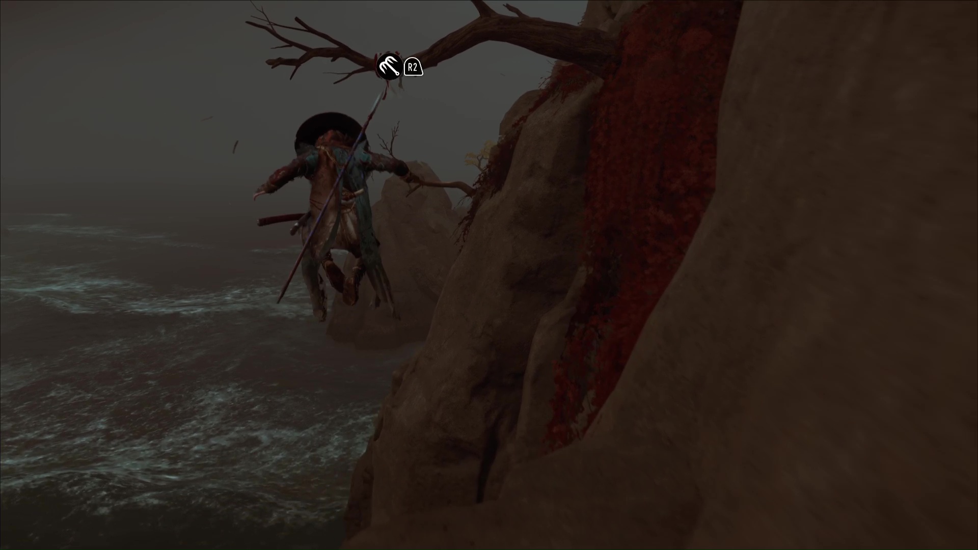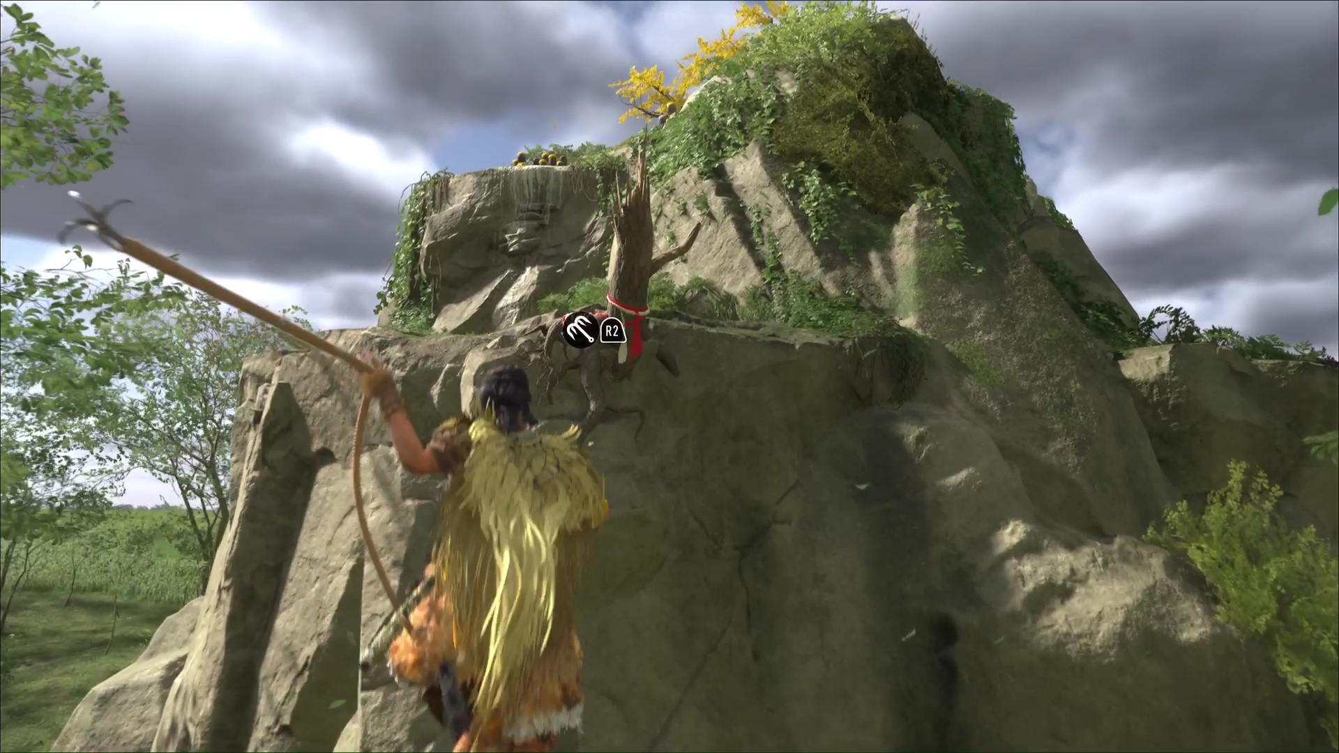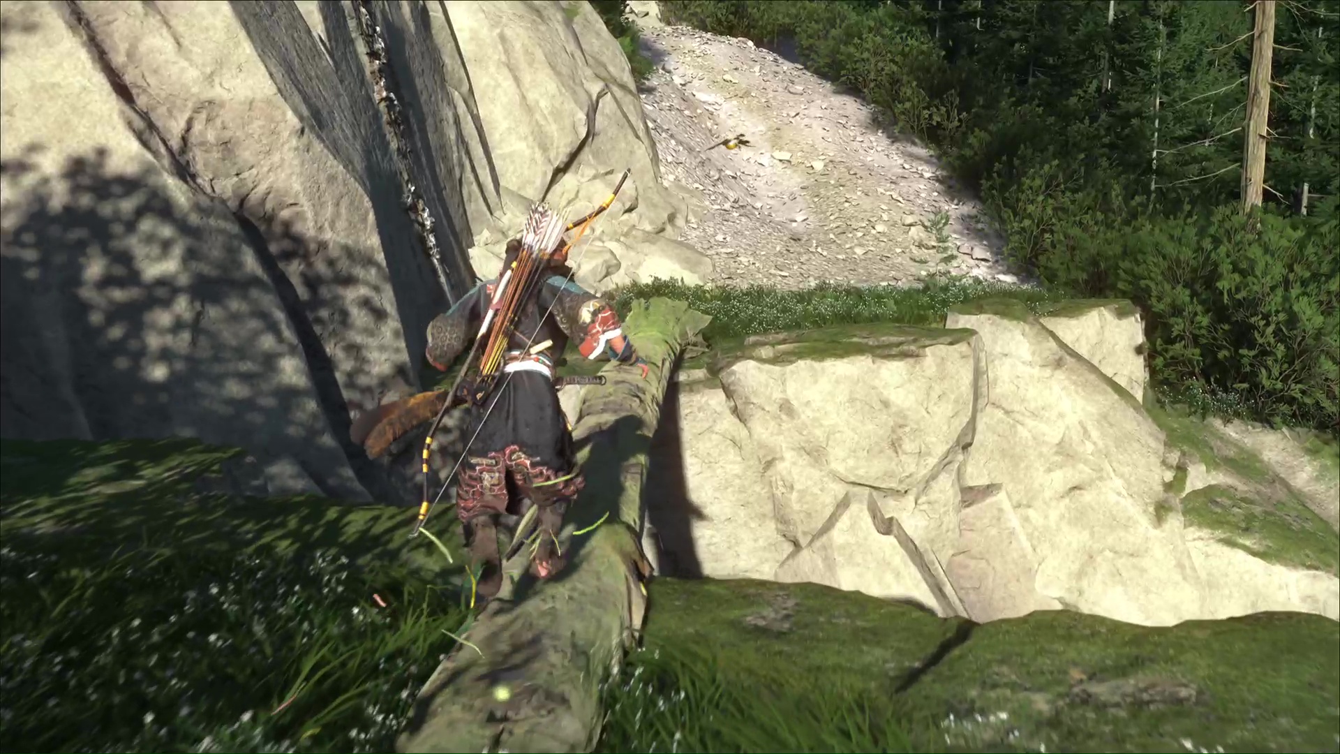 Commencez par chercher un rocher sur lequel vous pouvez monter, et au sommet duquel repose un cadavre. En haut, tournez la tête pour voir que vous pouvez vous accrocher au grappin à une branche. Faites-le pour rejoindre les prises en face.