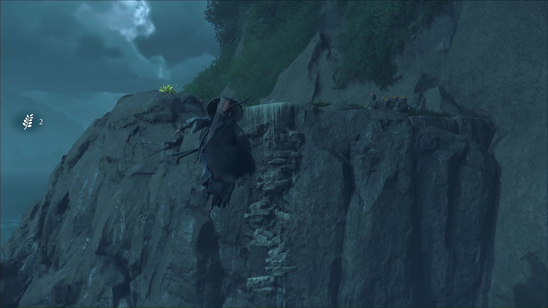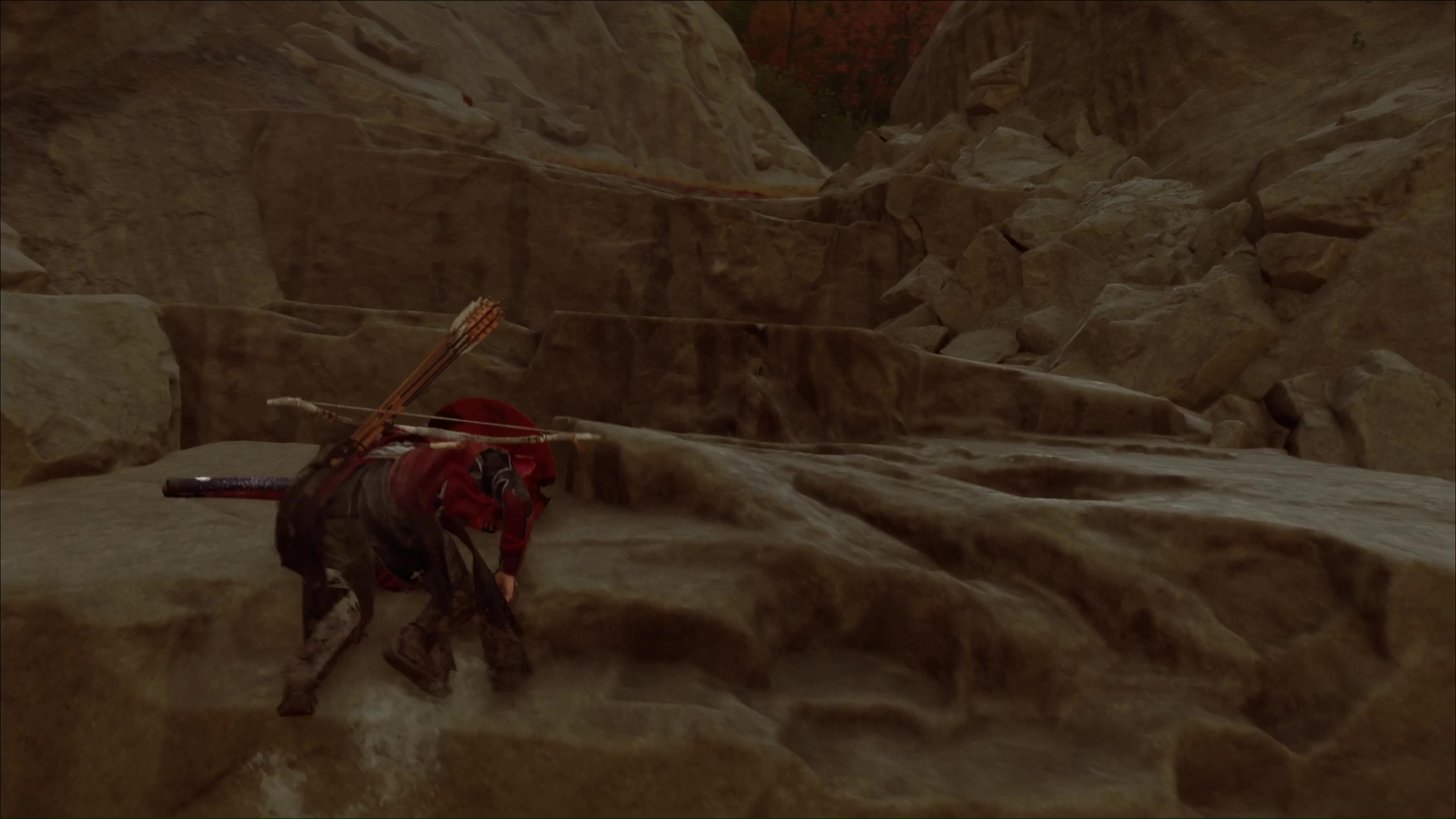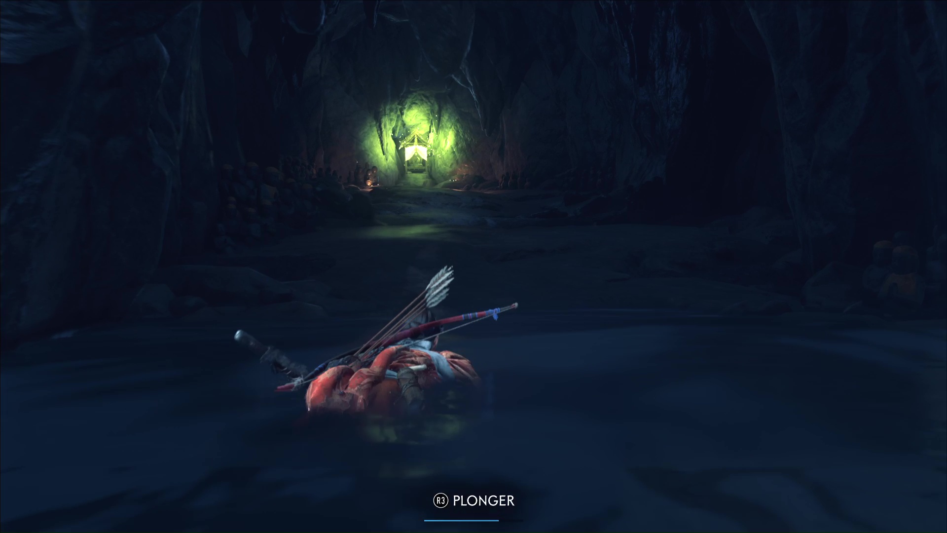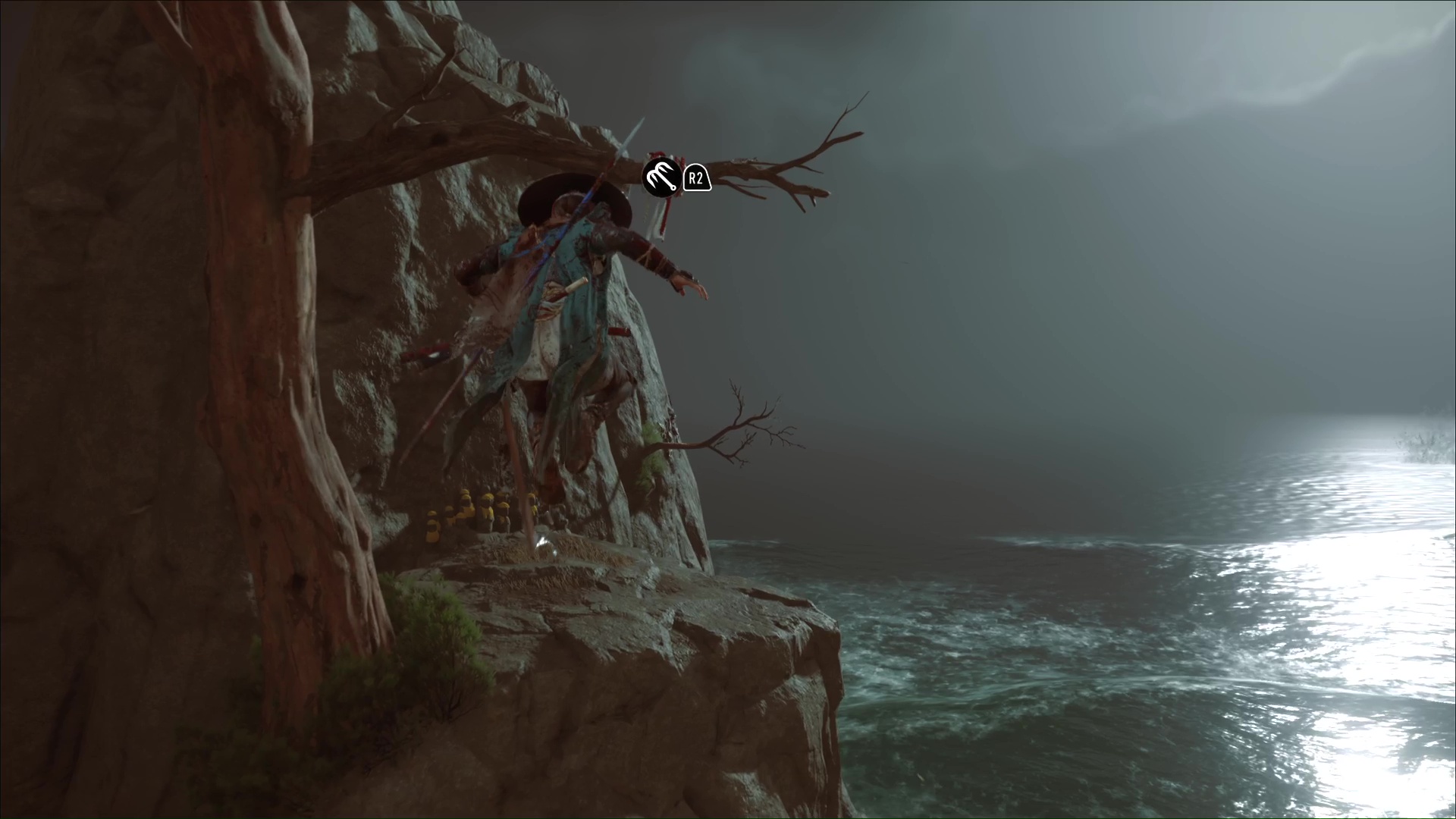 Commencez par chercher un rocher sur lequel vous pouvez monter, et au sommet duquel repose un cadavre. En haut, tournez la tête pour voir que vous pouvez vous accrocher au grappin à une branche. Faites-le pour rejoindre les prises en face.