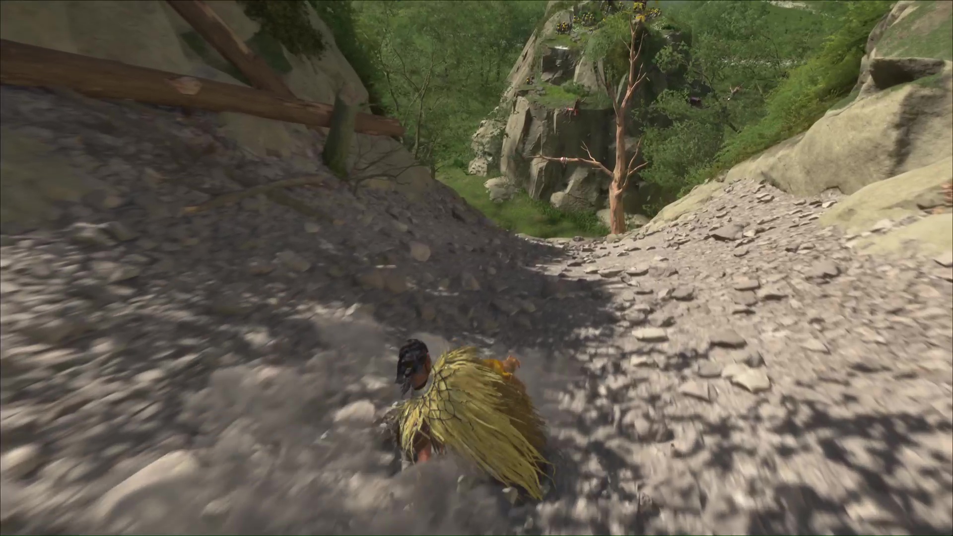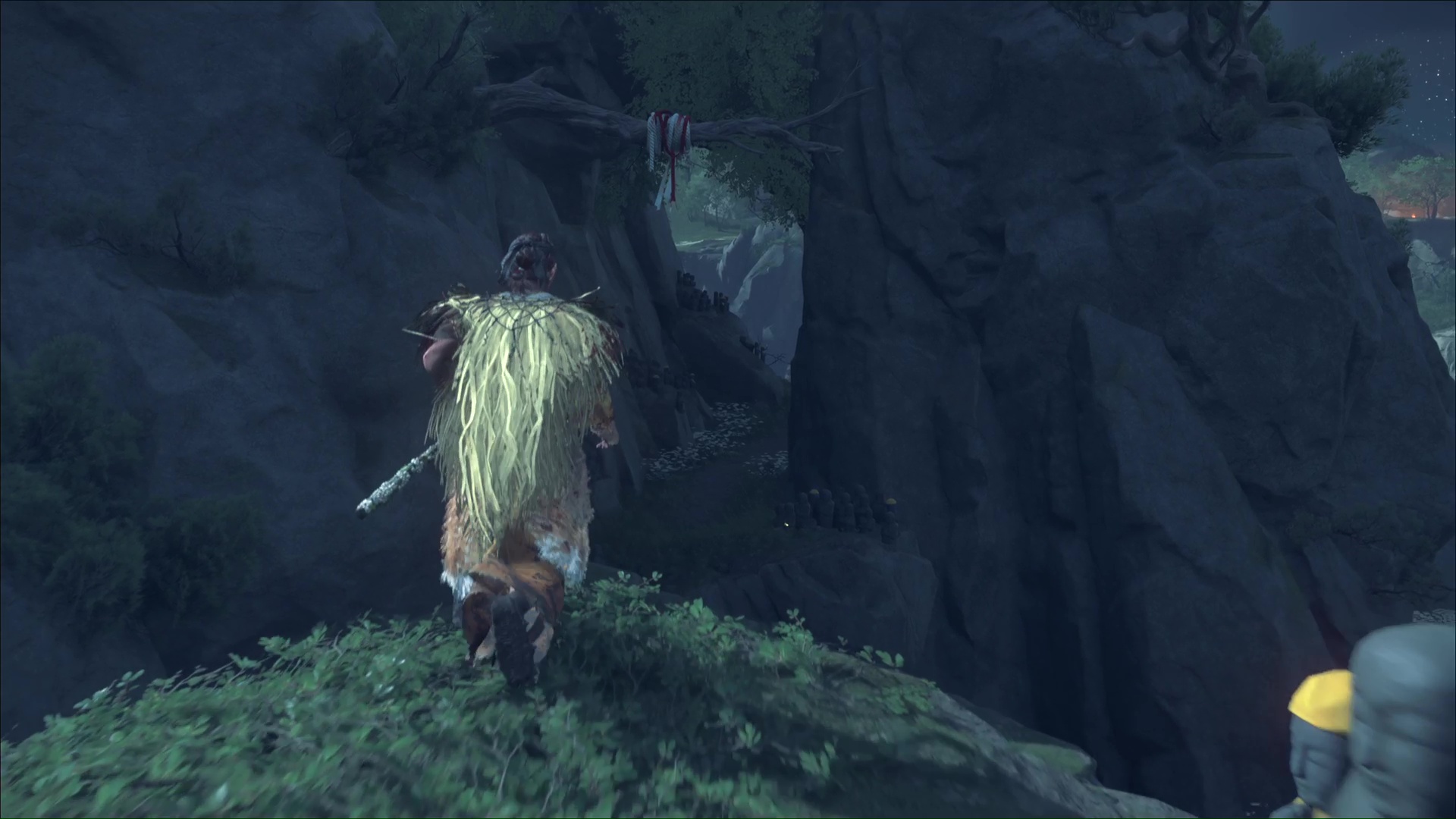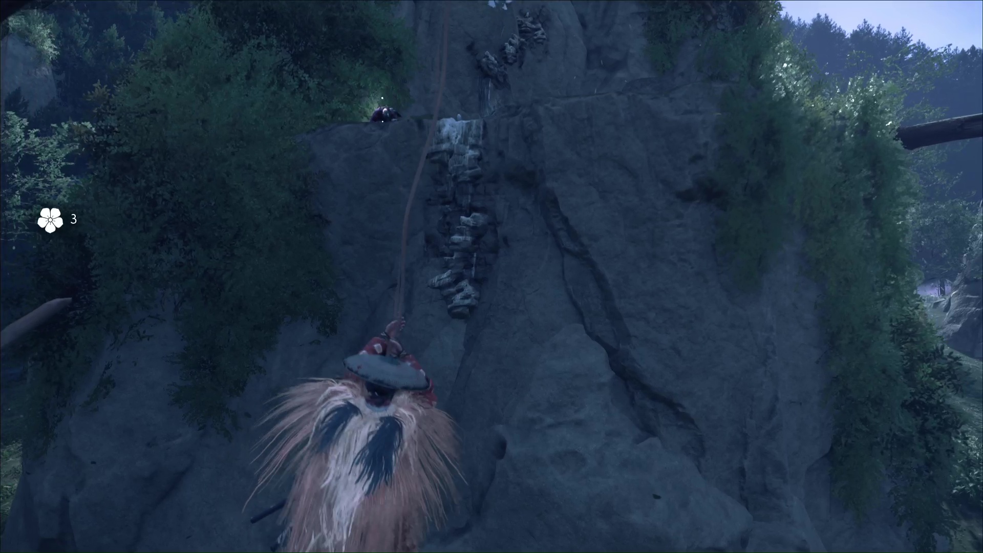 En haut, franchissez le pont offert par un tronc couché et escaladez encore un peu. Enfin, hissez-vous à une souche grâce au grappin pour finalement arriver auprès de l’autel.
