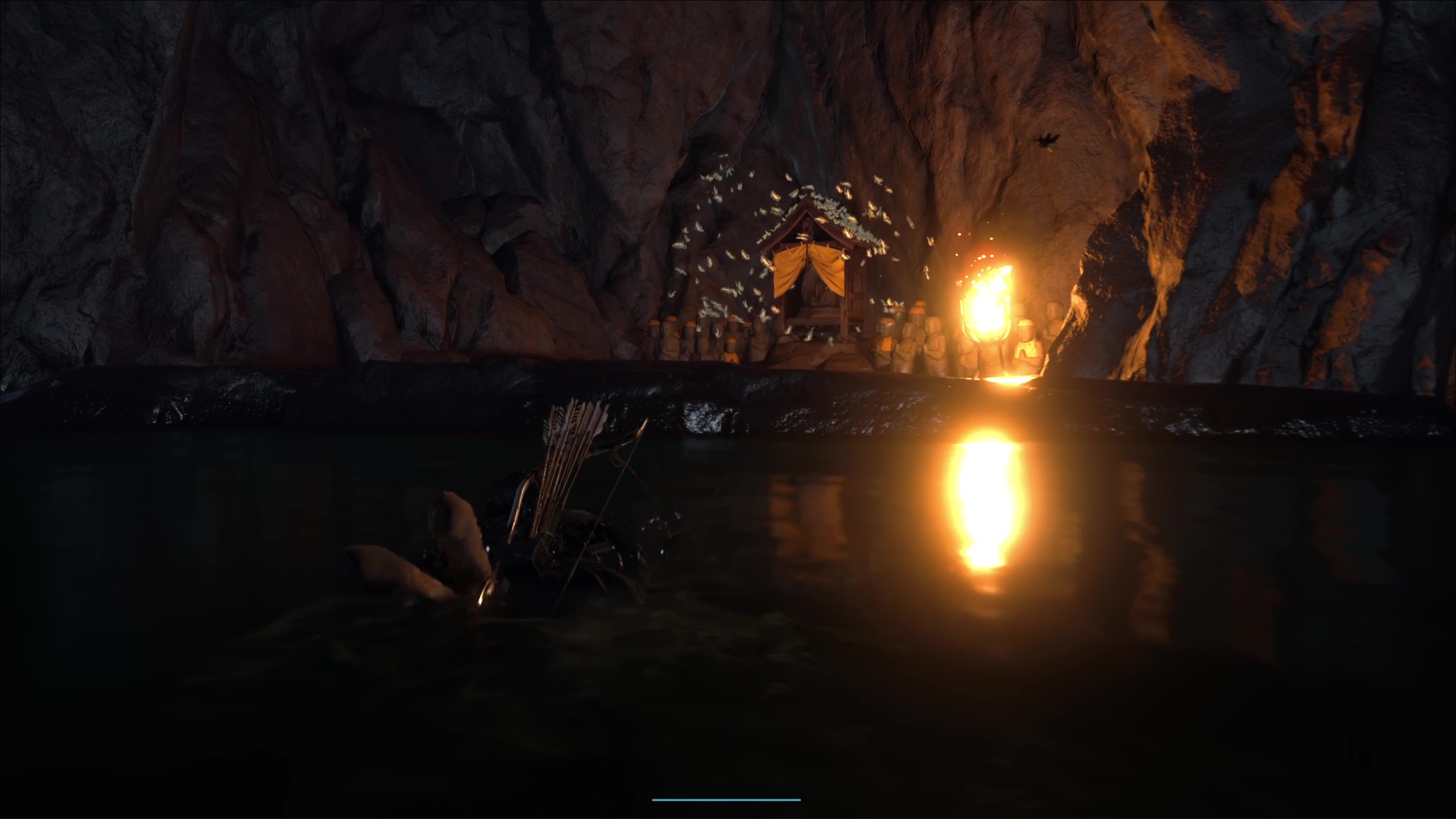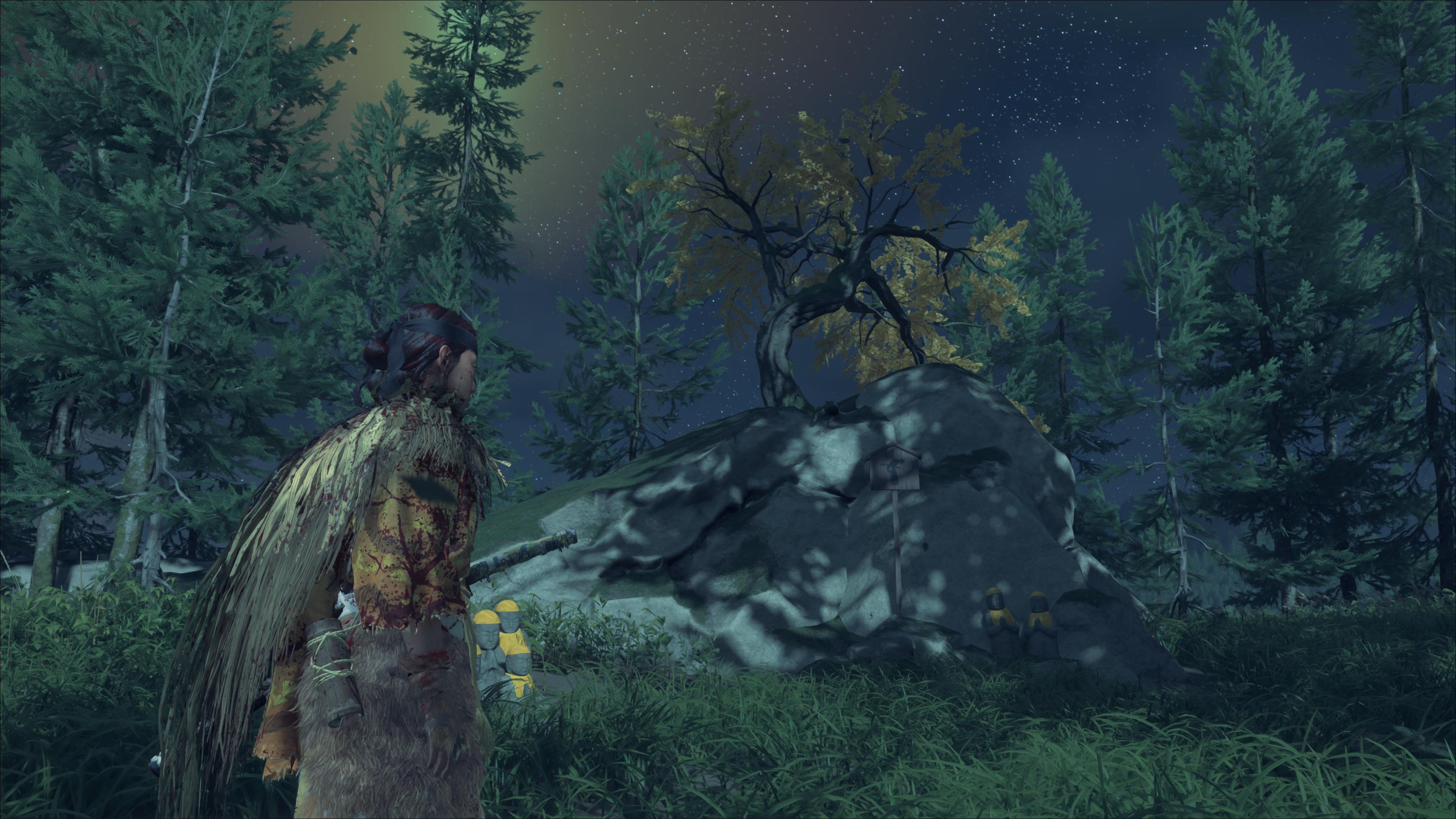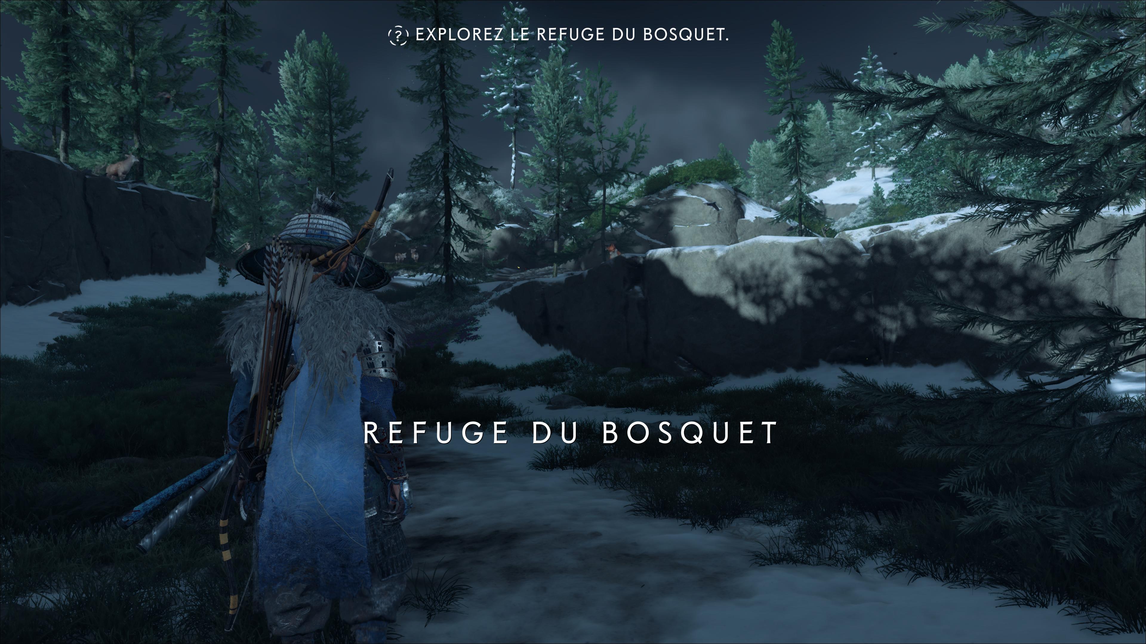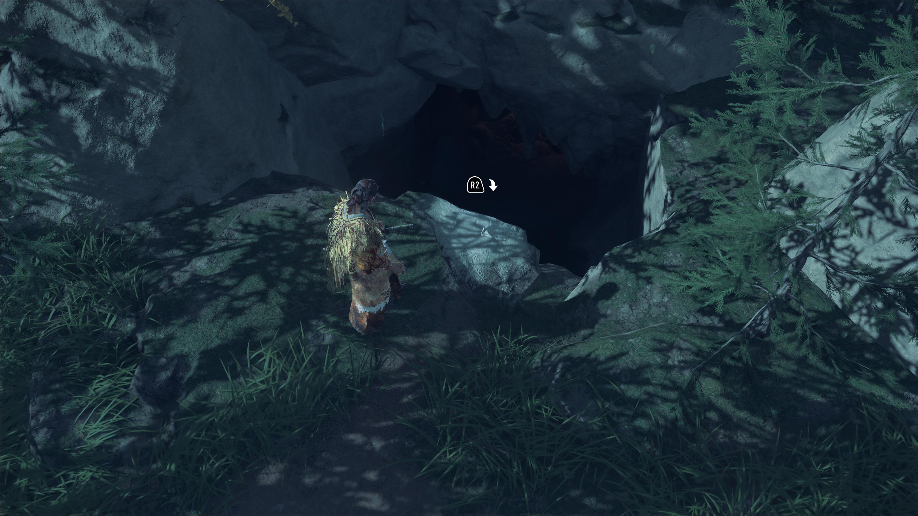 Vous finirez par tomber sur un trou. Descendez au fond en escaladant les prises rocheuses puis continuez quelques mètres pour localiser l’autel de réflexion. Attention, un autre ours vous empêche d’y accéder. Sortez votre arc et éliminez-le à distance pour ne rien risquer, puis allez priez devant l’autel une fois le danger écarté.