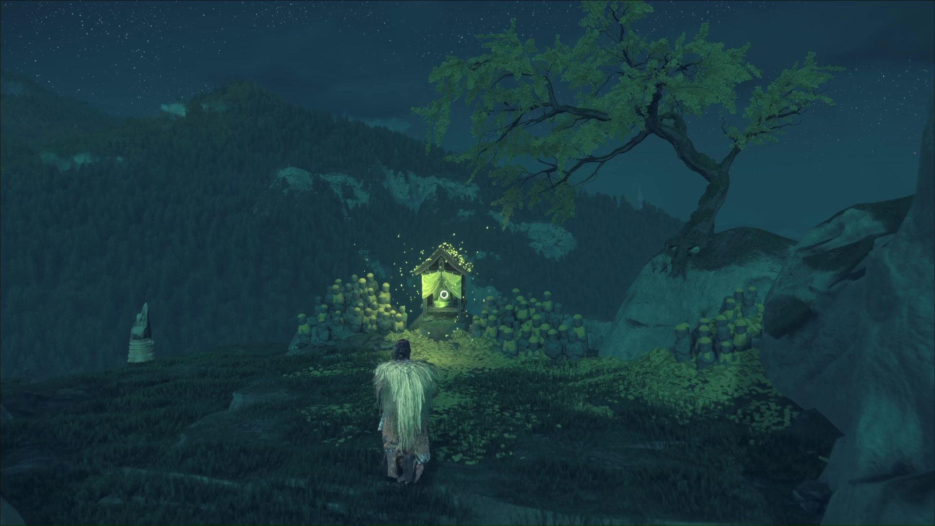 La première lanterne est à l’entrée du camp, tandis que la deuxième est directement devant le bâtiment. Une fois ces deux lanternes allumées, poussez la porte secrète du bâtiment pour tomber sur moult ressources et, surtout, l’autel de réflexion.