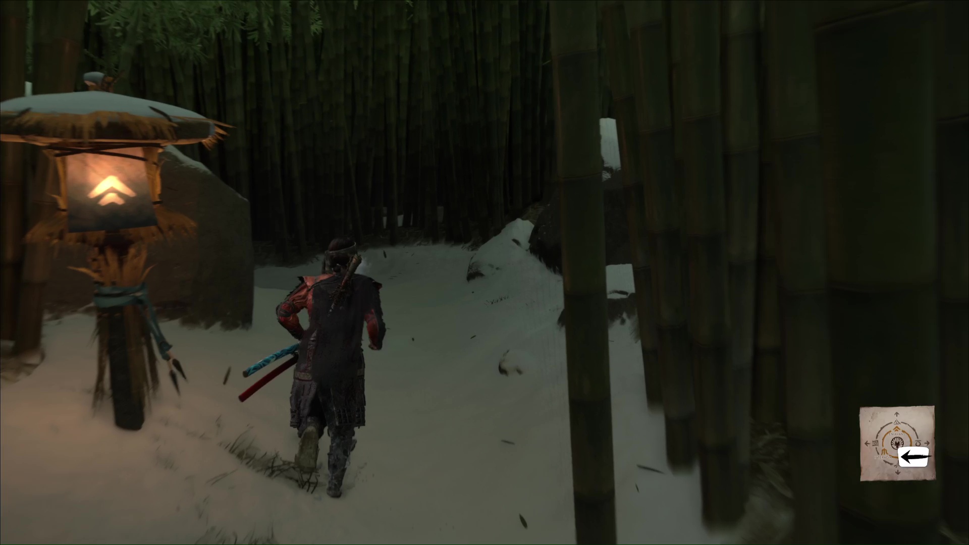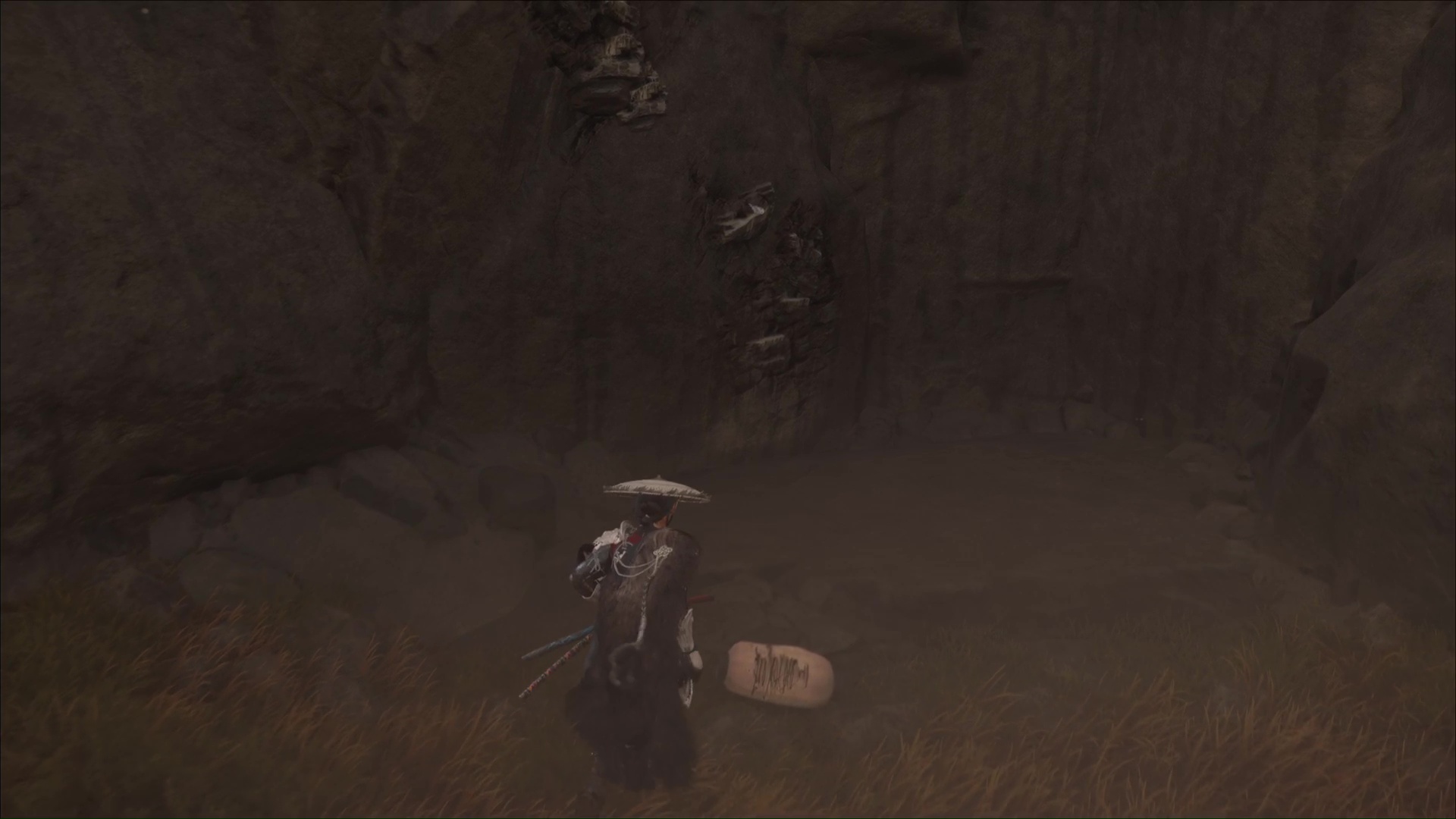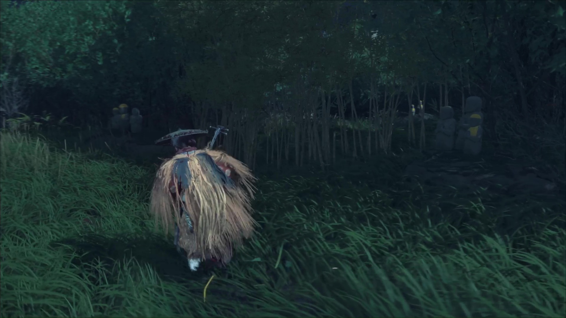 Faites ensuite le tour du rocher pour arriver à un tronc couché faisant le pont vers un autre cadavre. Examinez le papier cloué à une souche qui défend quiconque de jouer de la musique. Justement, sortez-votre shamisen et jouez une mélodie.