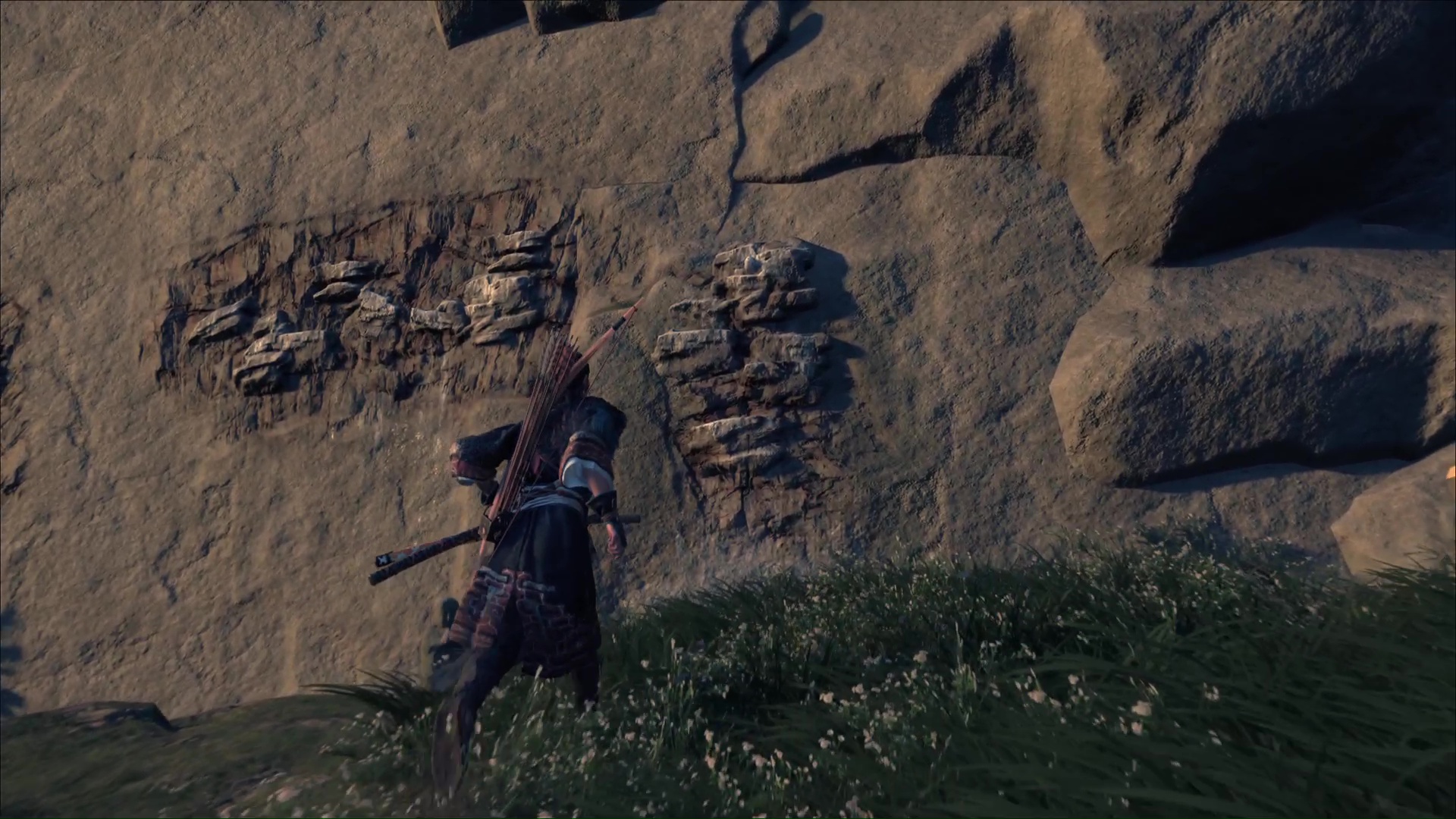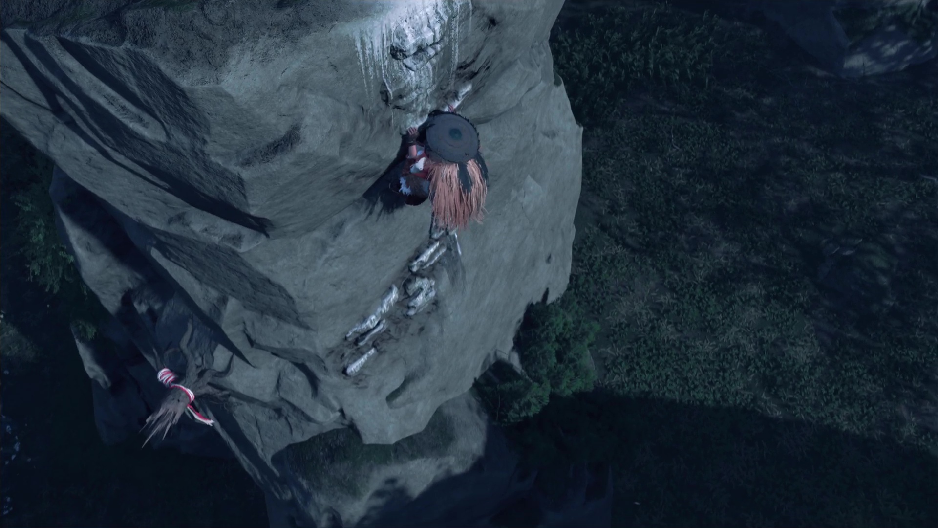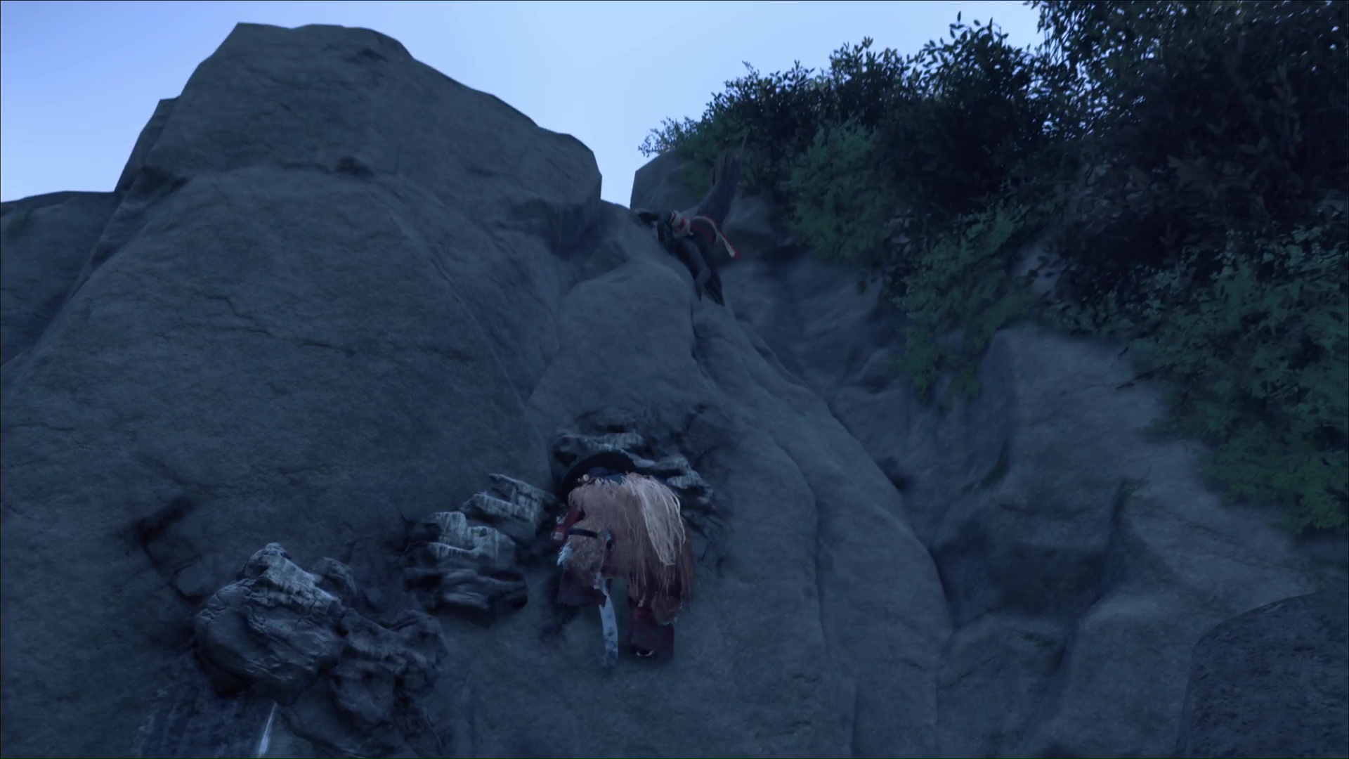 Une fois à l’extérieur, retournez-vous et remarquez les prises rocheuses près d’un feu. Montez par ici. Poursuivez votre escalade pour finir par vous hisser au niveau de l’autel, situé en bord de falaise.